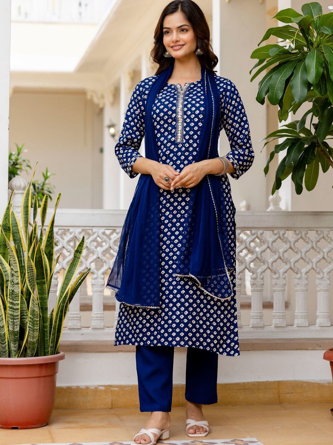 KALINI Women Printed Gotta Patti Kurta with Palazzos & Dupatta