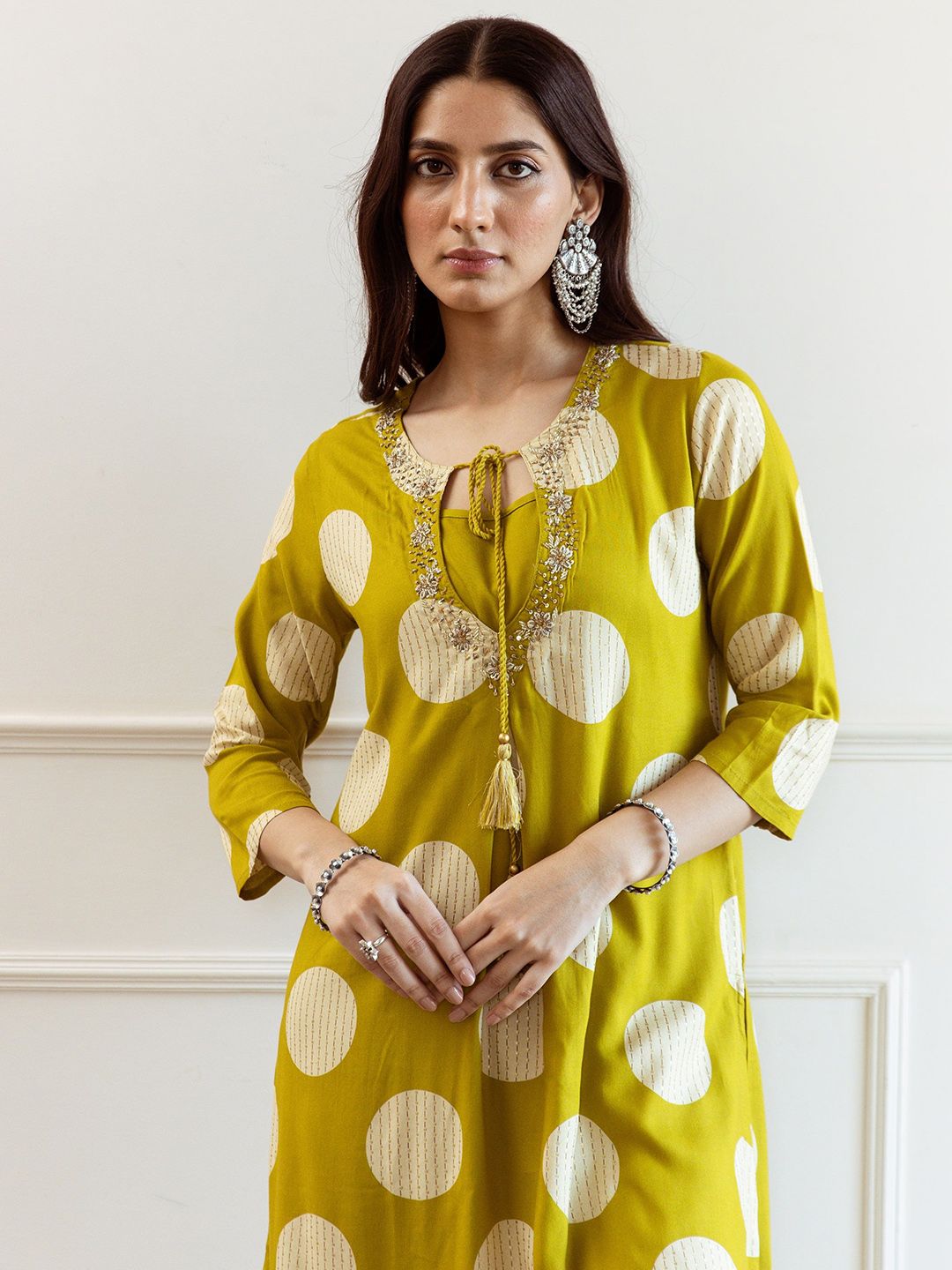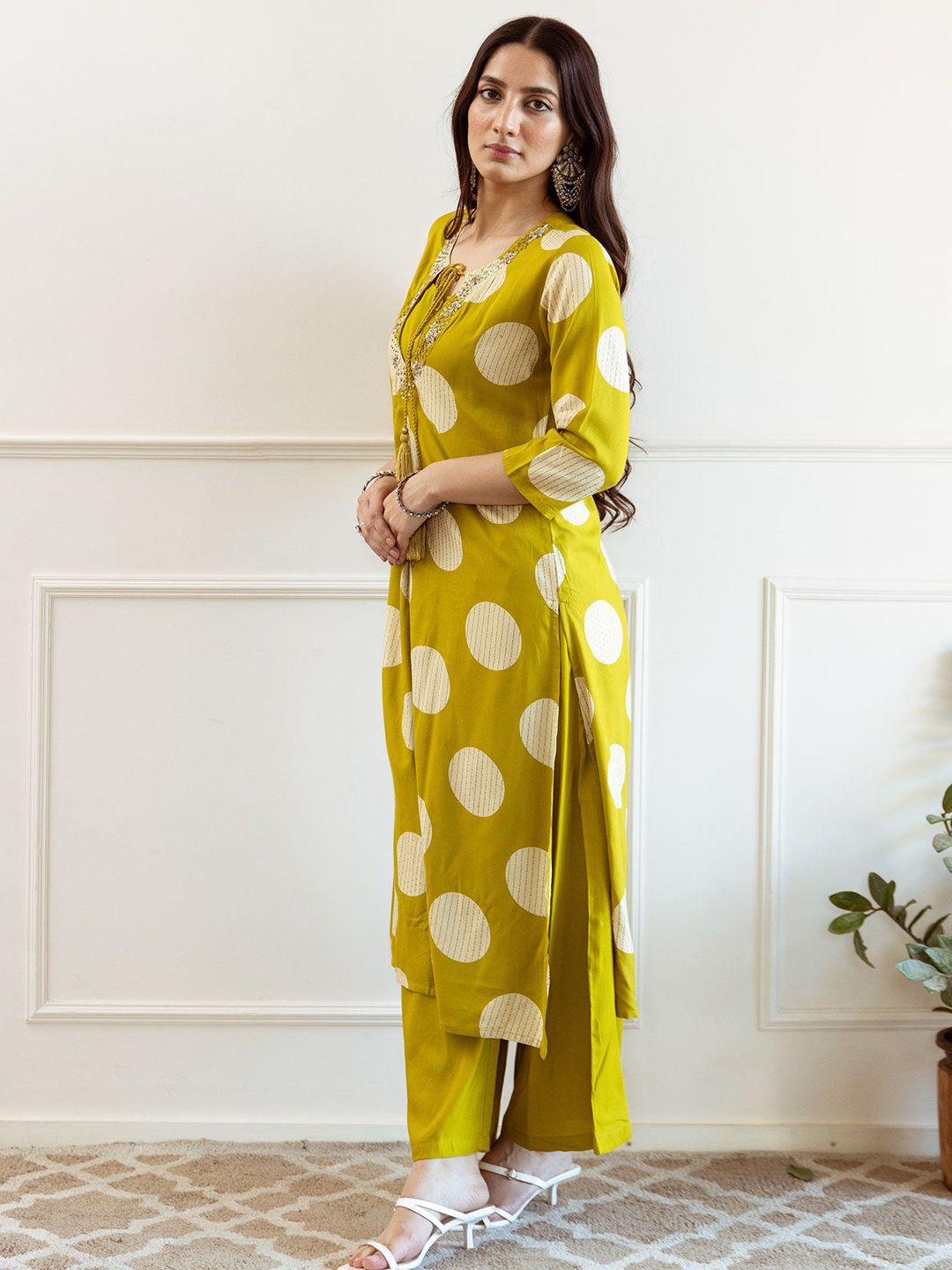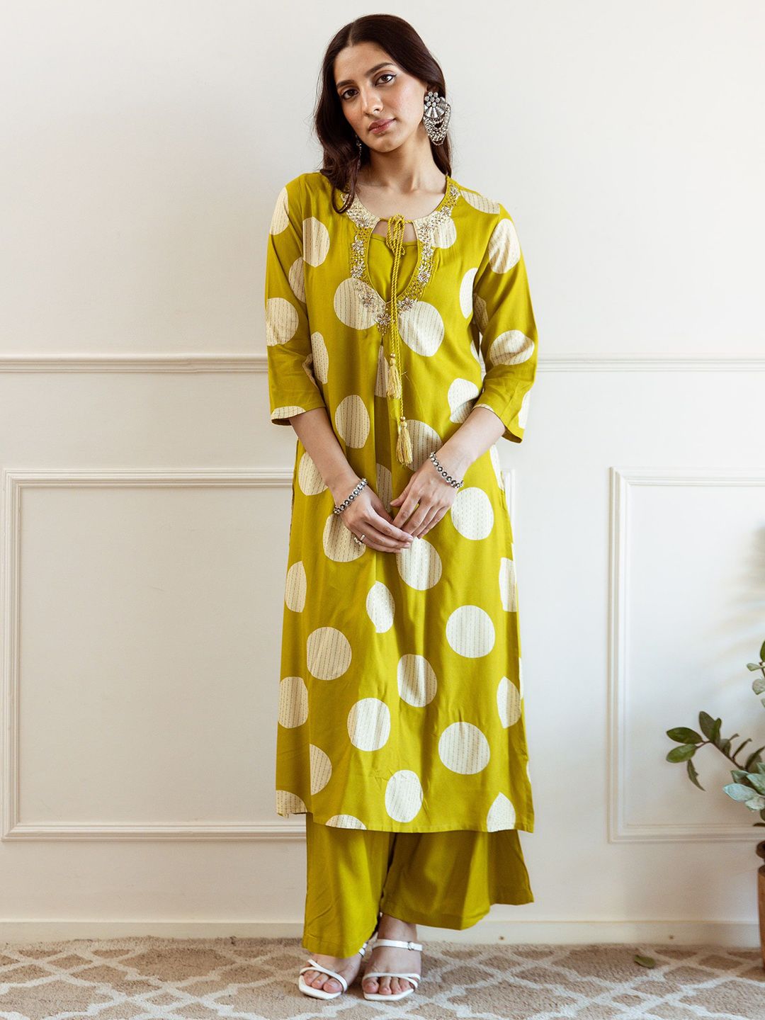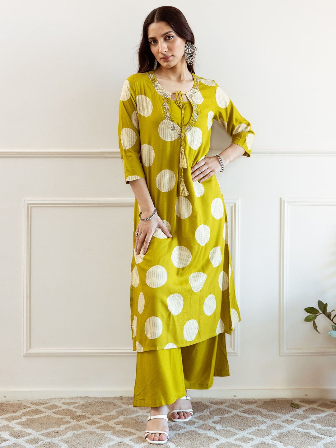 KALINI Women Printed Regular Beads and Stones Kurta with Palazzos