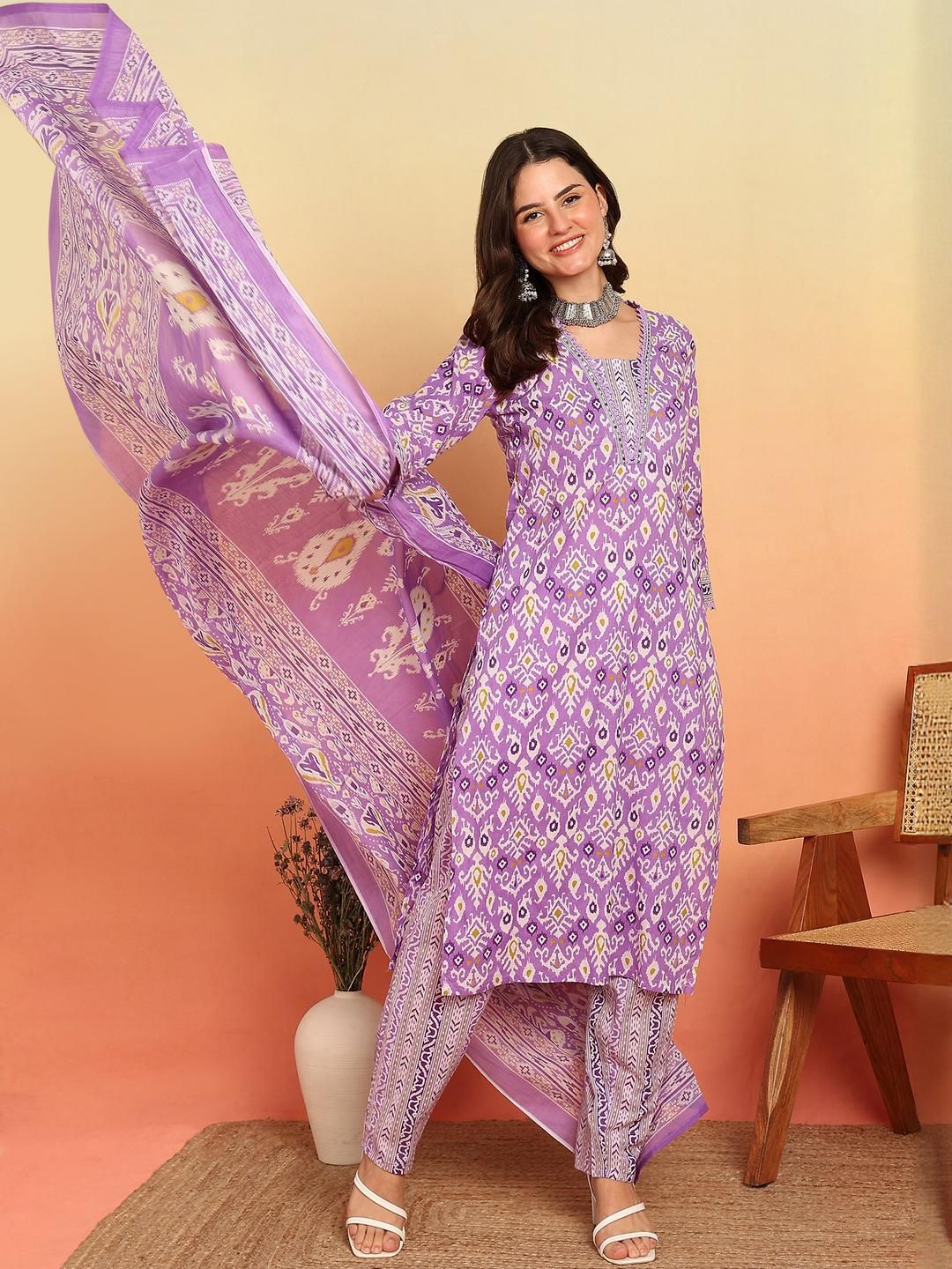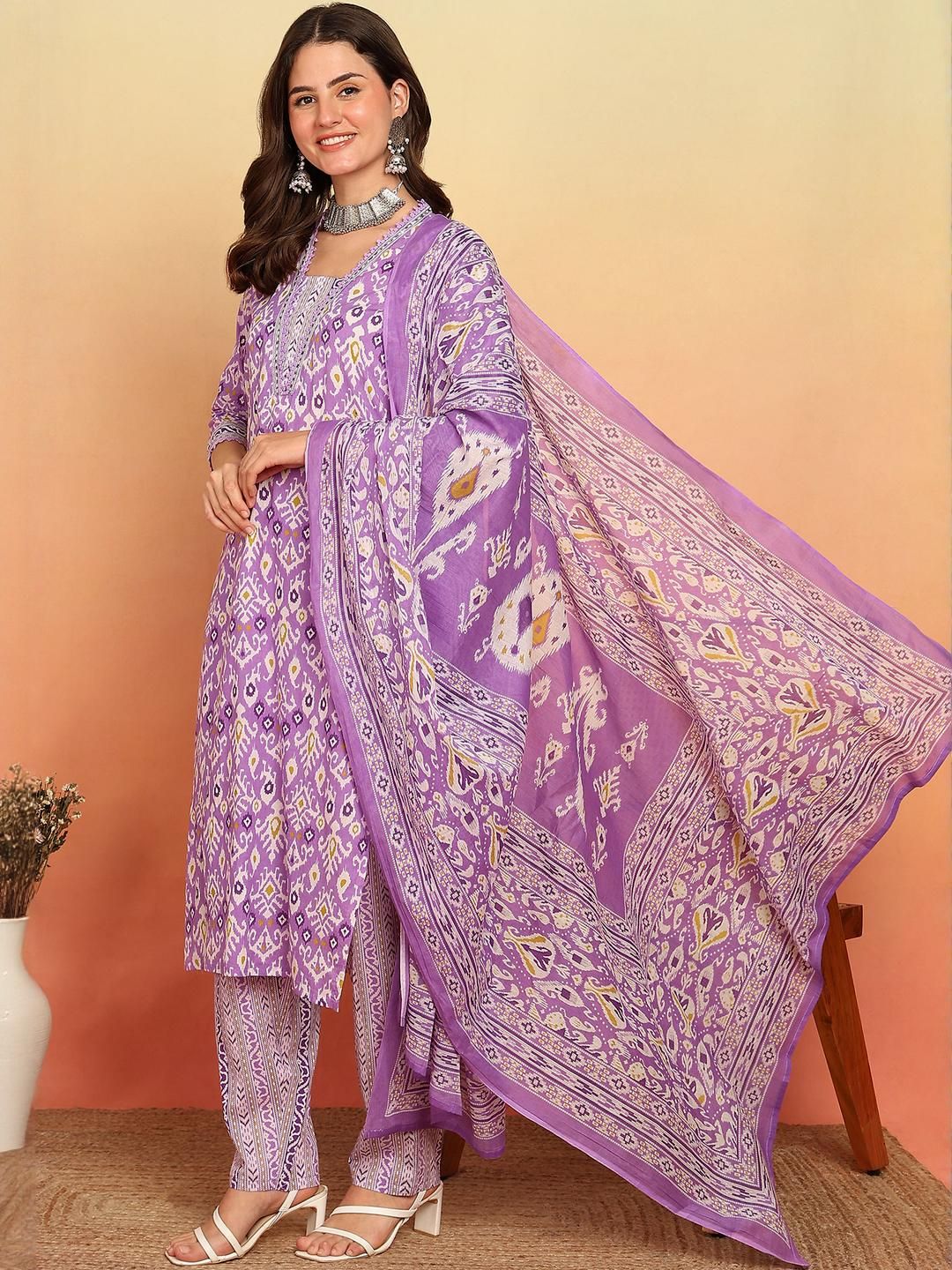 KALINI Women Printed Regular Cotton Kurta with Palazzos & With Dupatta