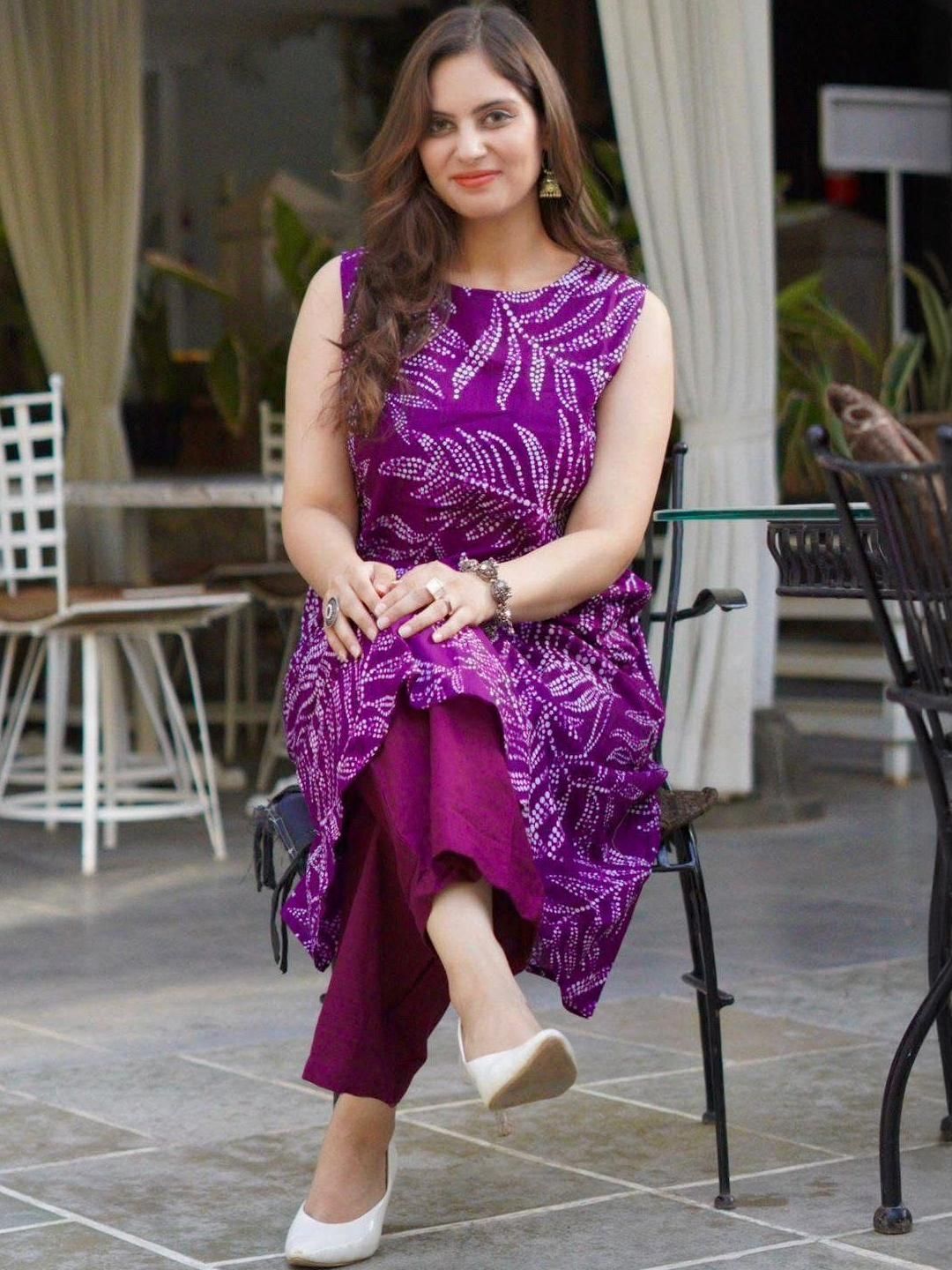 KALINI Women Purple Viscose Rayon Kurta Sets