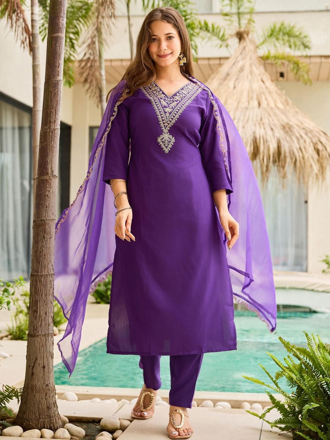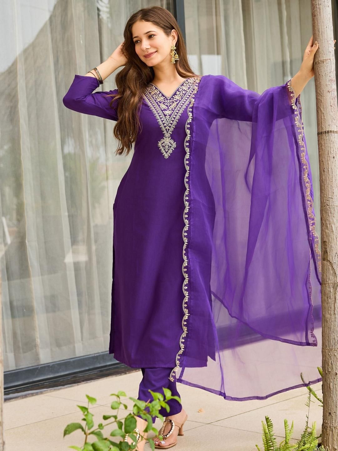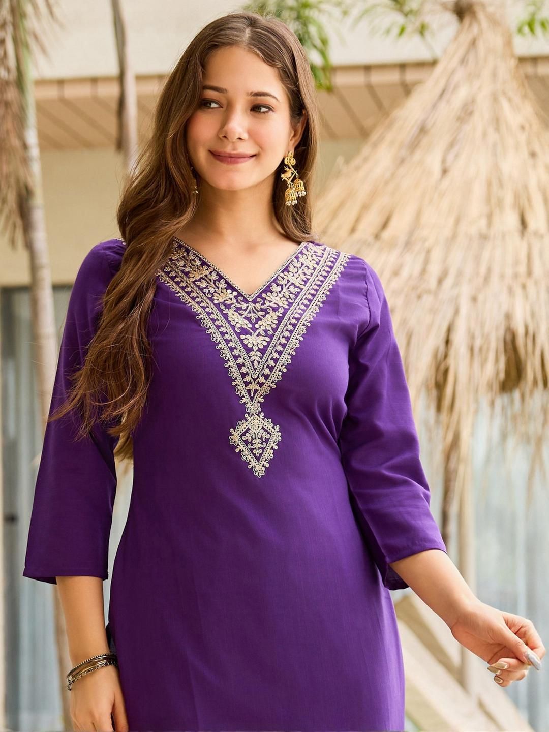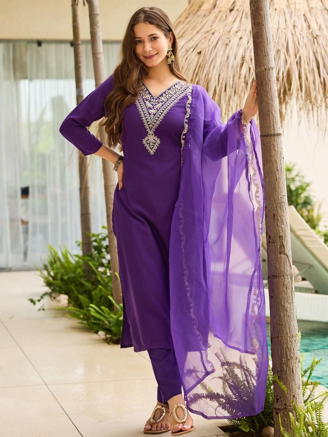 KALINI Women Rayon V-Neck Straight Embroidery Printed Kurta Sets