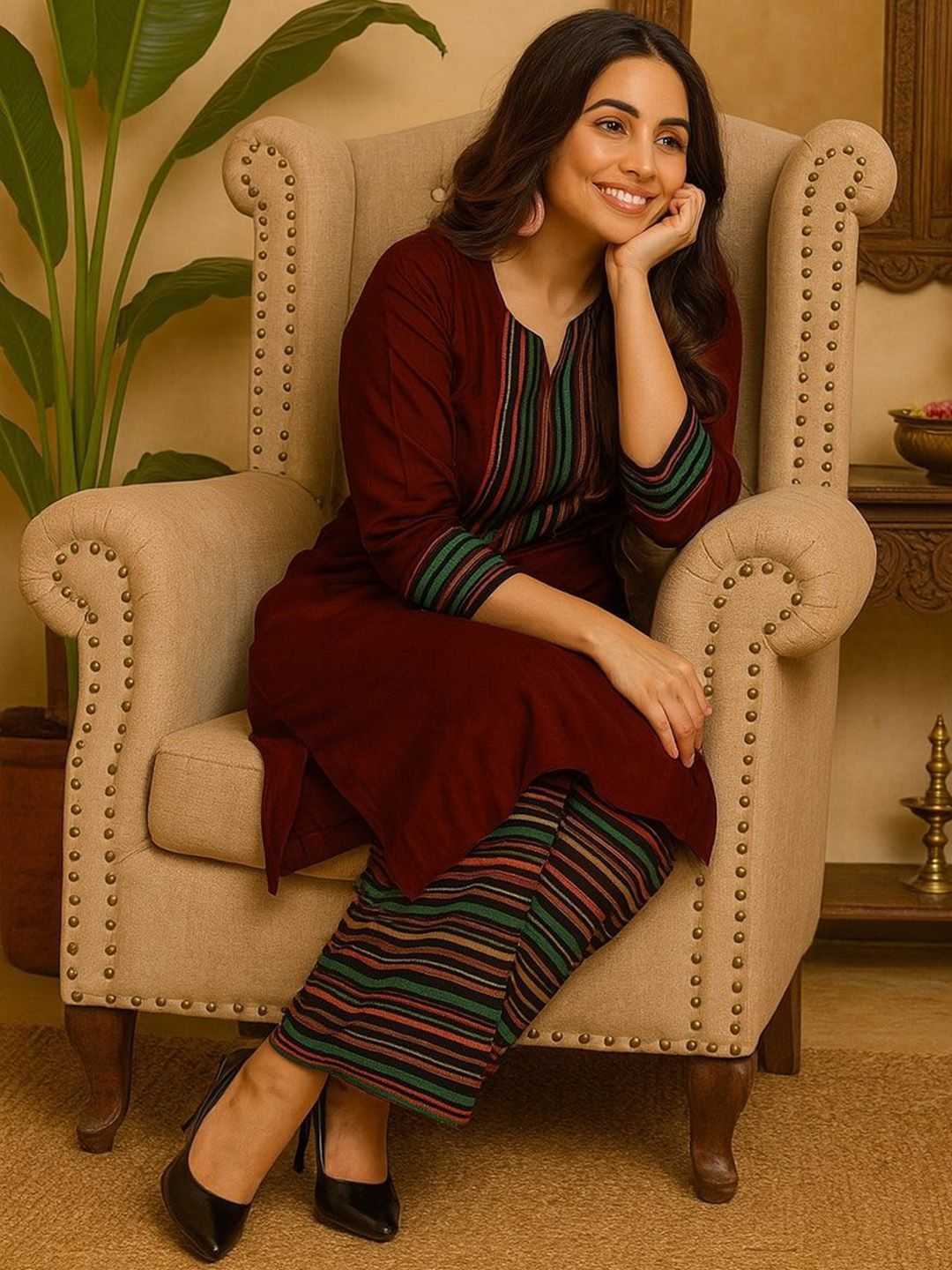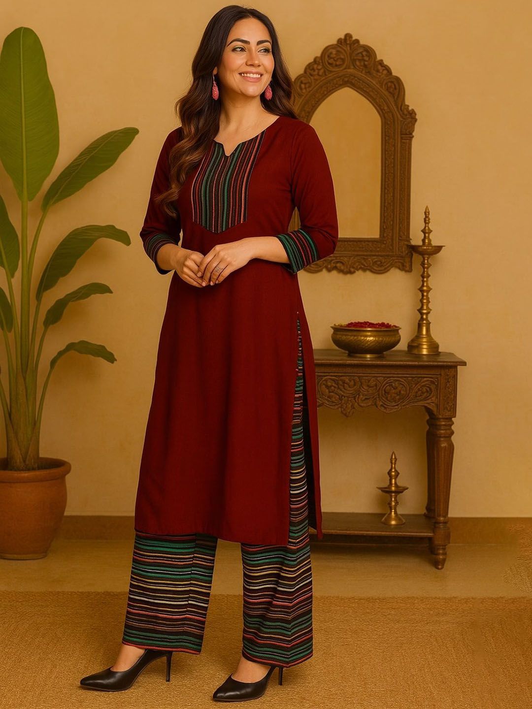 KALINI Women Regular Cotton Kurta with Trousers & Dupatta