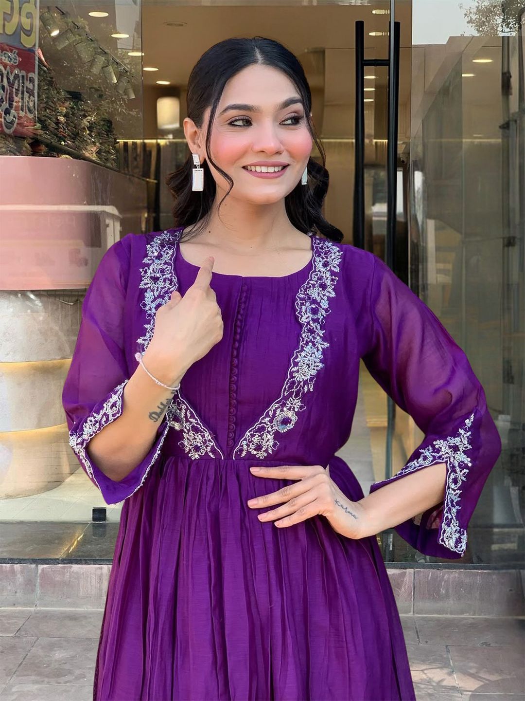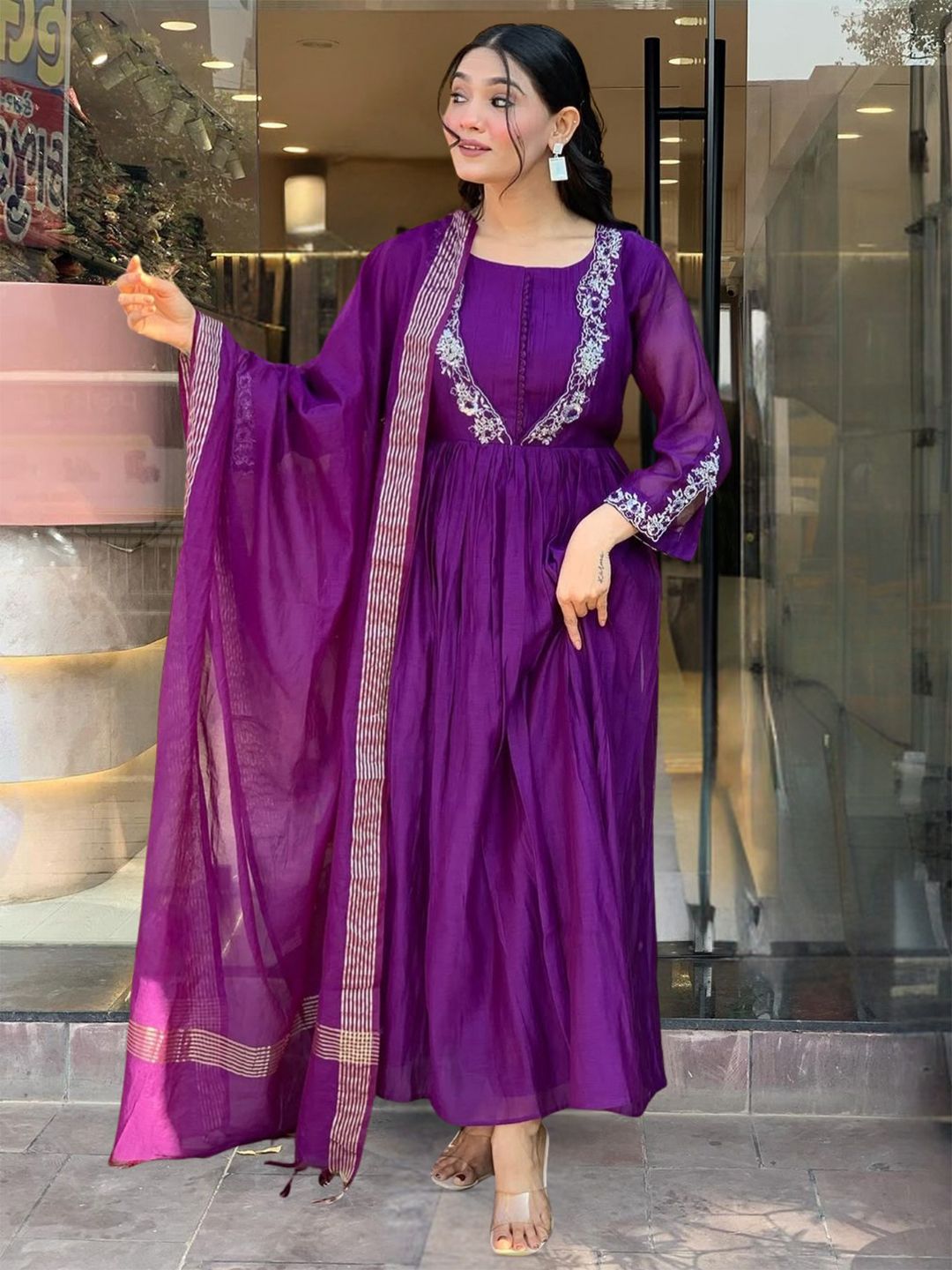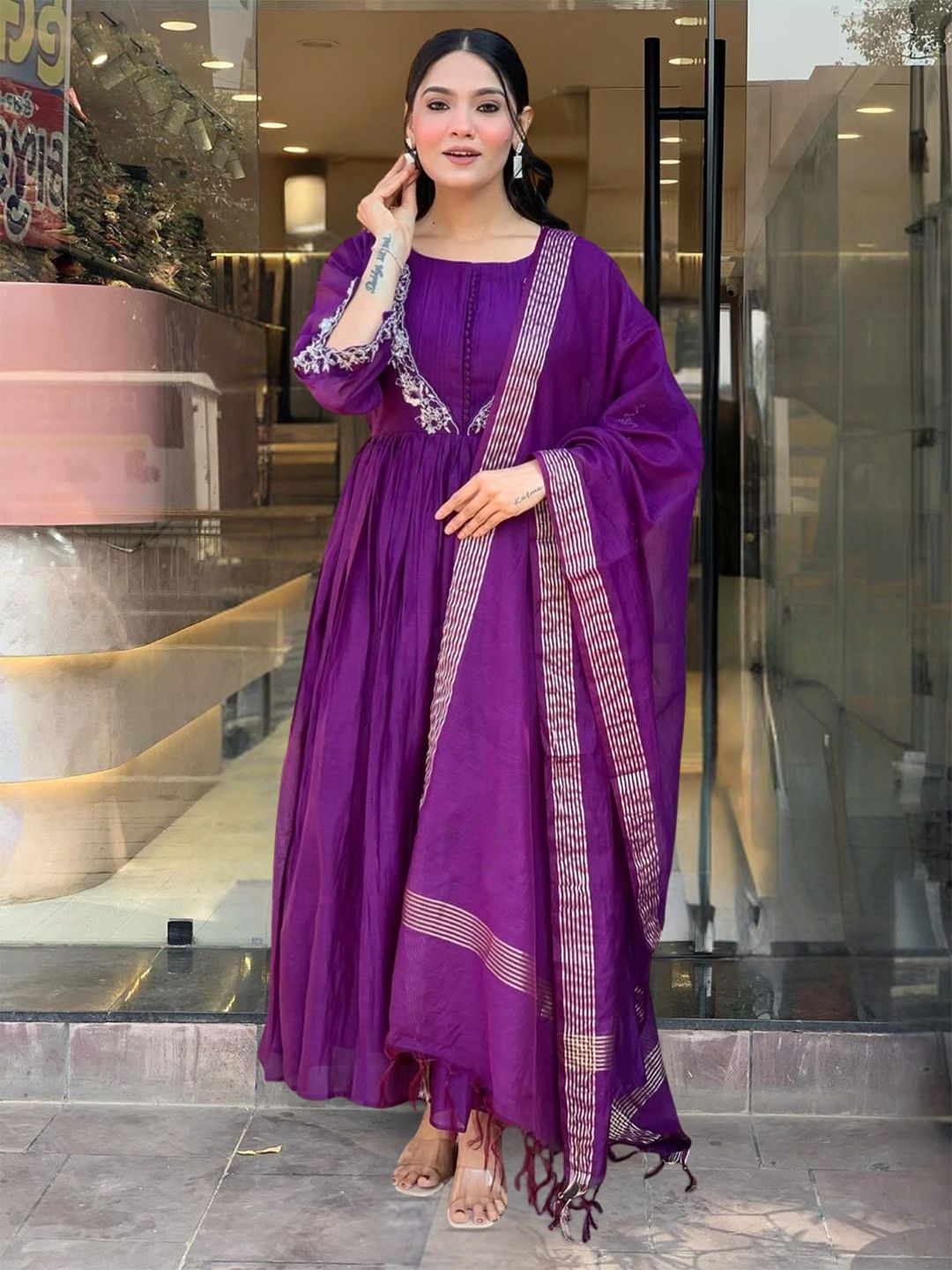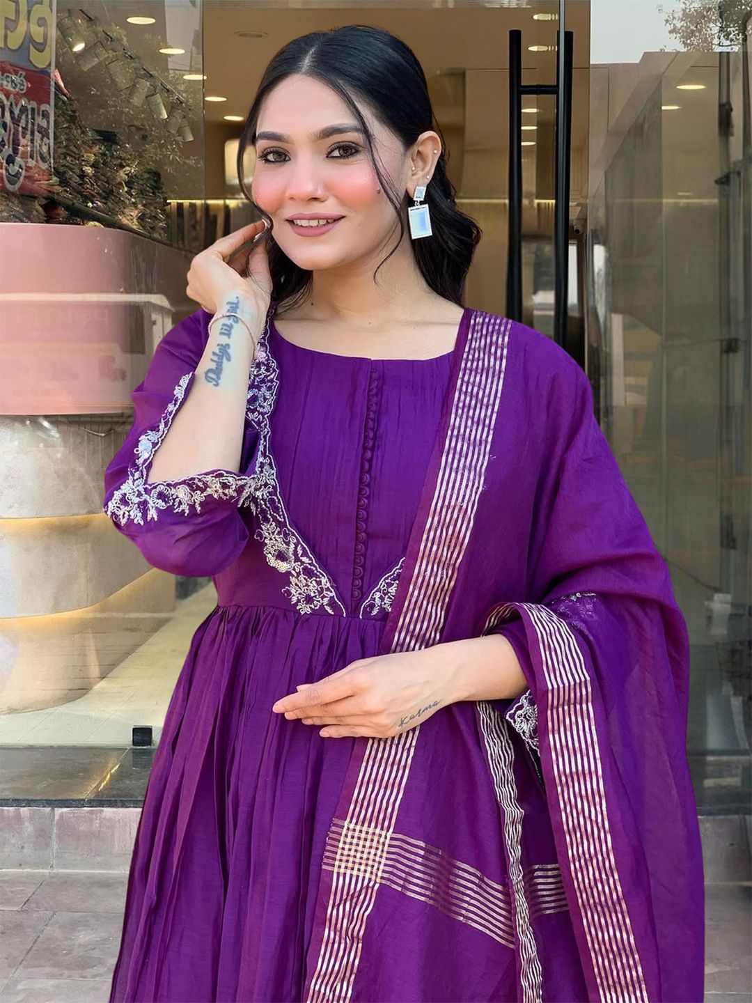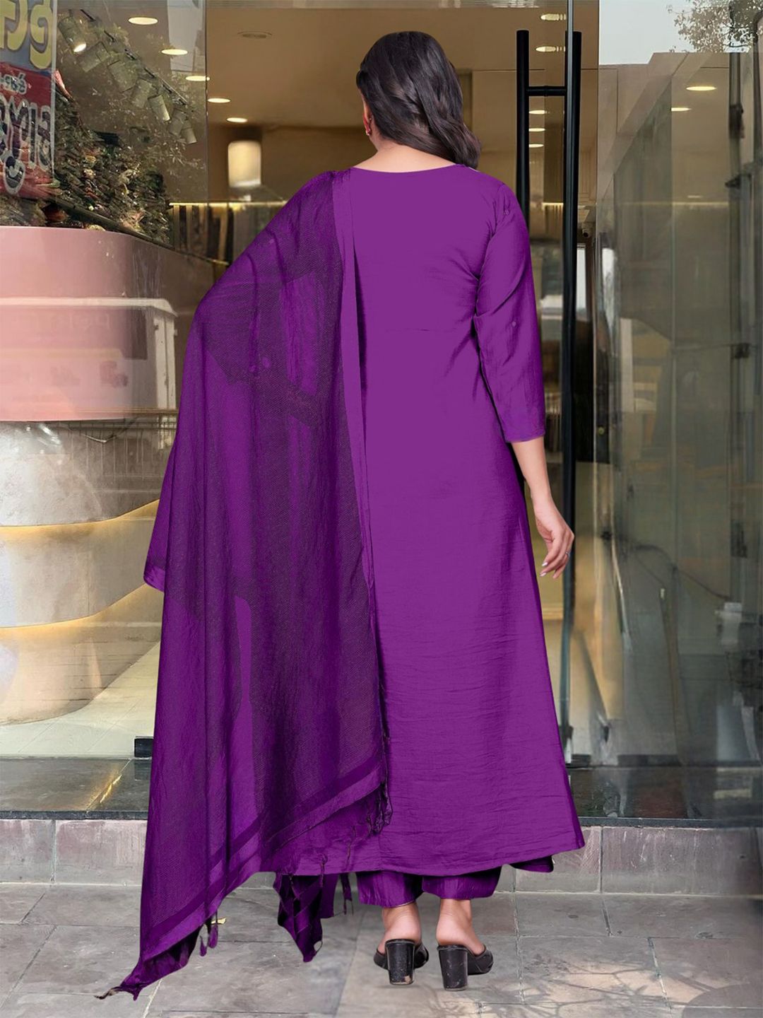 KALINI Women Solid Anarkali Kurta with Trousers & Dupatta
