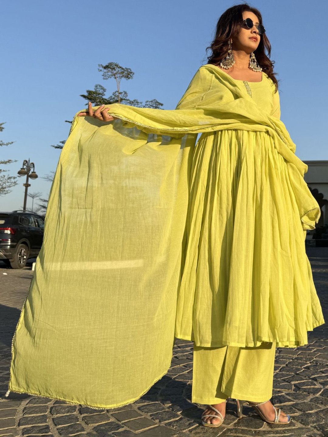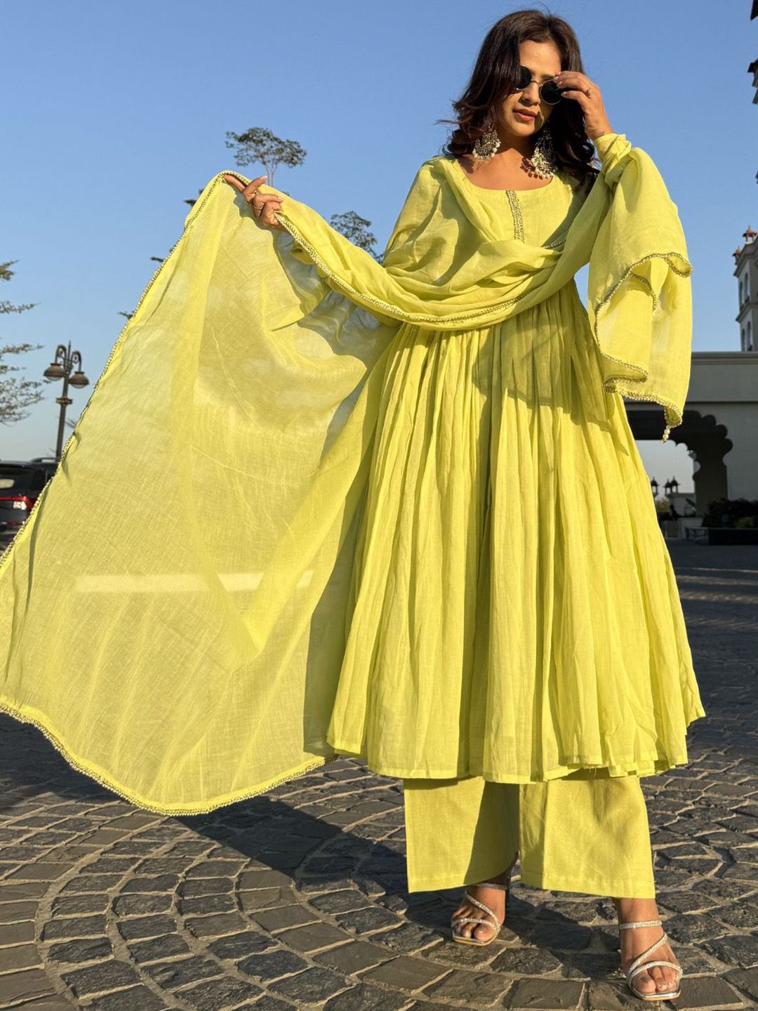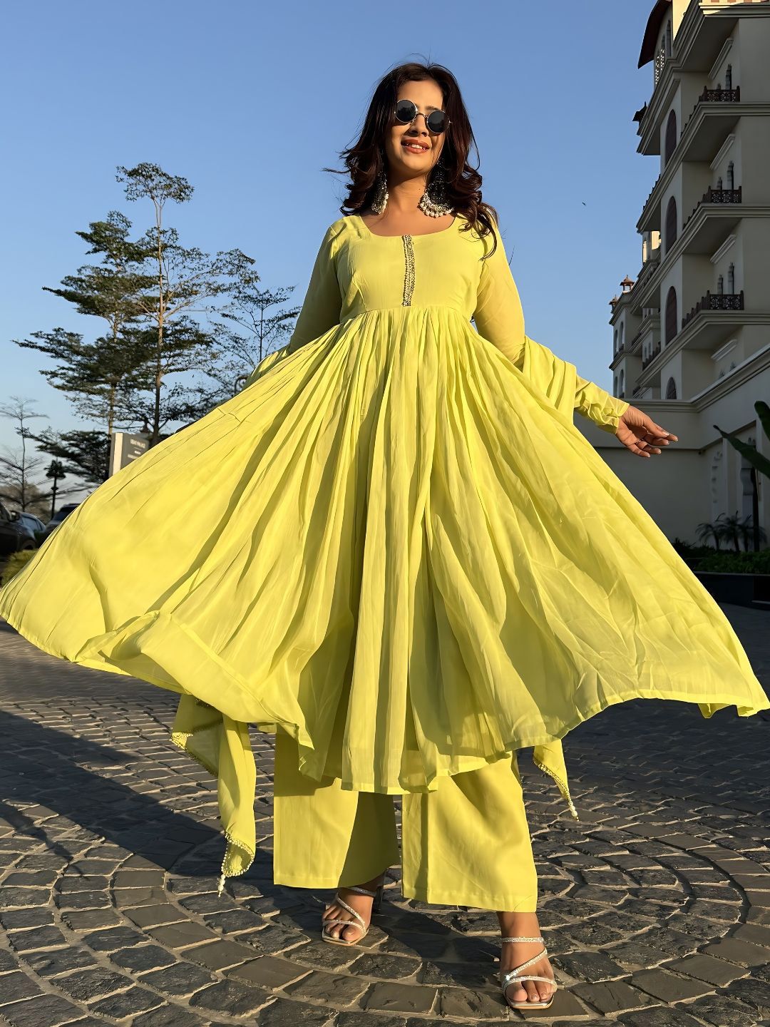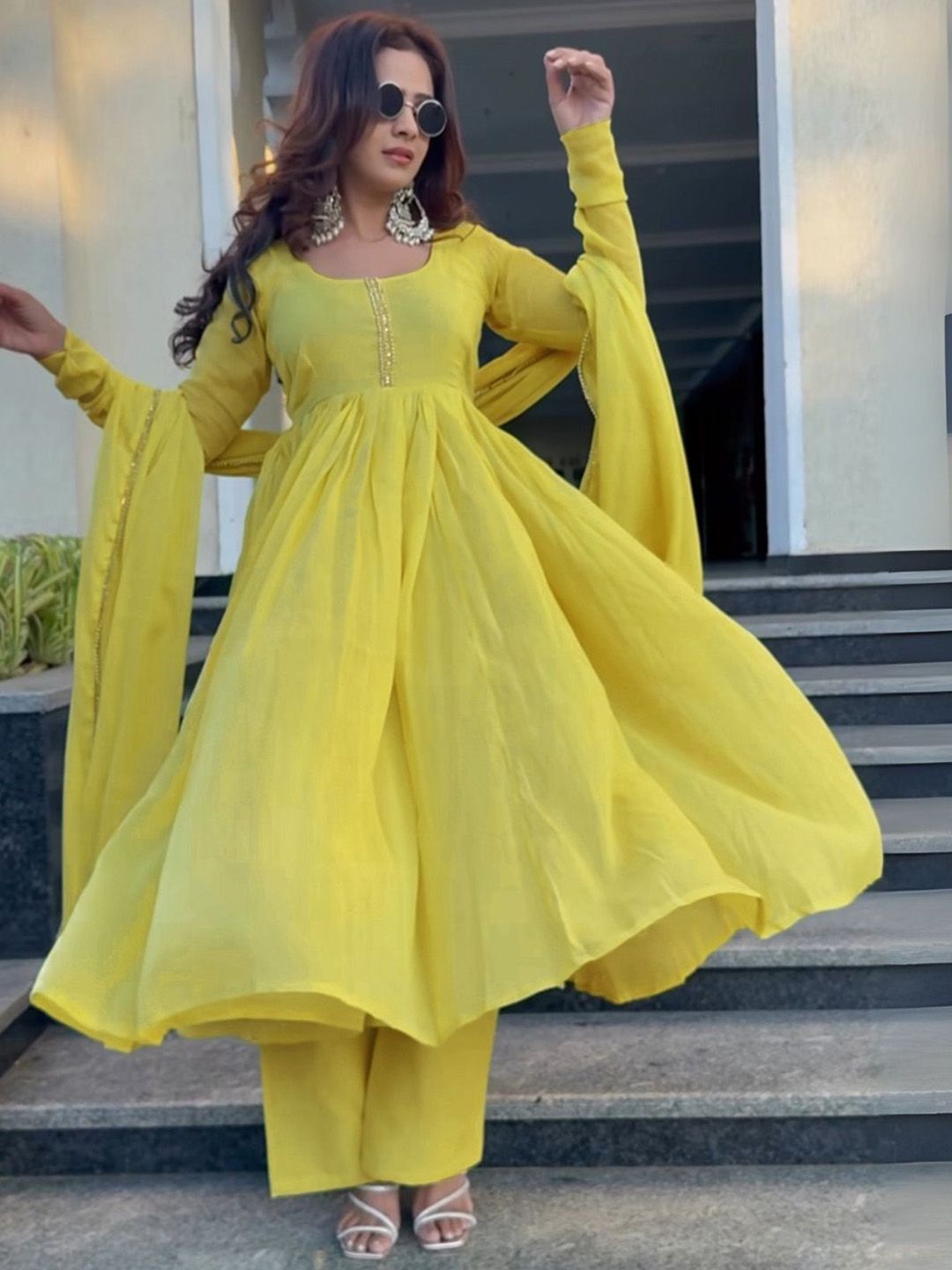KALINI Women Solid Kurta with Palazzos & Dupatta
