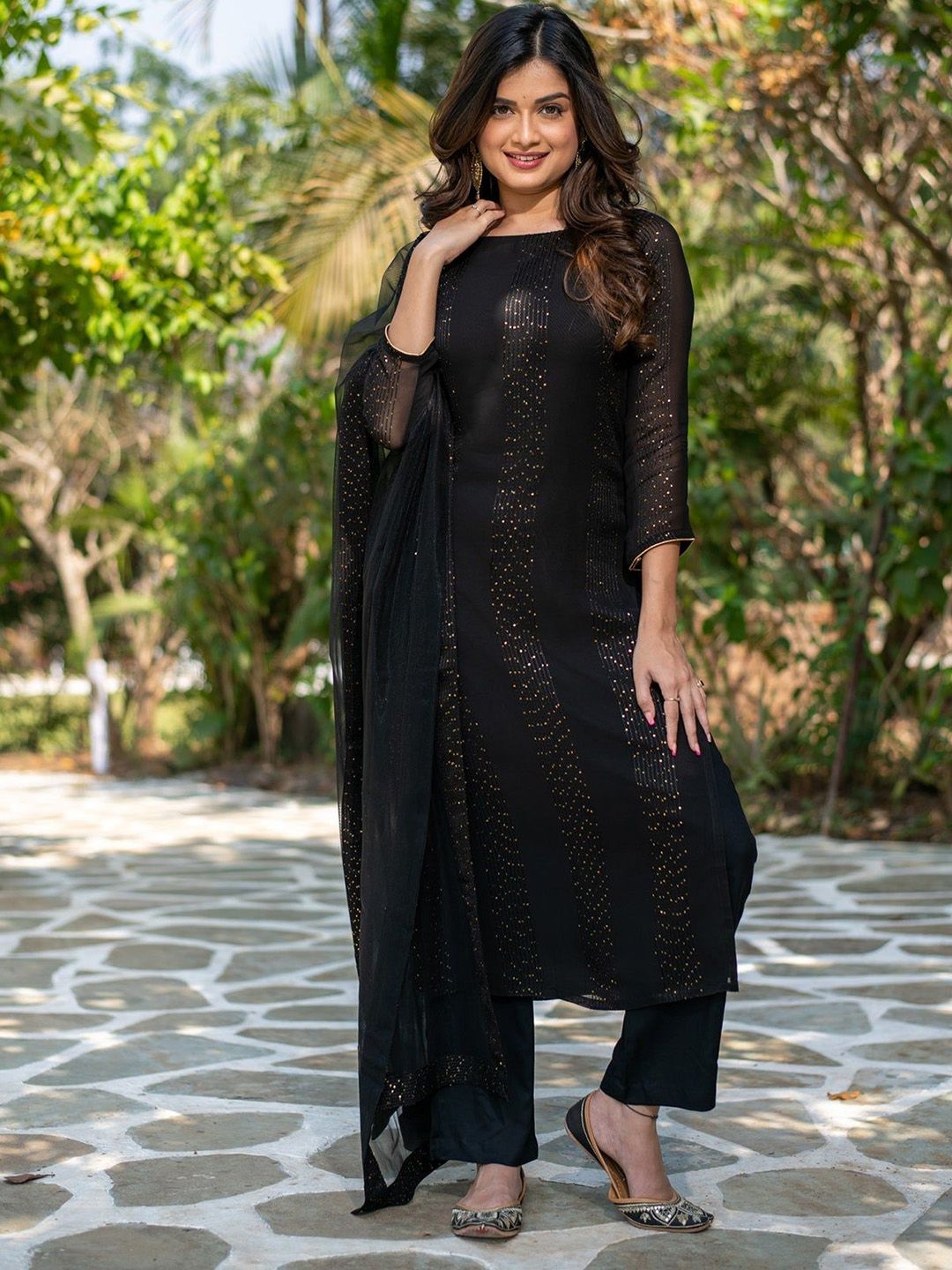 KALINI Women Striped Embroidered Kurta with Trousers & Dupatta