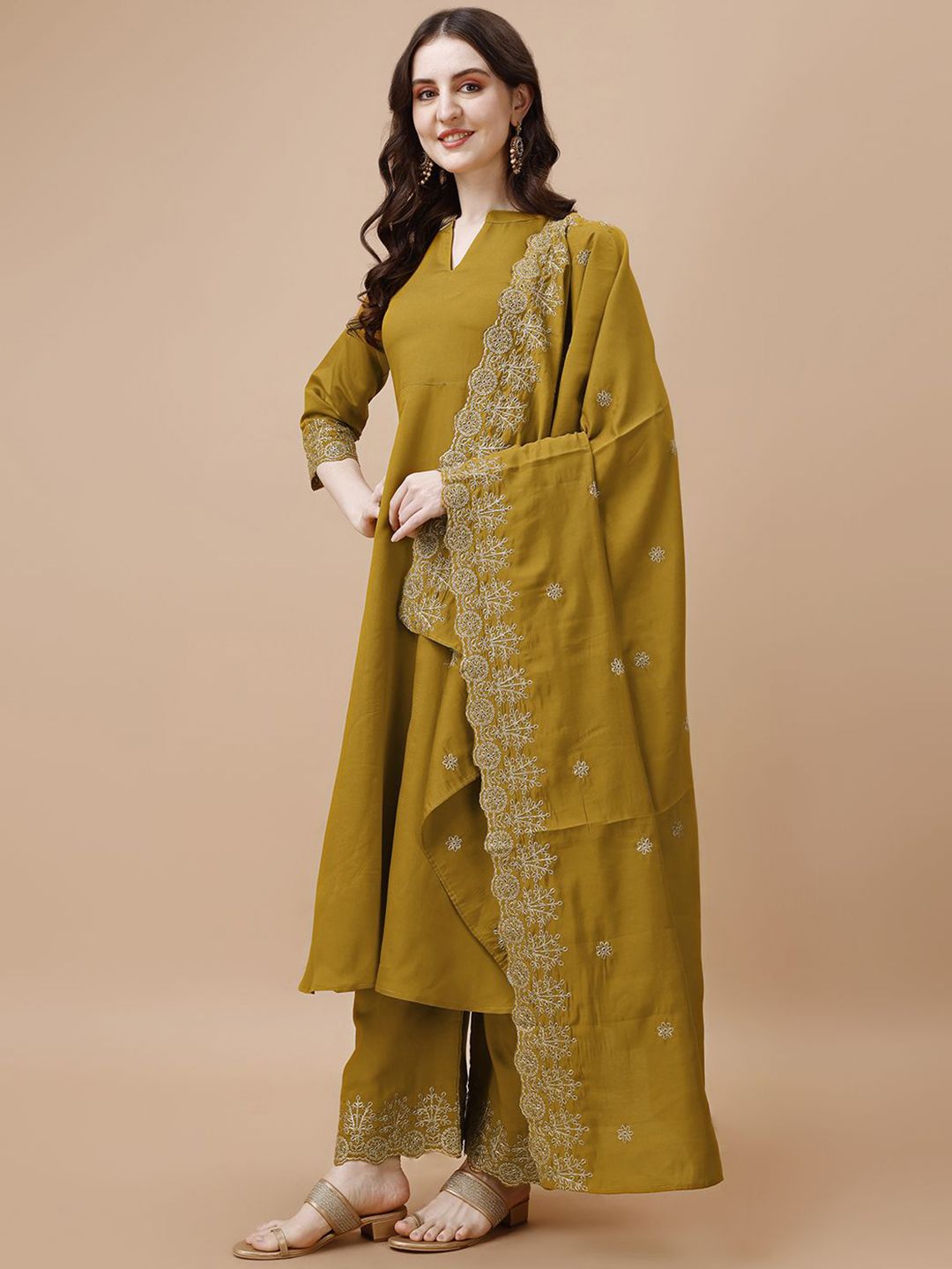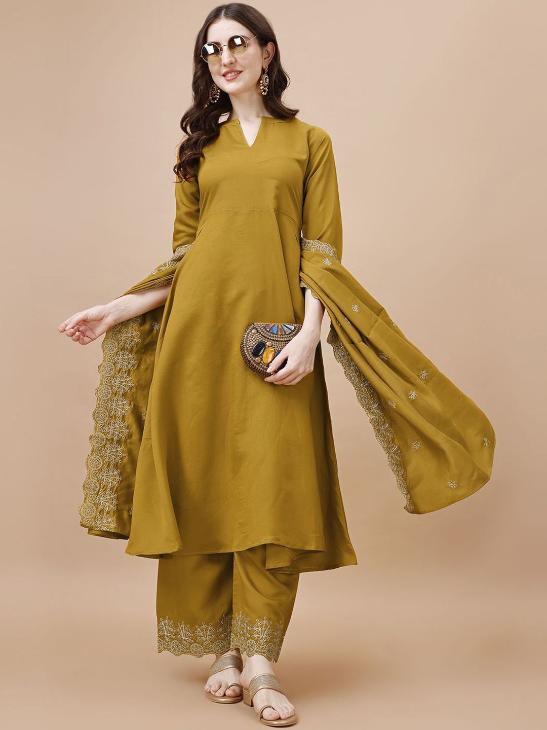 KALINI Women Thread Work Anarkali Kurta with Trousers & Dupatta