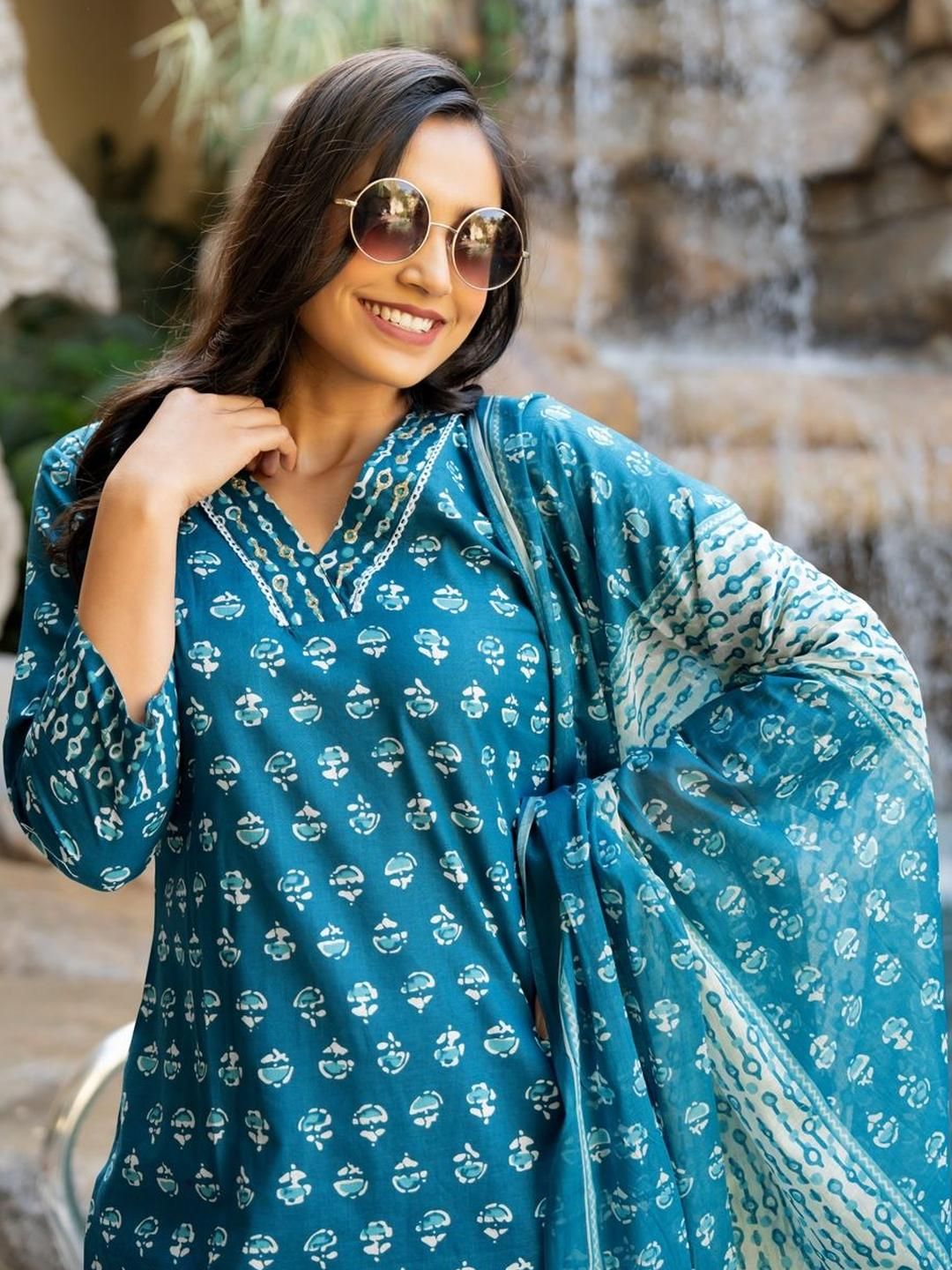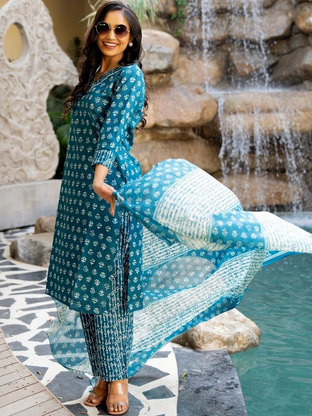 KALINI Women Turquoise Blue Pure Cotton Kurta Sets