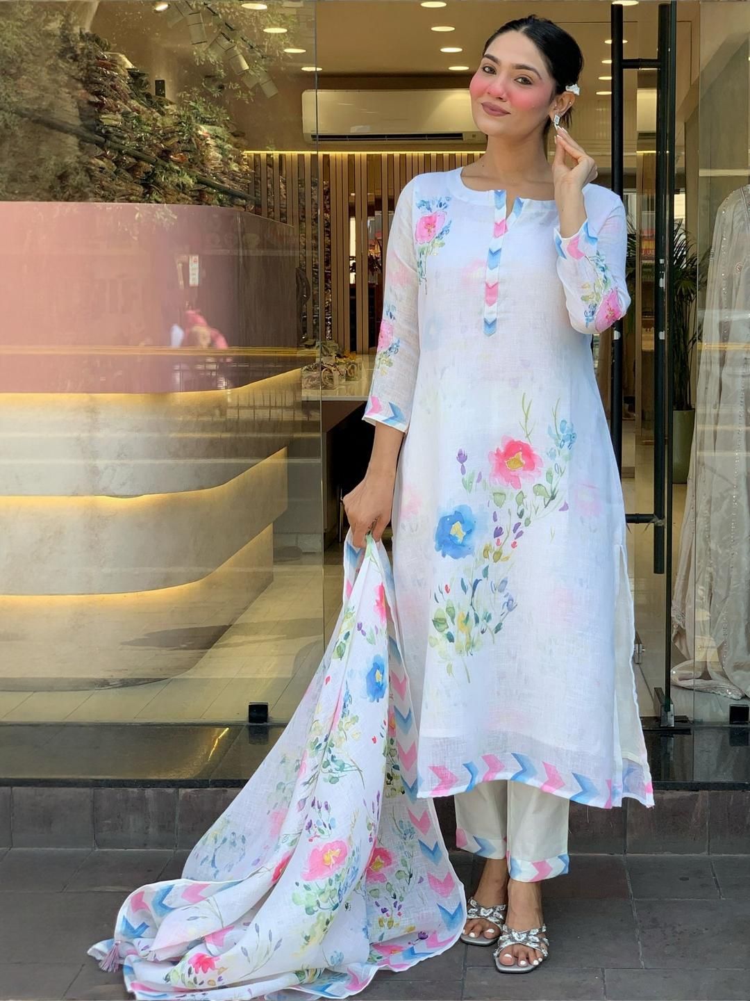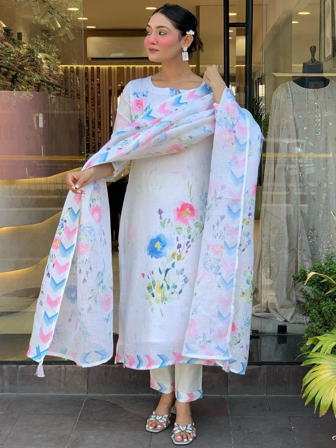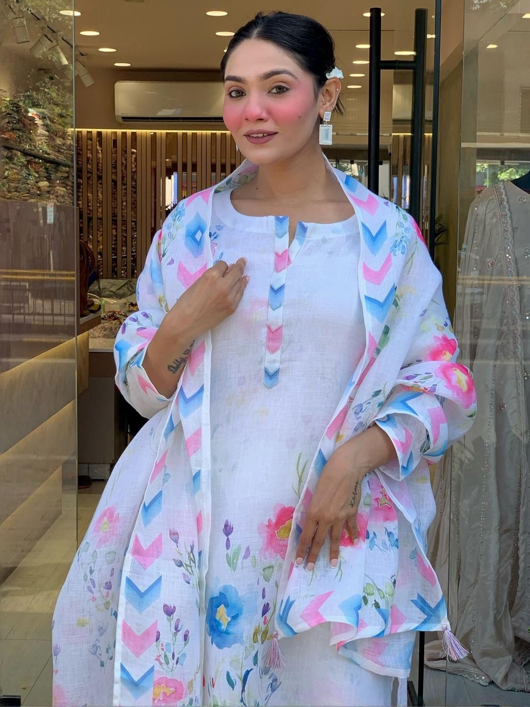 Buy this stylish KALINI Women White Linen Round Neck Straight Fit Floral Printed Kurta Set at Marincart Nepal. This product offers great quality and value. Perfect for those looking for the latest trends in fashion. Get yours now at unbeatable prices.