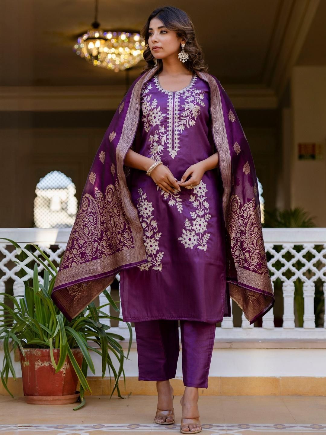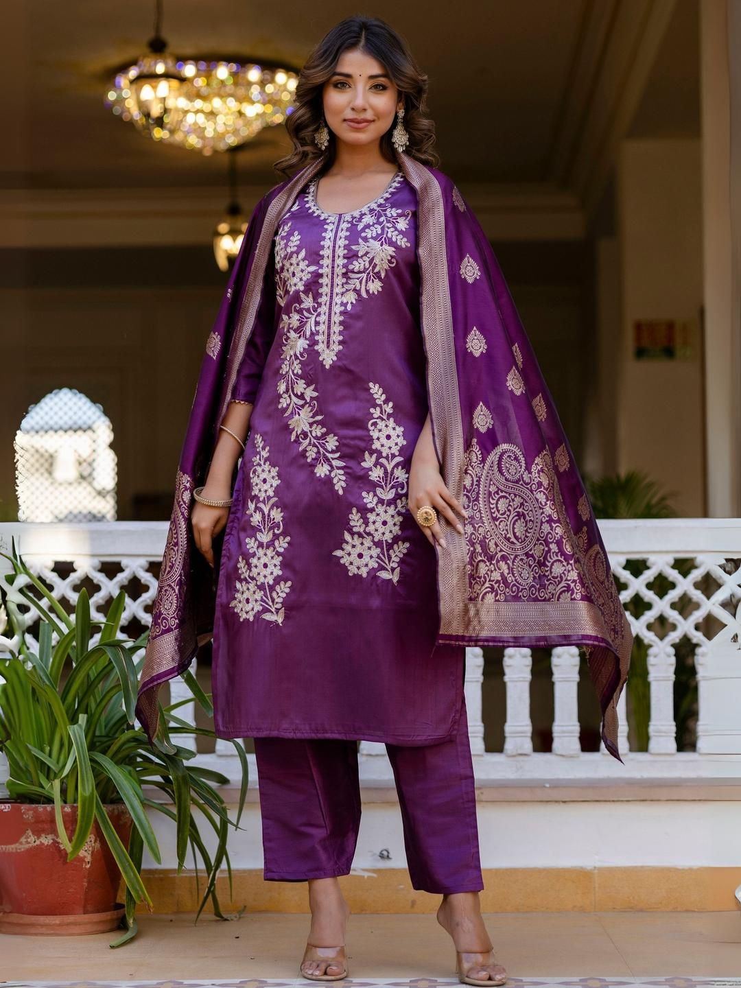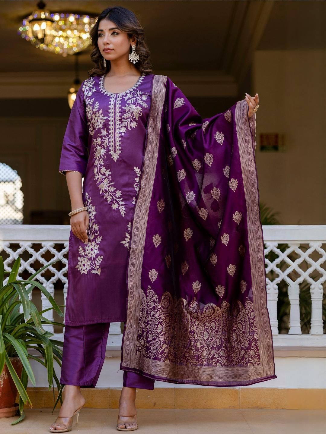 Buy this stylish KALINI Women Wine Round Neck Art Silk Three-Quarter Sleeves Embroidered Kurta Sets at Marincart Nepal. This product offers great quality and value. Perfect for those looking for the latest trends in fashion. Get yours now at unbeatable prices.