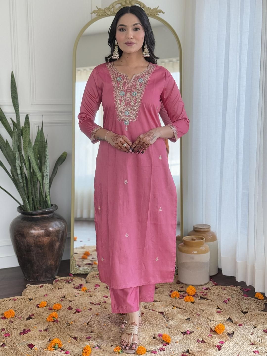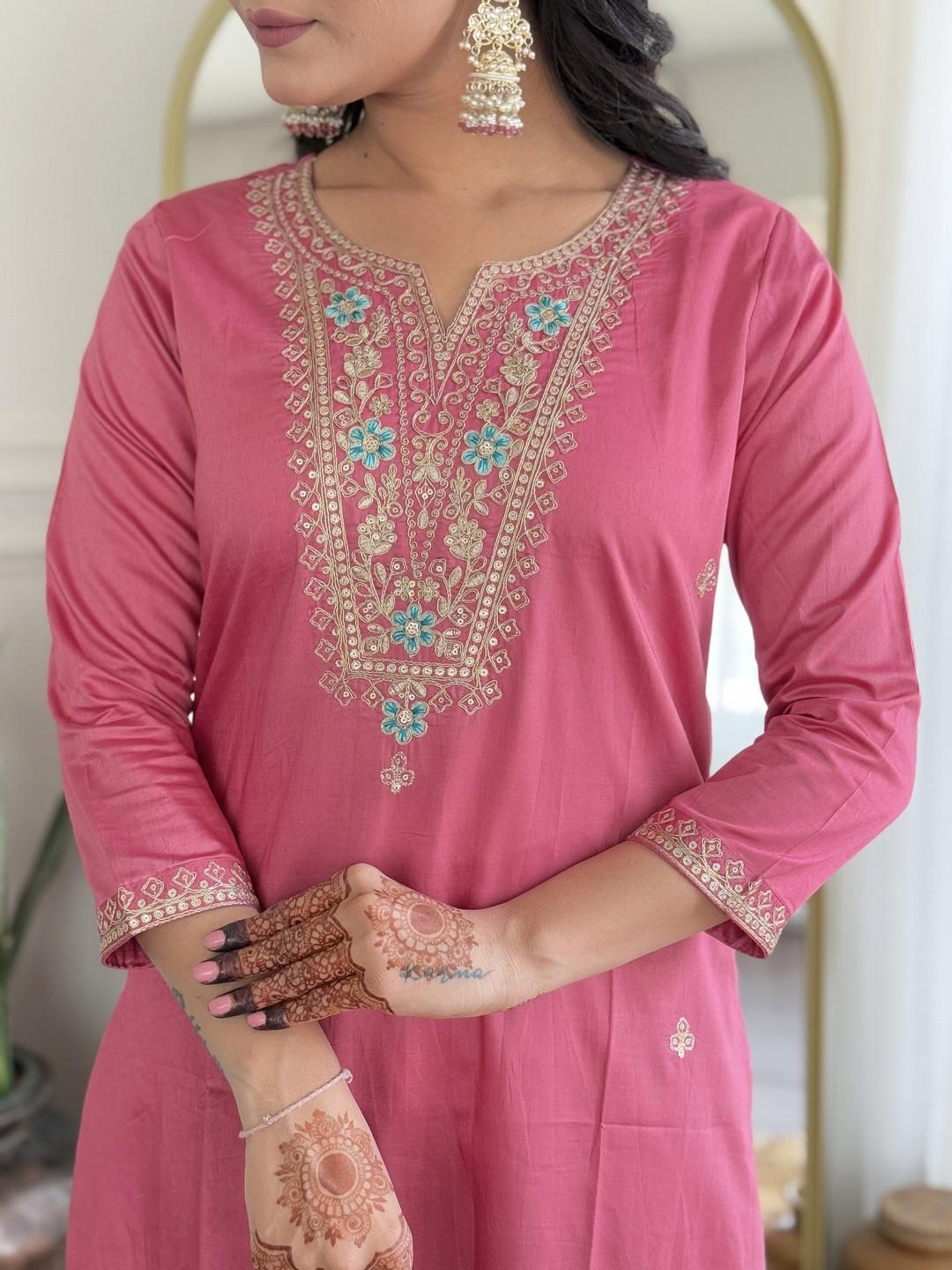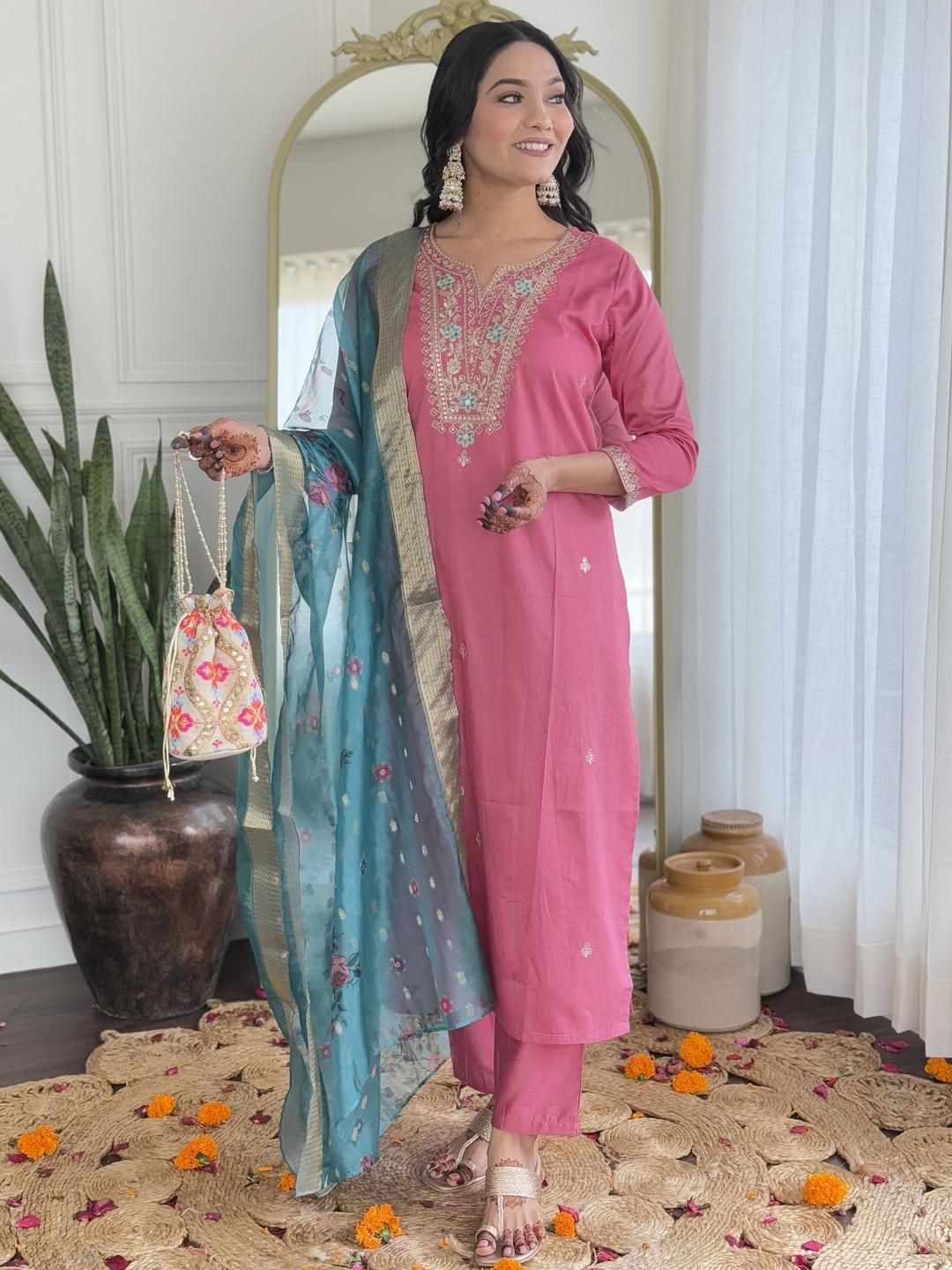 KALINI Women Woven Design Embroidered Kurta with Trousers & Dupatta