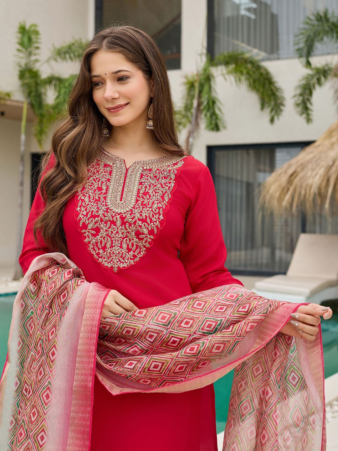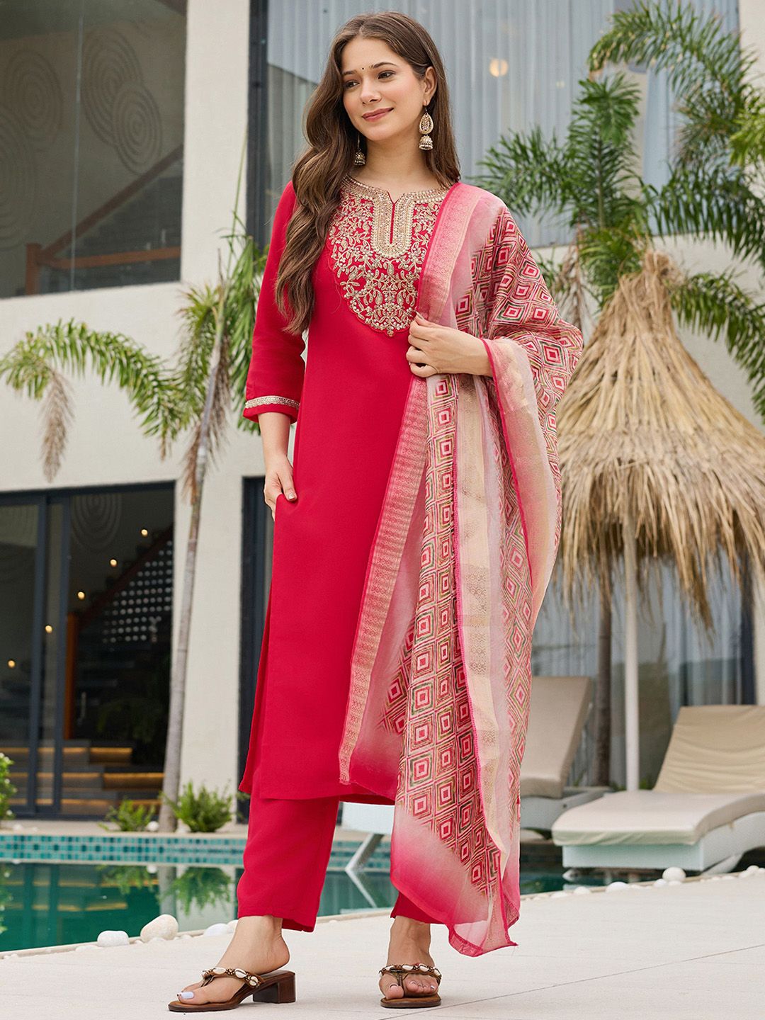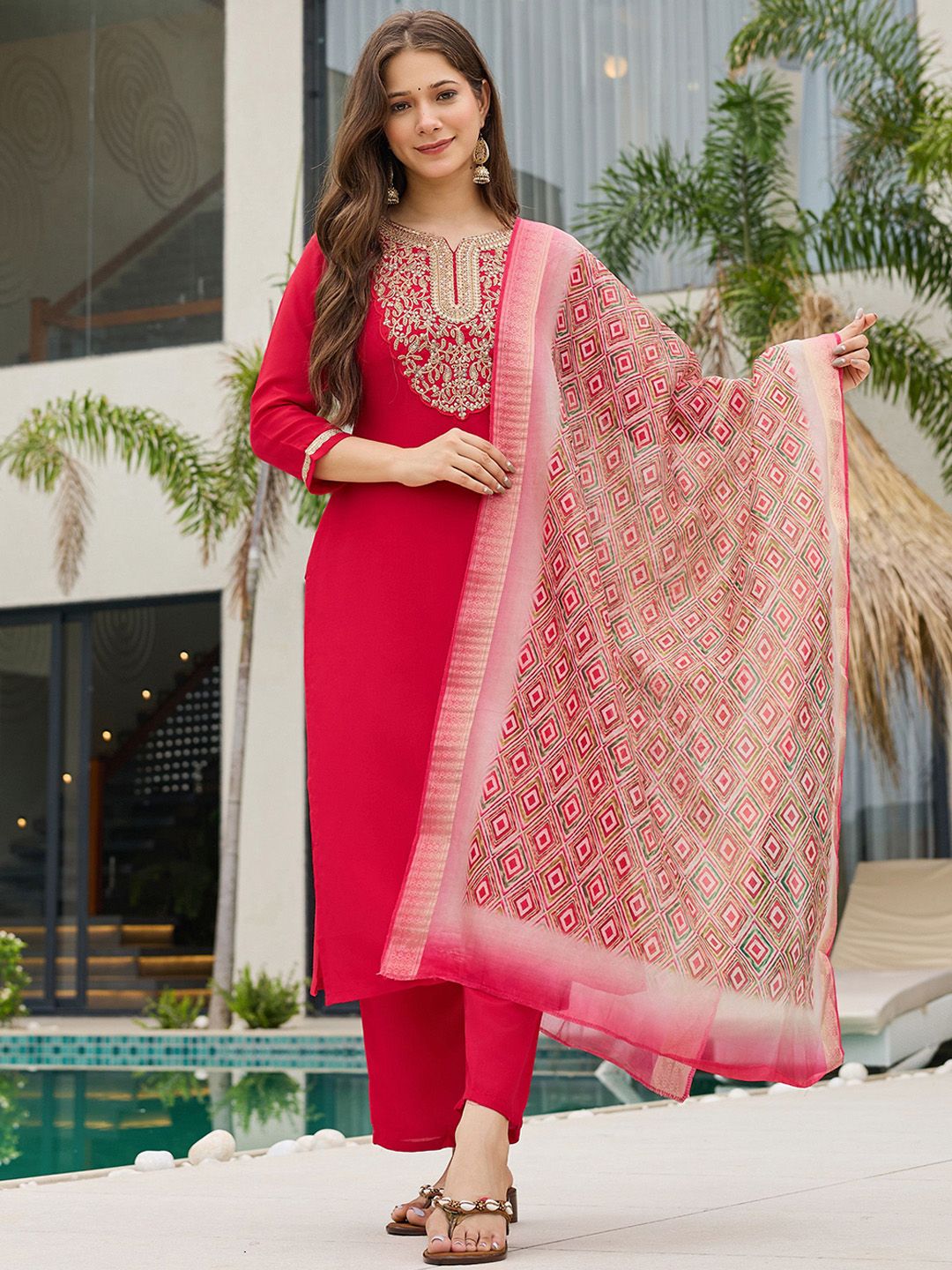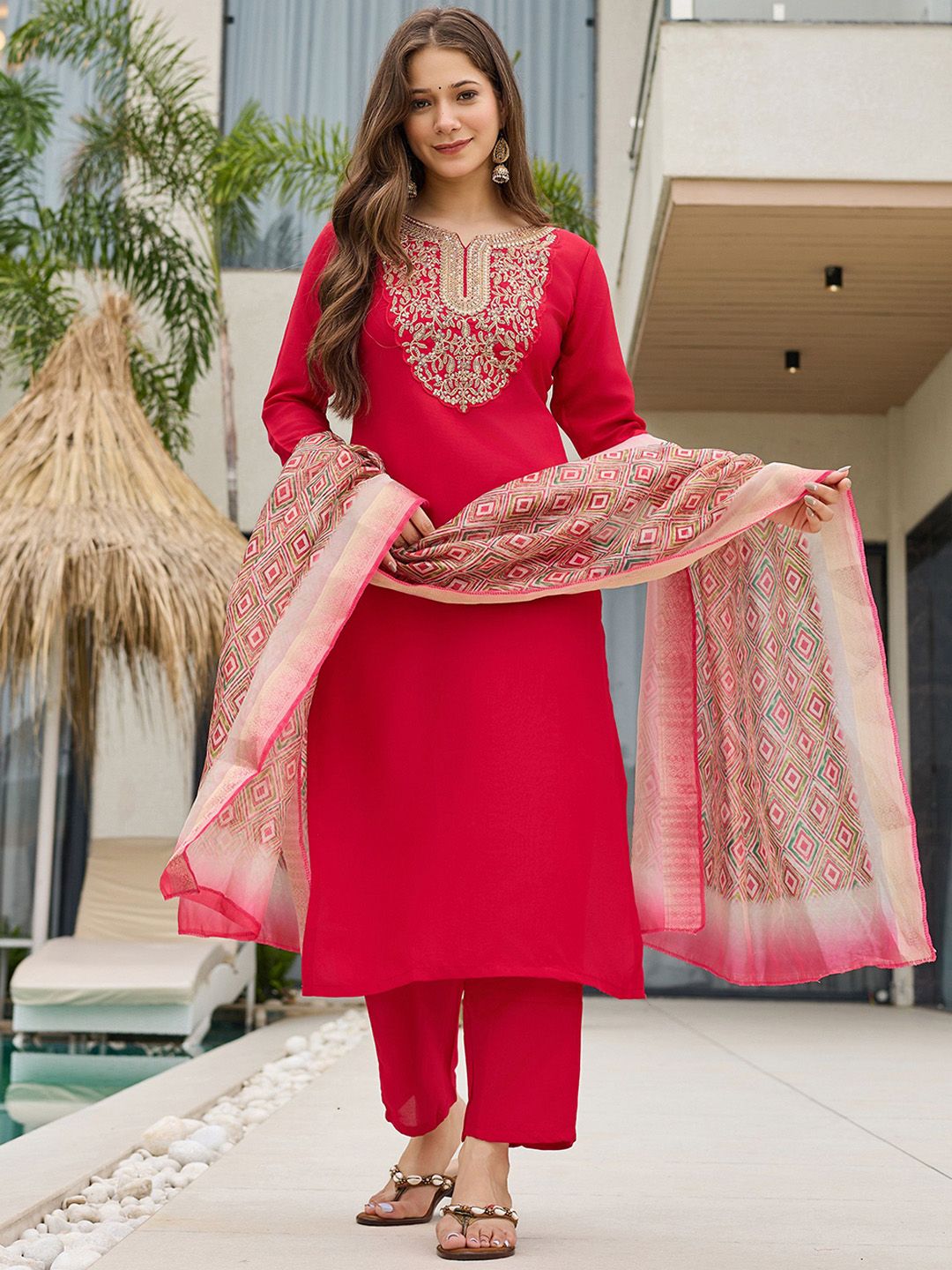 KALINI Women Woven Design Embroidered Kurta with Trousers & Dupatta