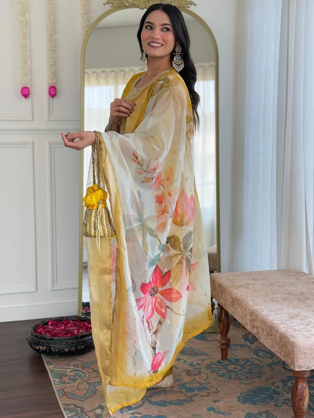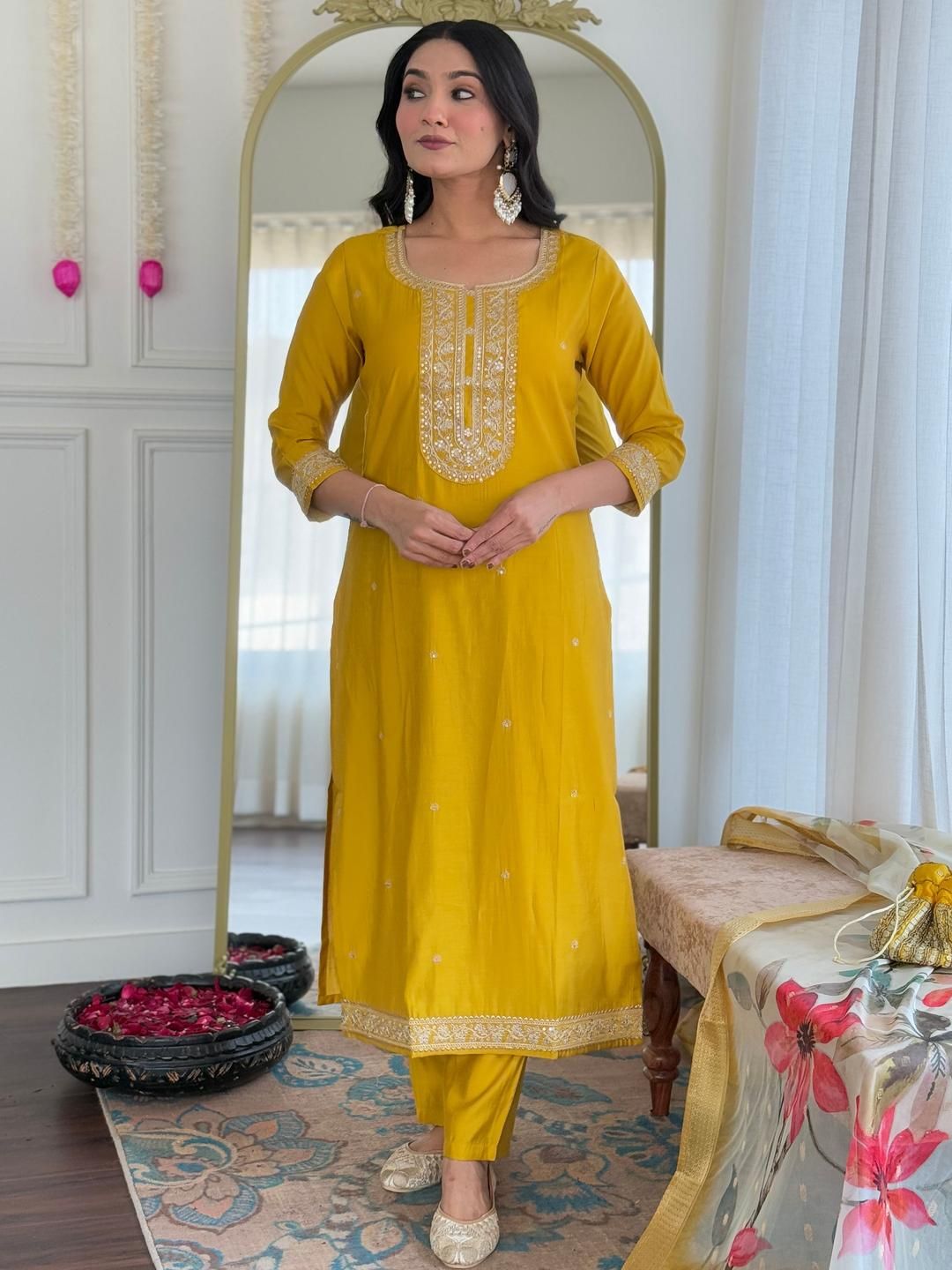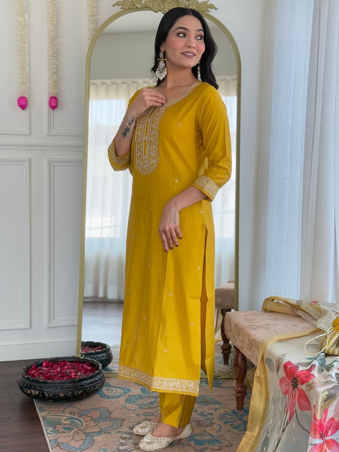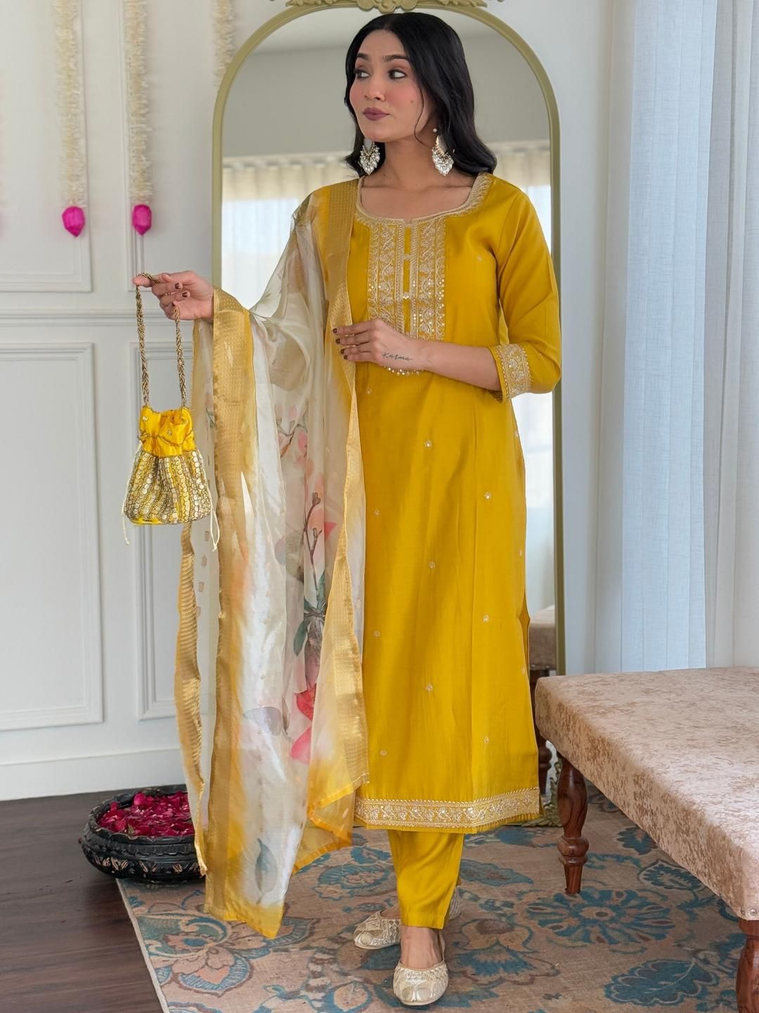KALINI Women Woven Design Embroidered Kurta with Trousers & Dupatta