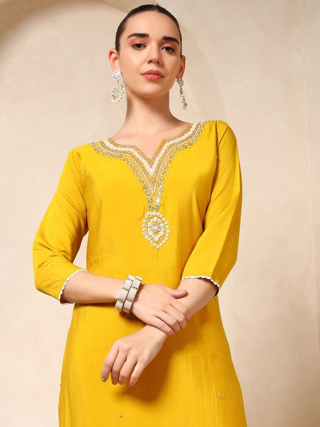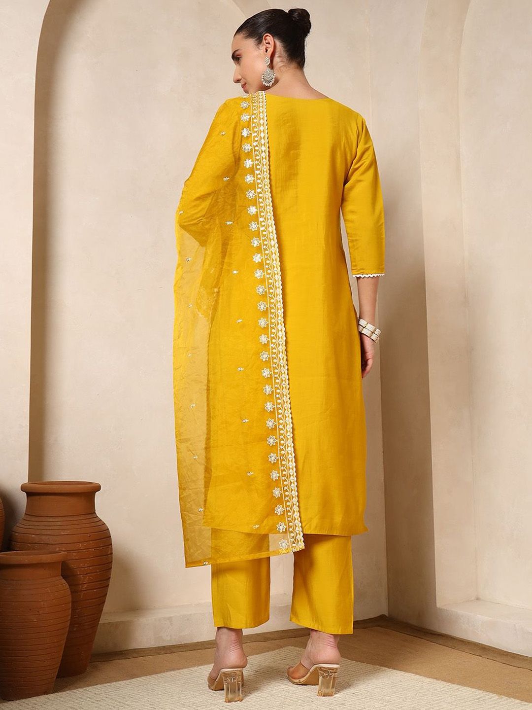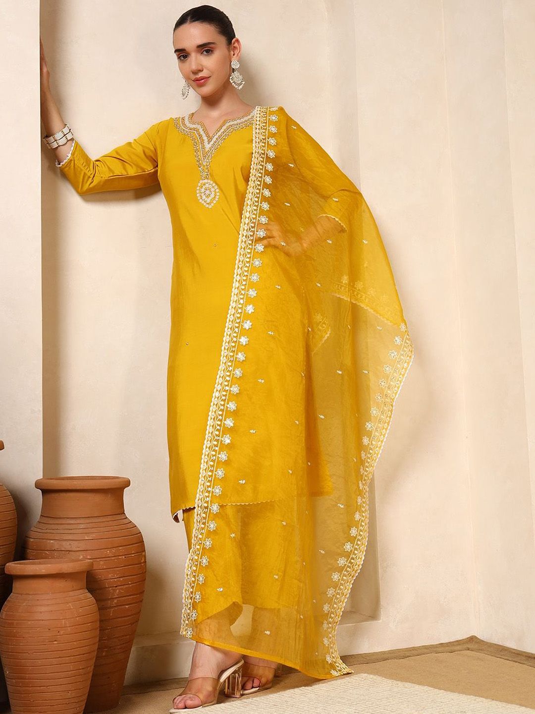 KALINI Women Woven Design Embroidered Kurta with Trousers & Dupatta