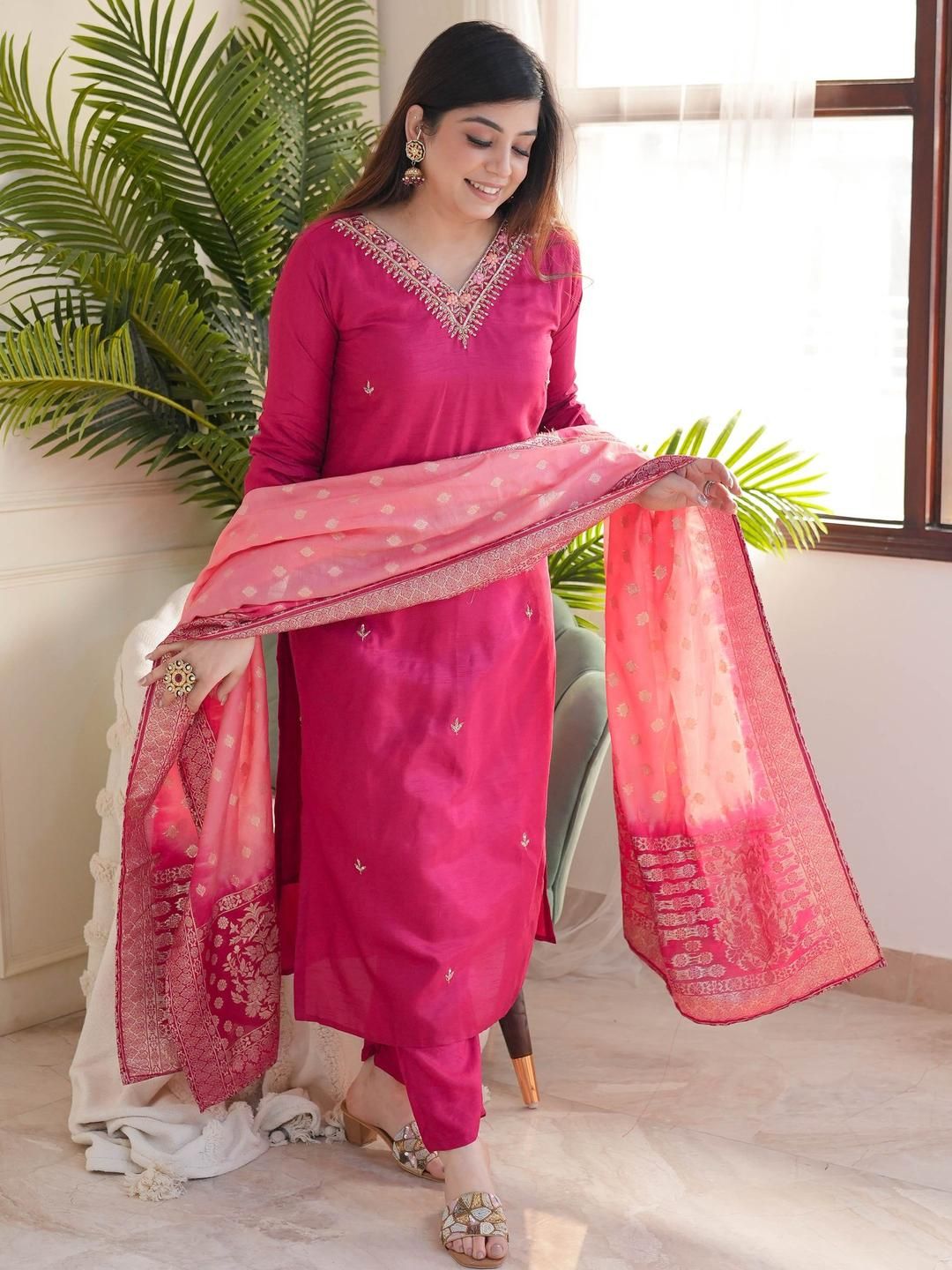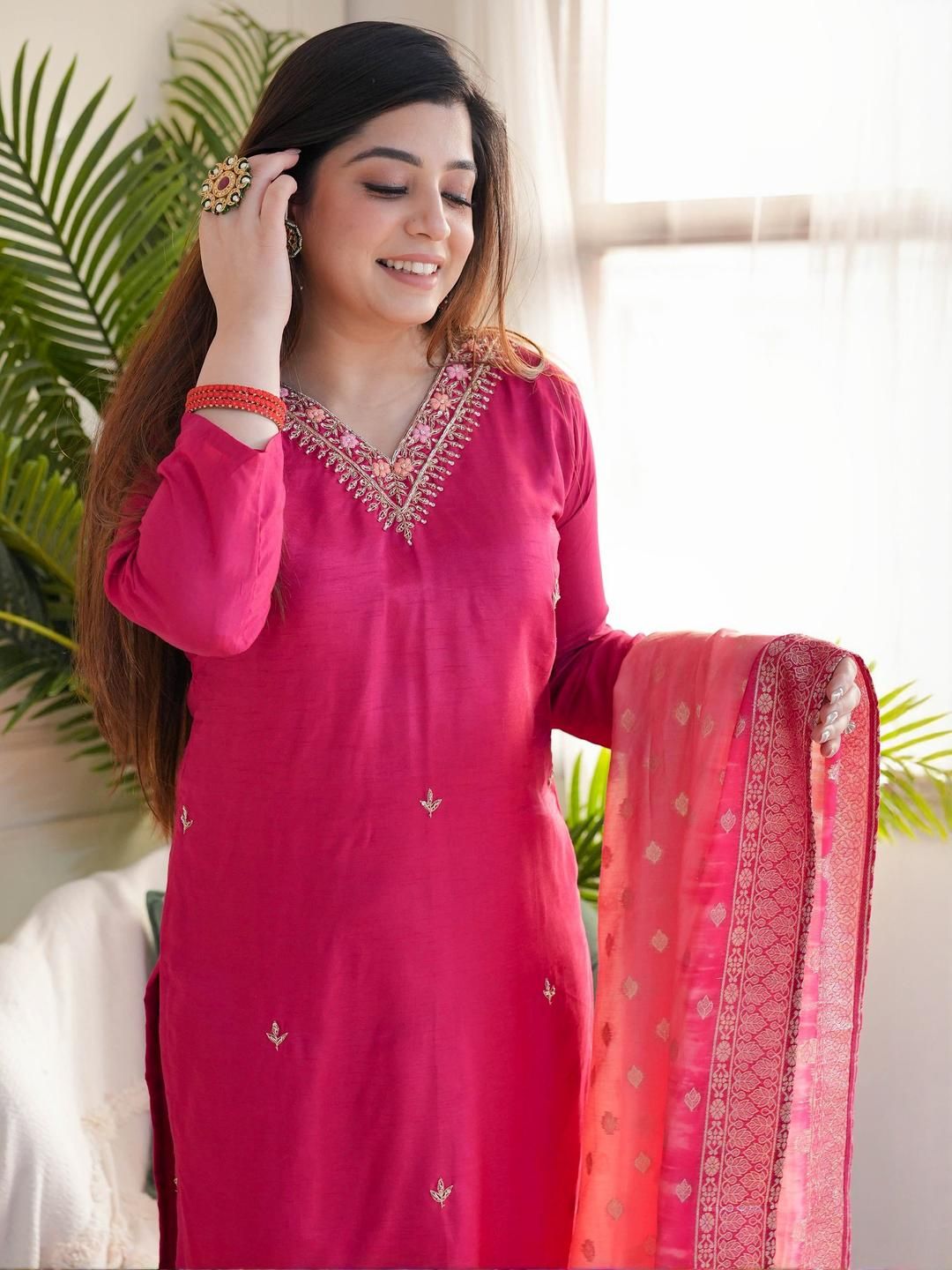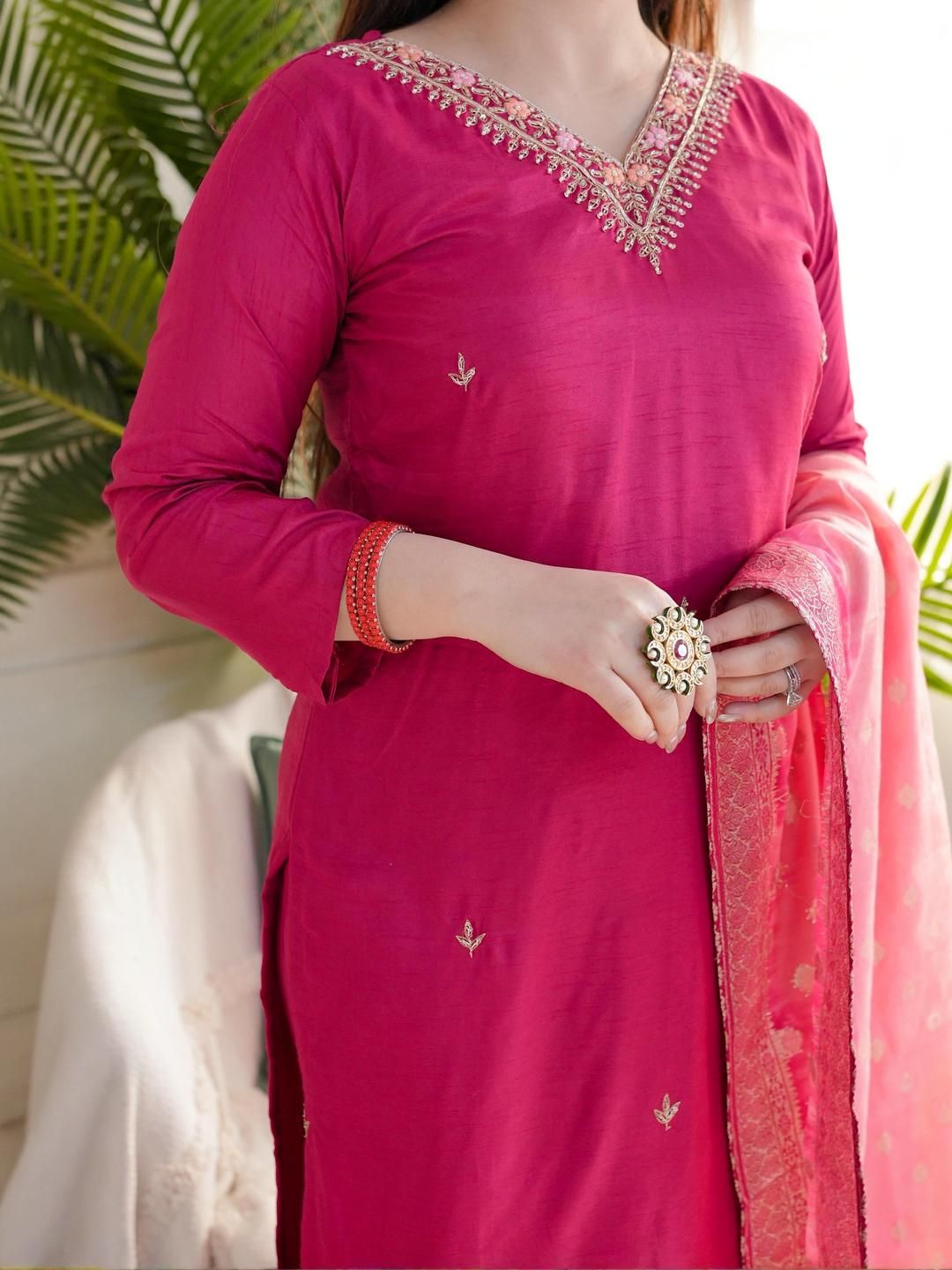 KALINI Women Woven Design Embroidered Kurta with Trousers & Dupatta