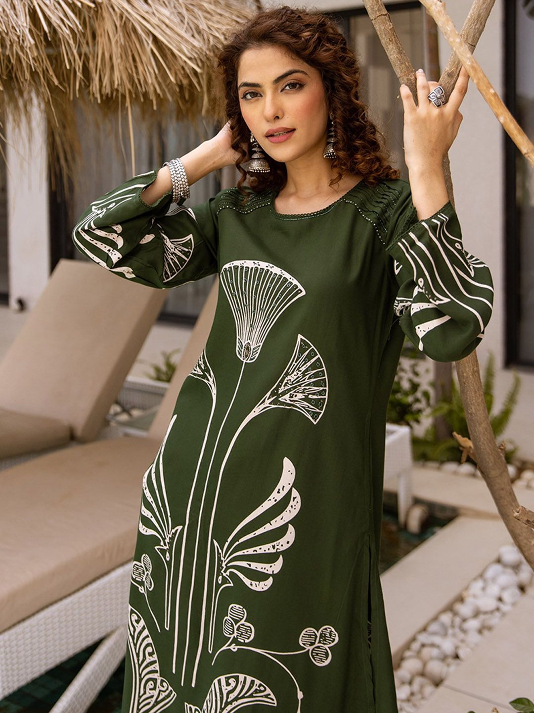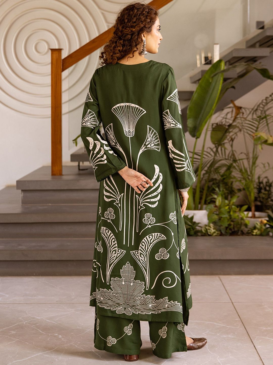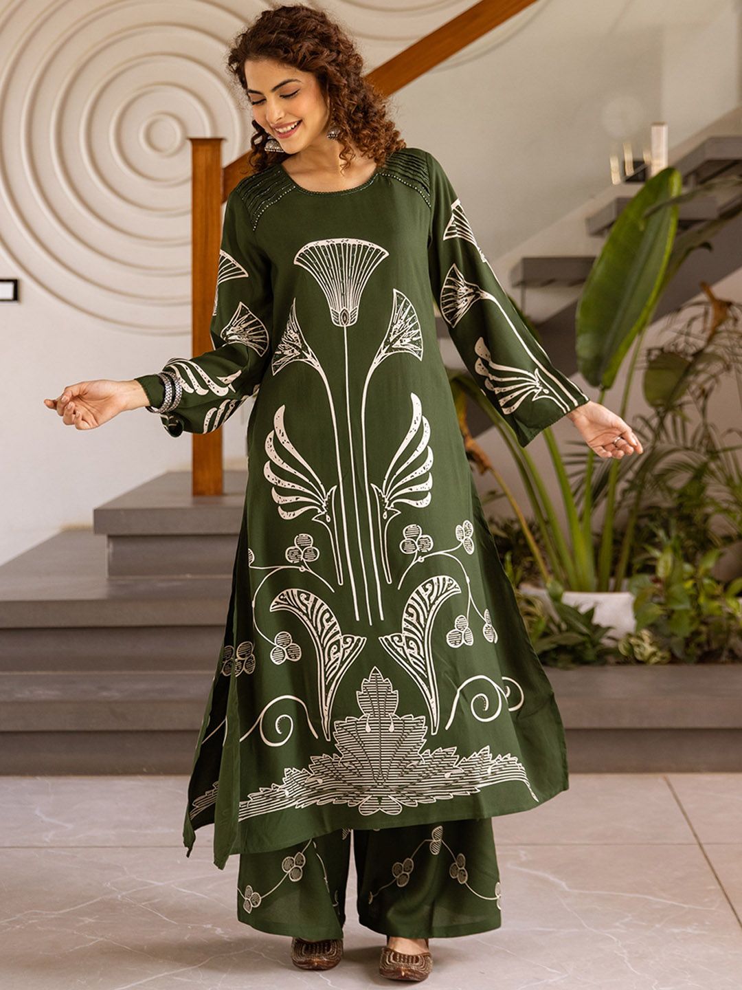 KALINI Women Woven Design Printed A-Line Kurta with Palazzo