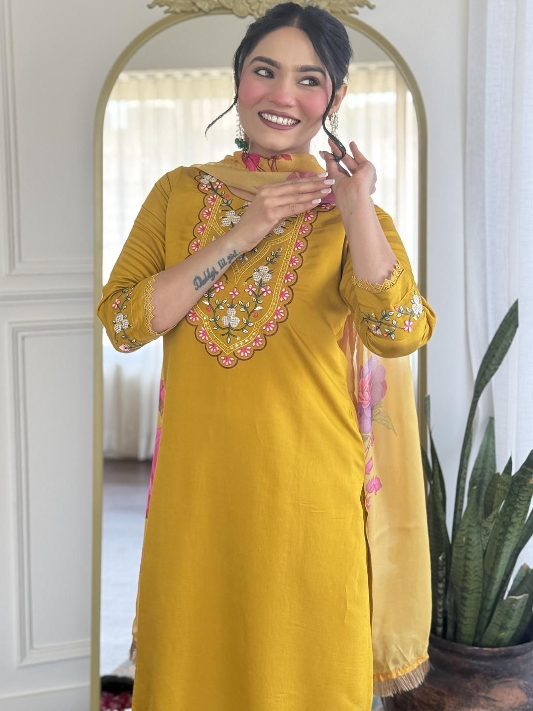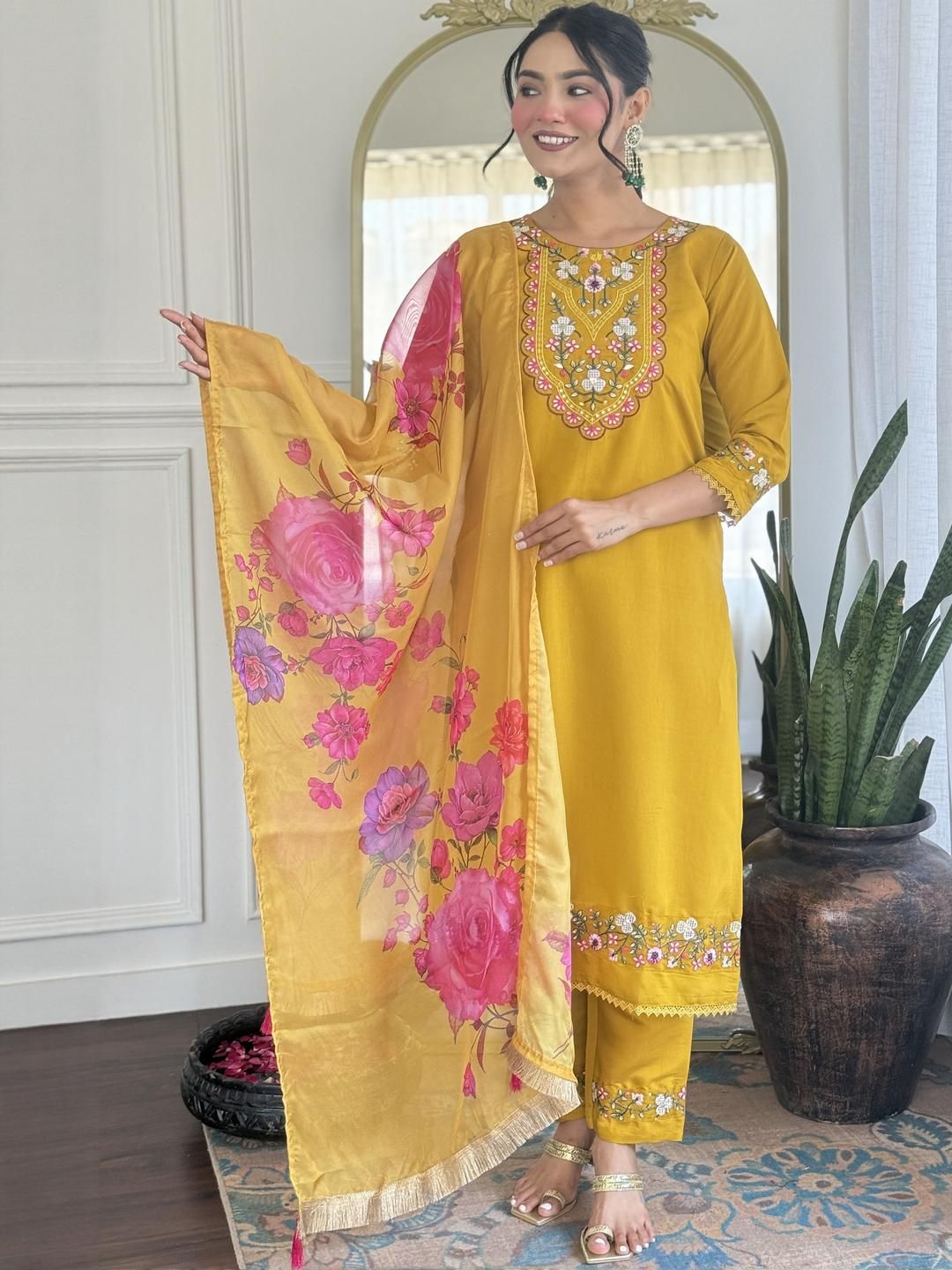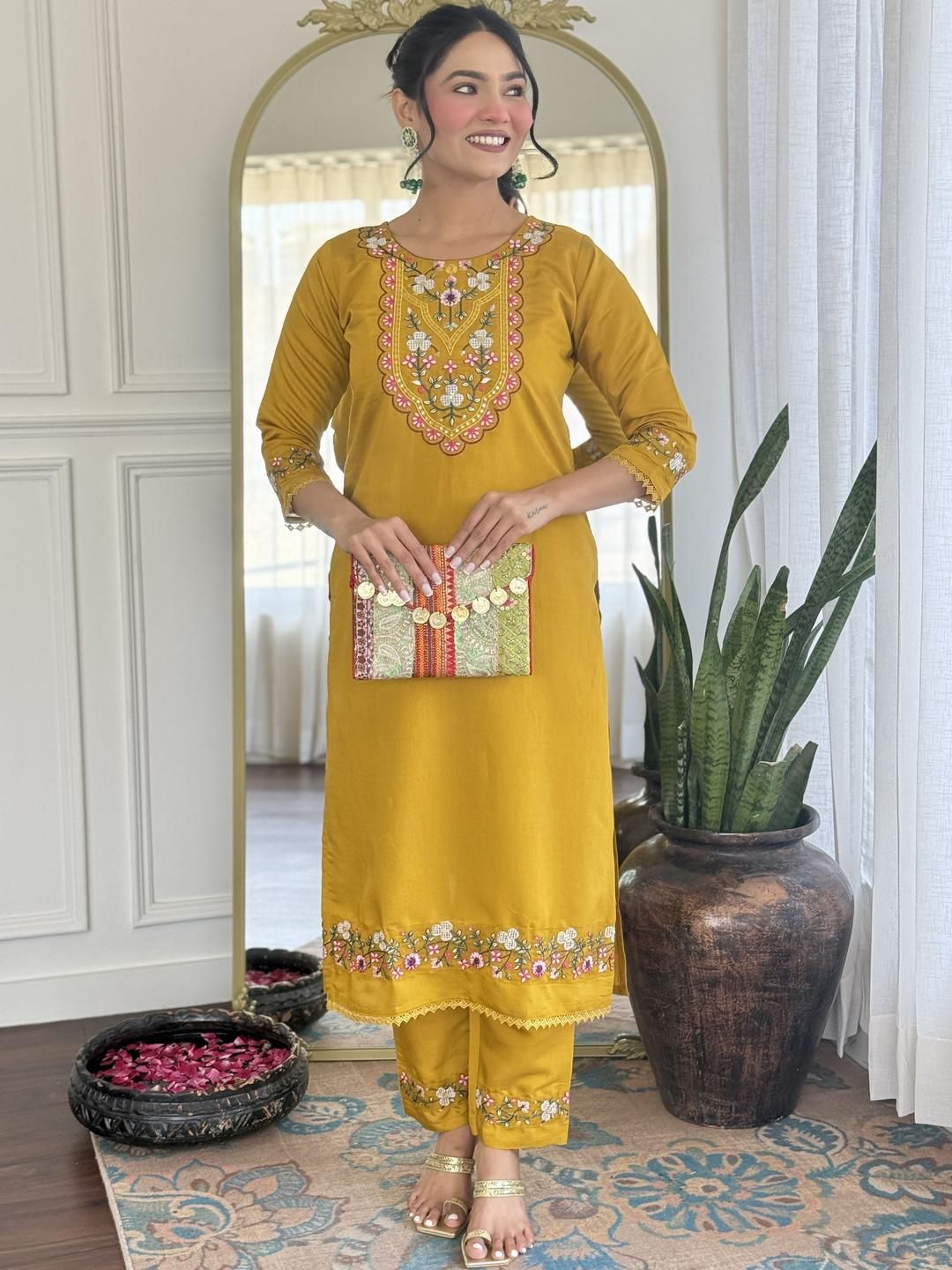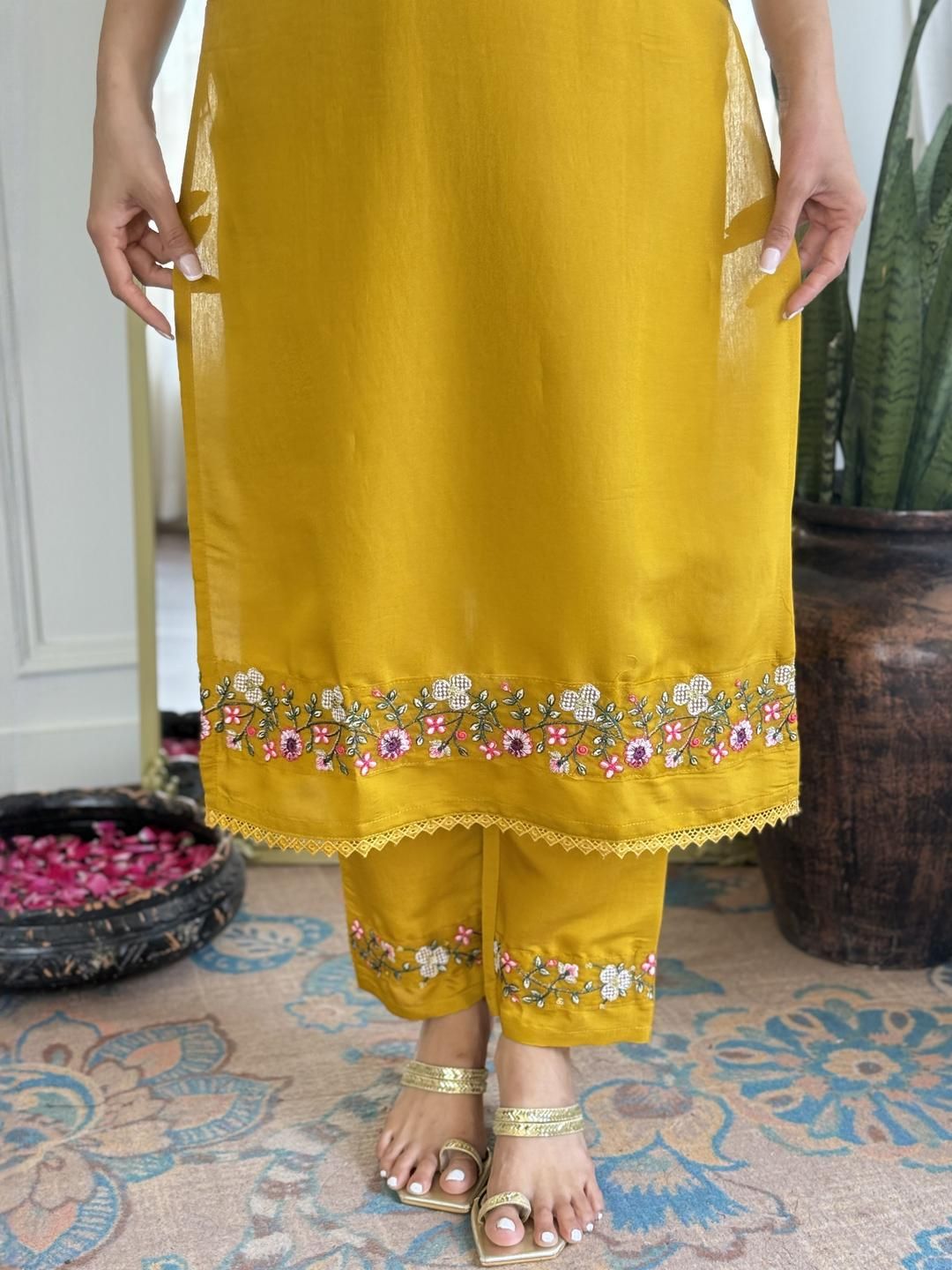 KALINI Women Yellow Chanderi Silk Kurta Sets