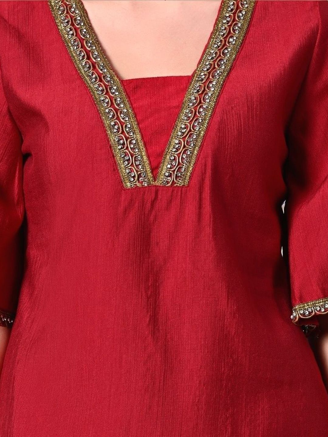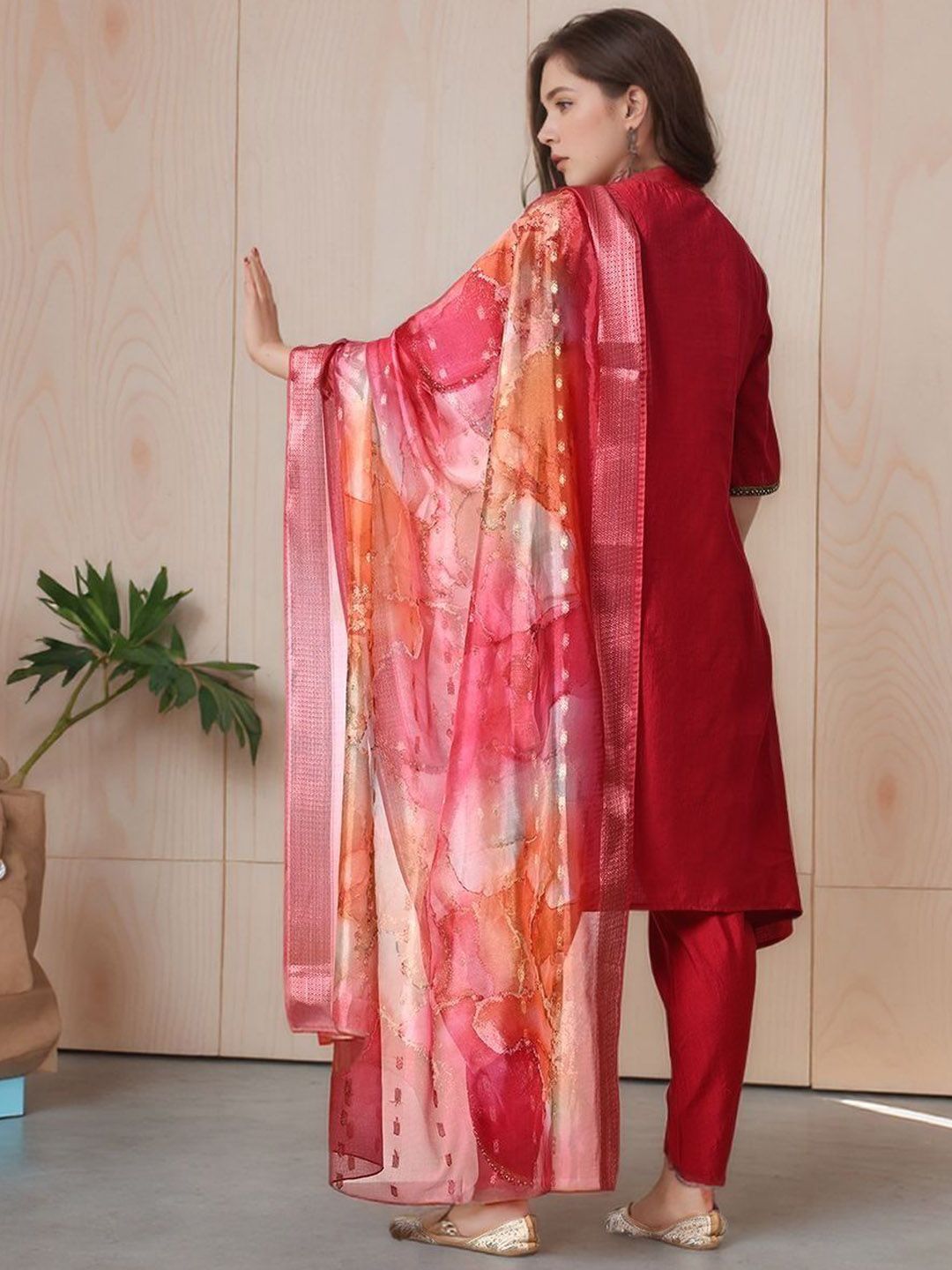 KALINI Women Yoke Design V-Neck A-Line Kurta WIth Dhoti Pants & Dupatta