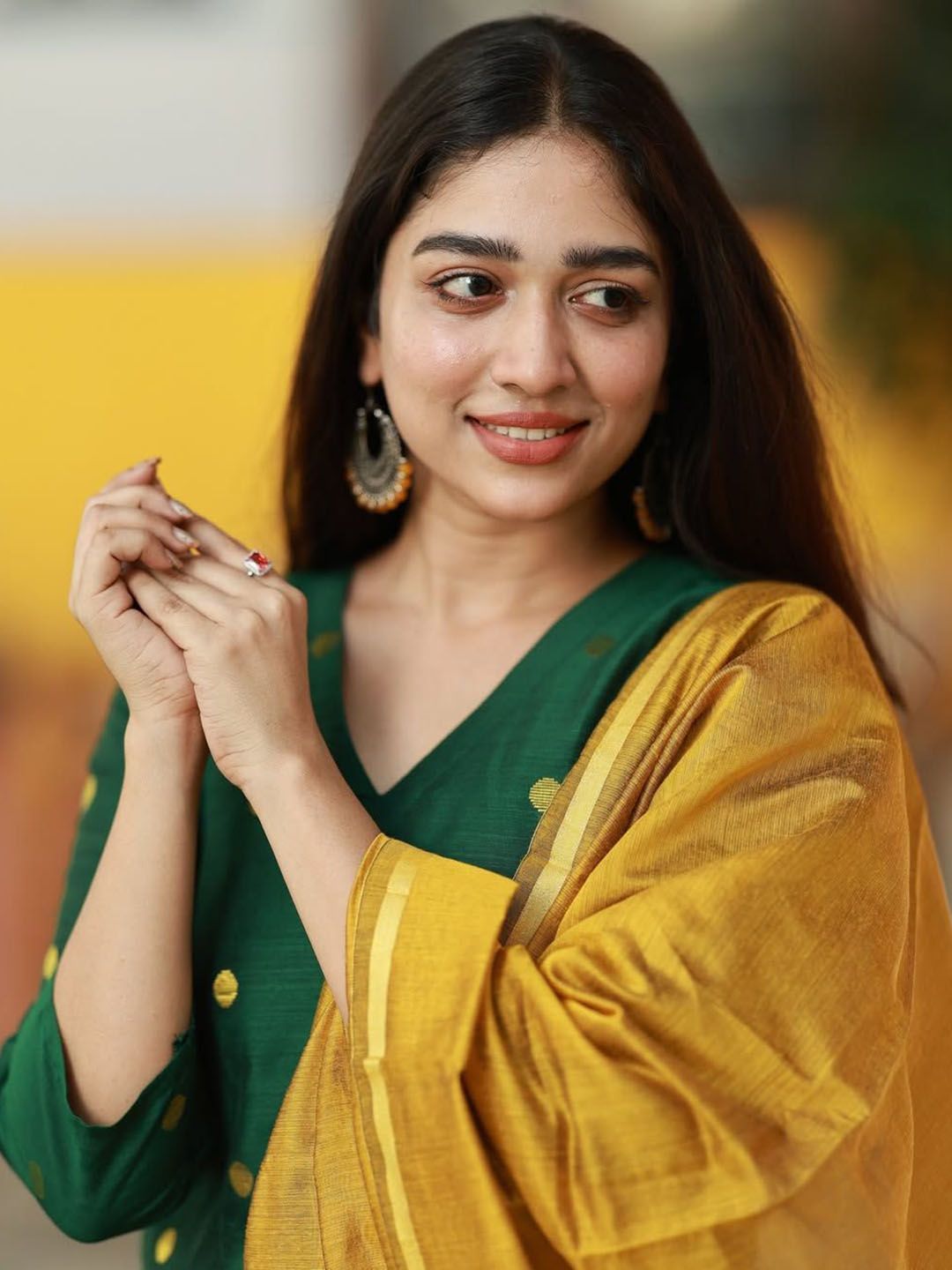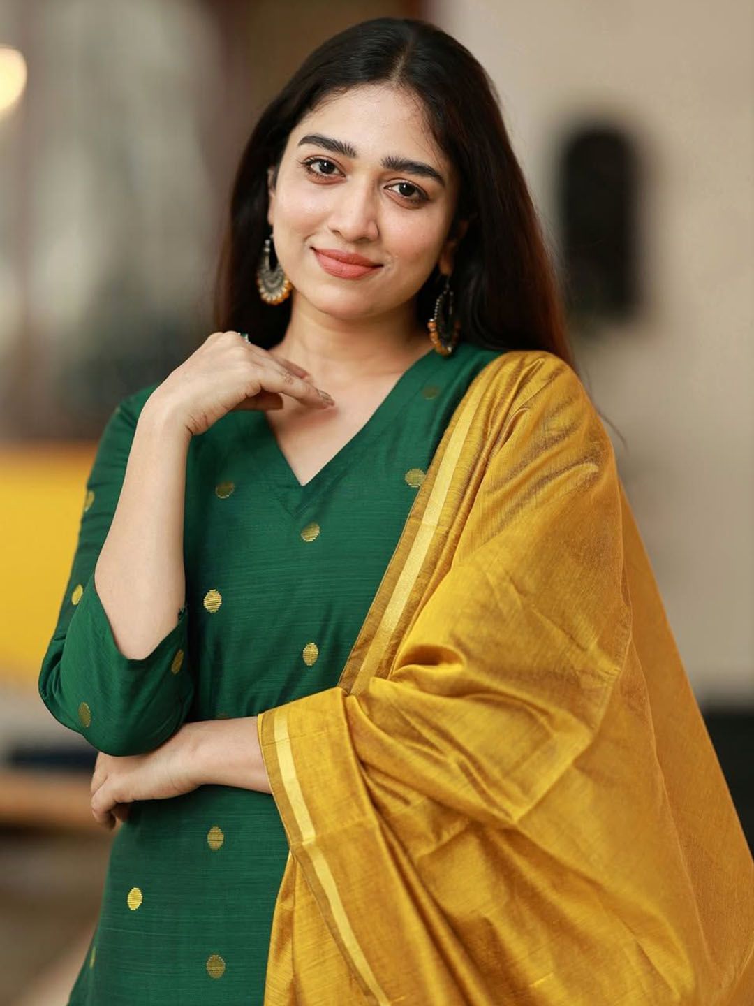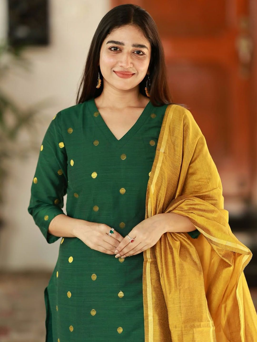 KALINI Woven Design V-Neck Straight Kurta With Trousers And Dupatta