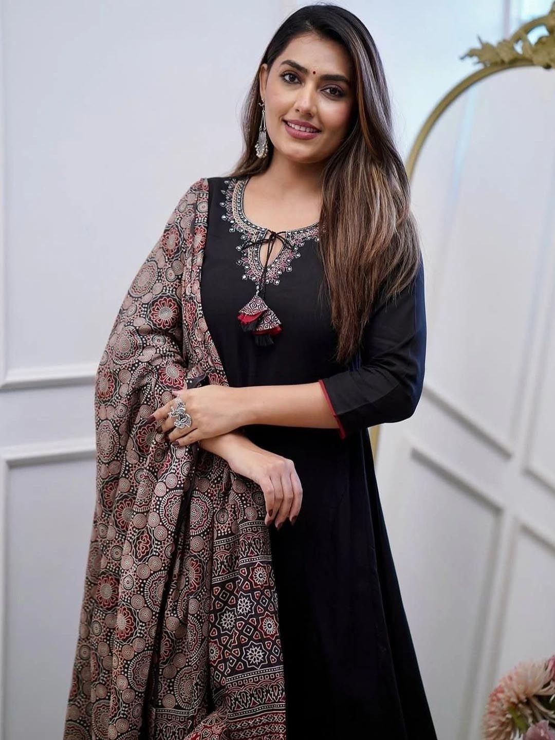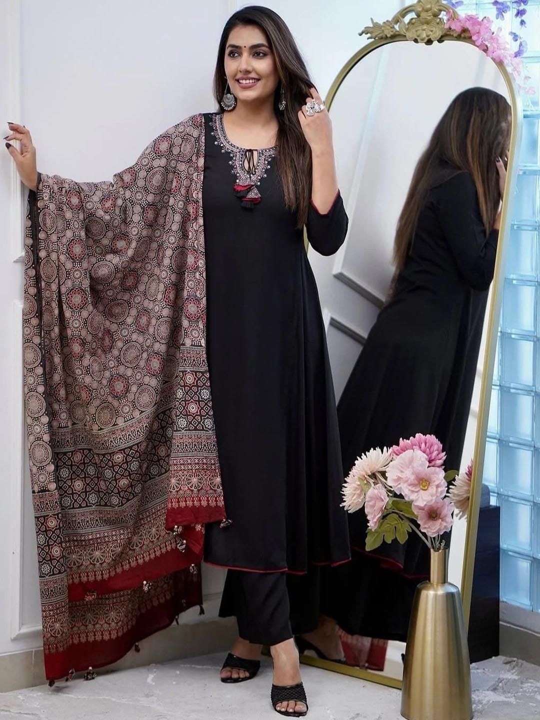 KALINI Yoke Design Tie-Up Neck A-Line Kurta With Palazzos & Dupatta