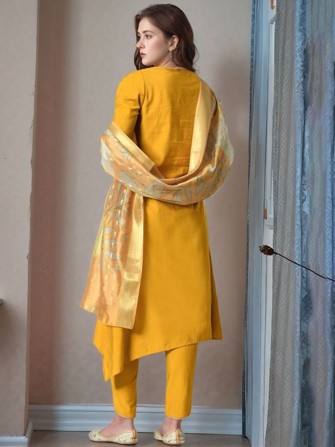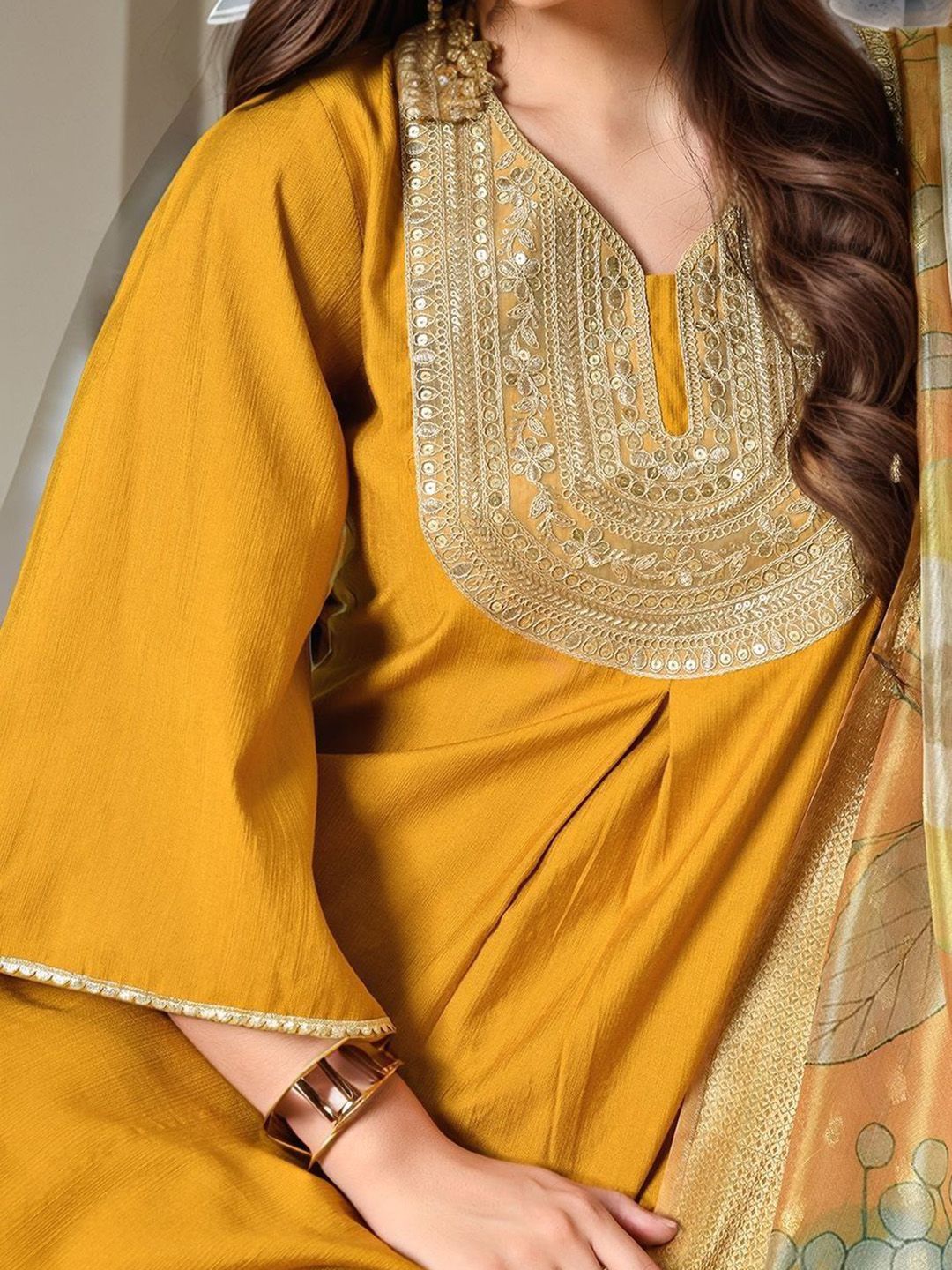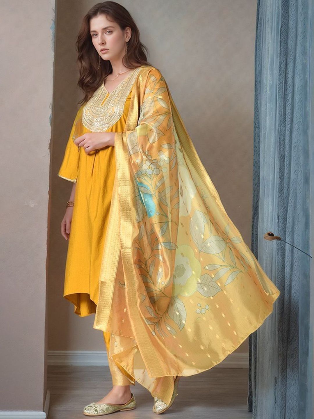 KALINI Yoke Design V-Neck A-Line Kurta With Dhoti Pants And Dupatta