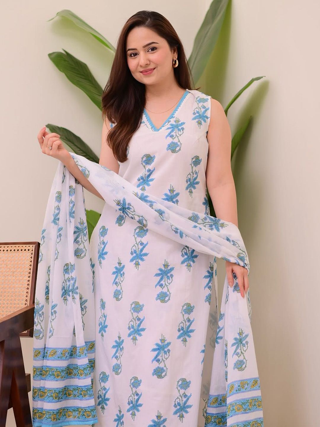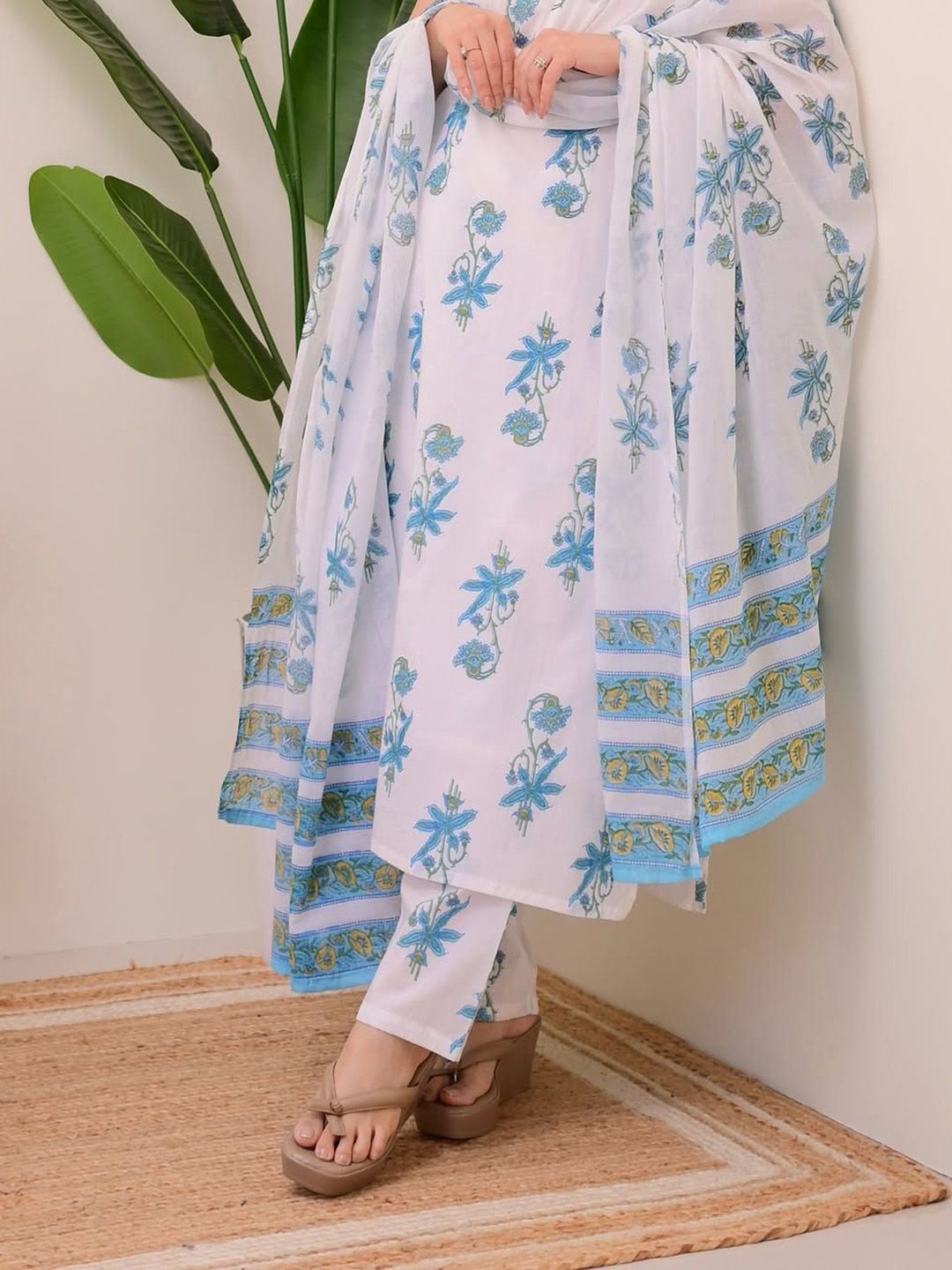 Buy this stylish KAMODIAZ Women Floral Printed Regular Pure Cotton Kurta, Trousers With Dupatta at Marincart Nepal. This product offers great quality and value. Perfect for those looking for the latest trends in fashion. Get yours now at unbeatable prices.