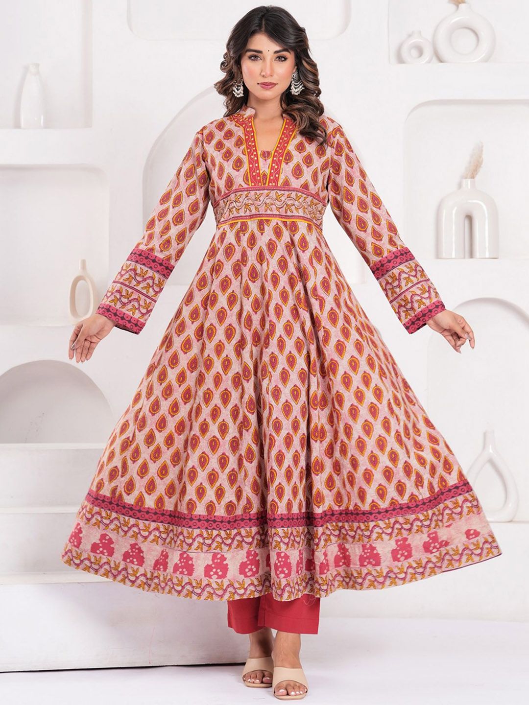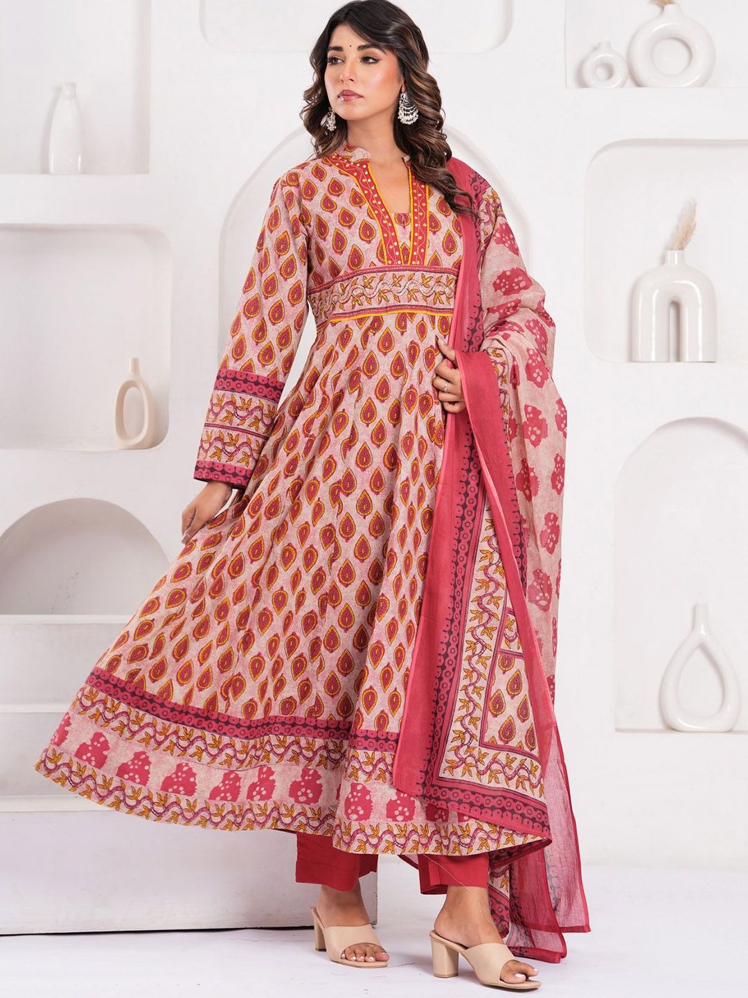 Kanahari Women Ethnic Motifs Printed Cotton Anarkali Kurta with Trouser & Dupatta
