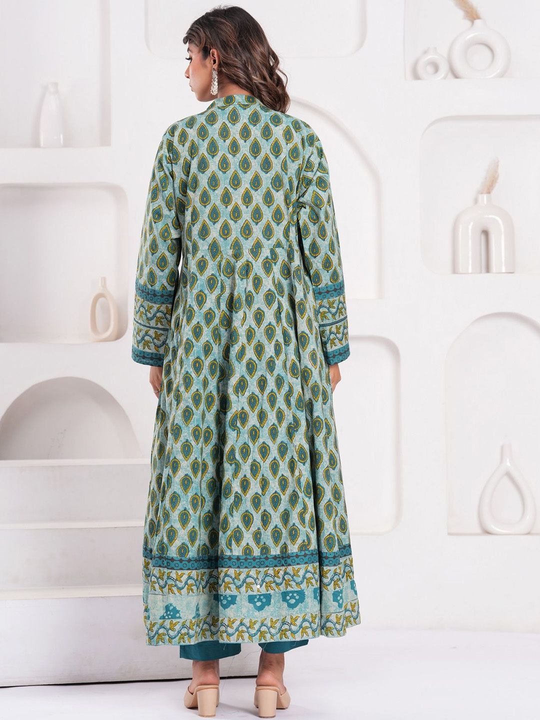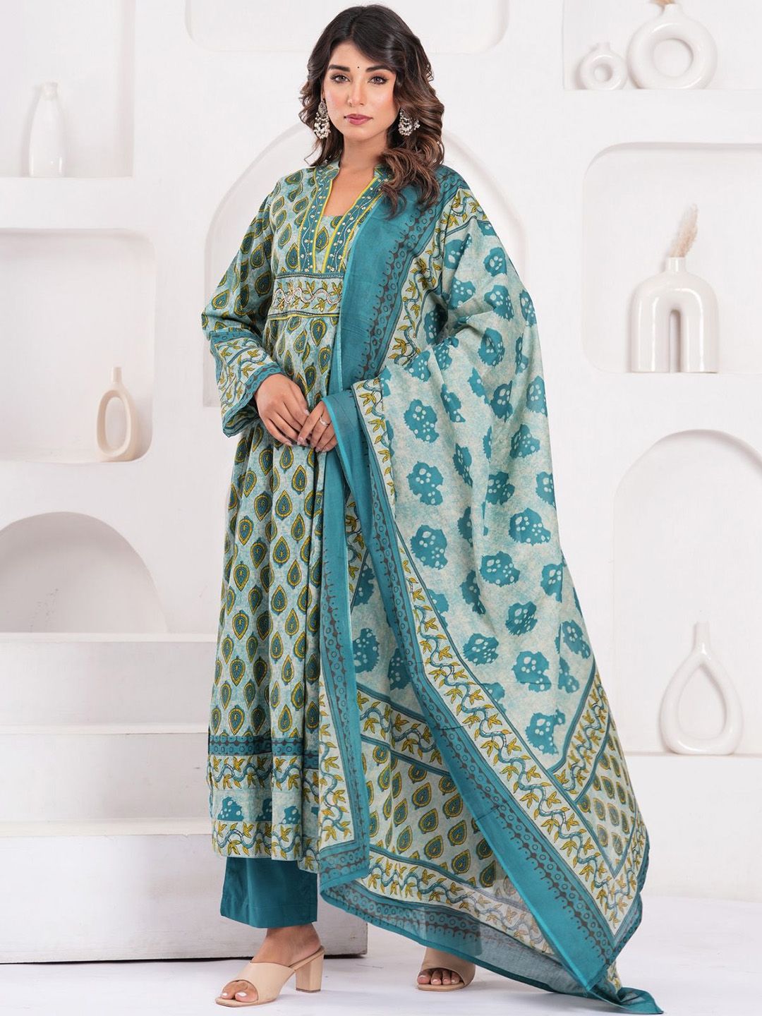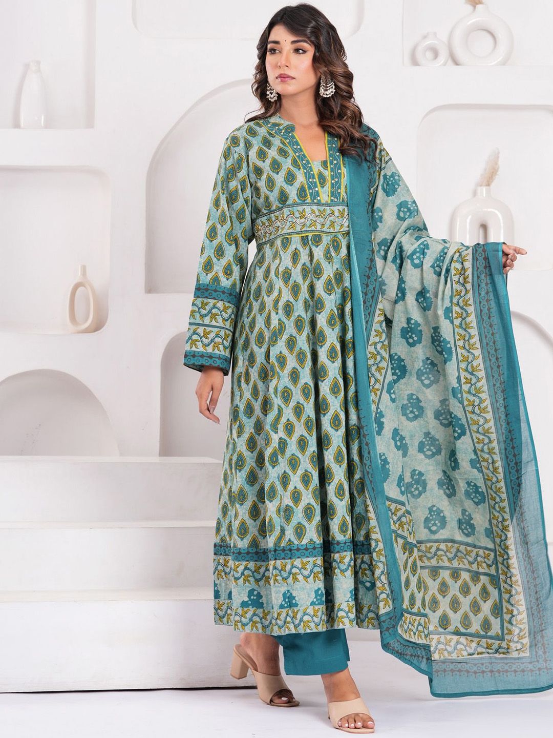 Kanahari Women Ethnic Motifs Printed Cotton Anarkali Kurta with Trousers & Dupatta