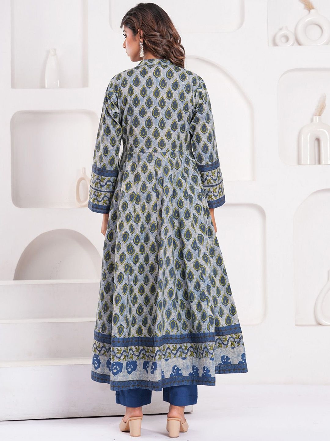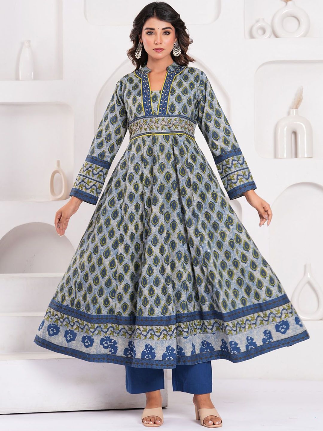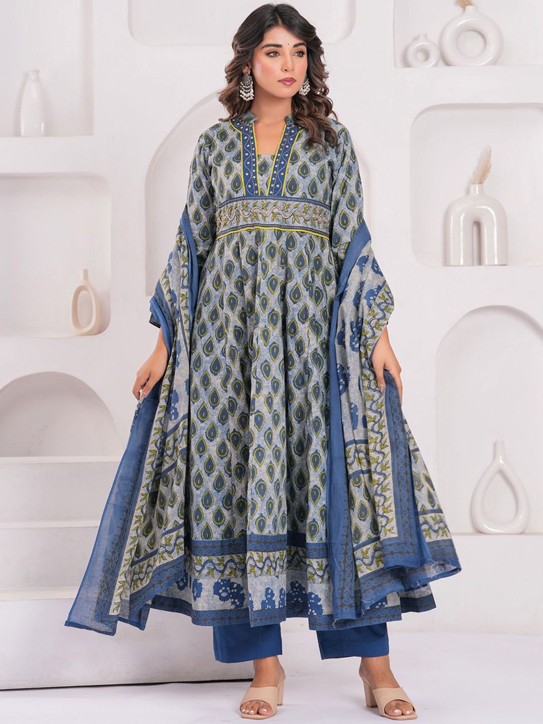 Kanahari Women Ethnic Motifs Printed Pure Cotton Anarkali Kurta & Trousers With Dupatta