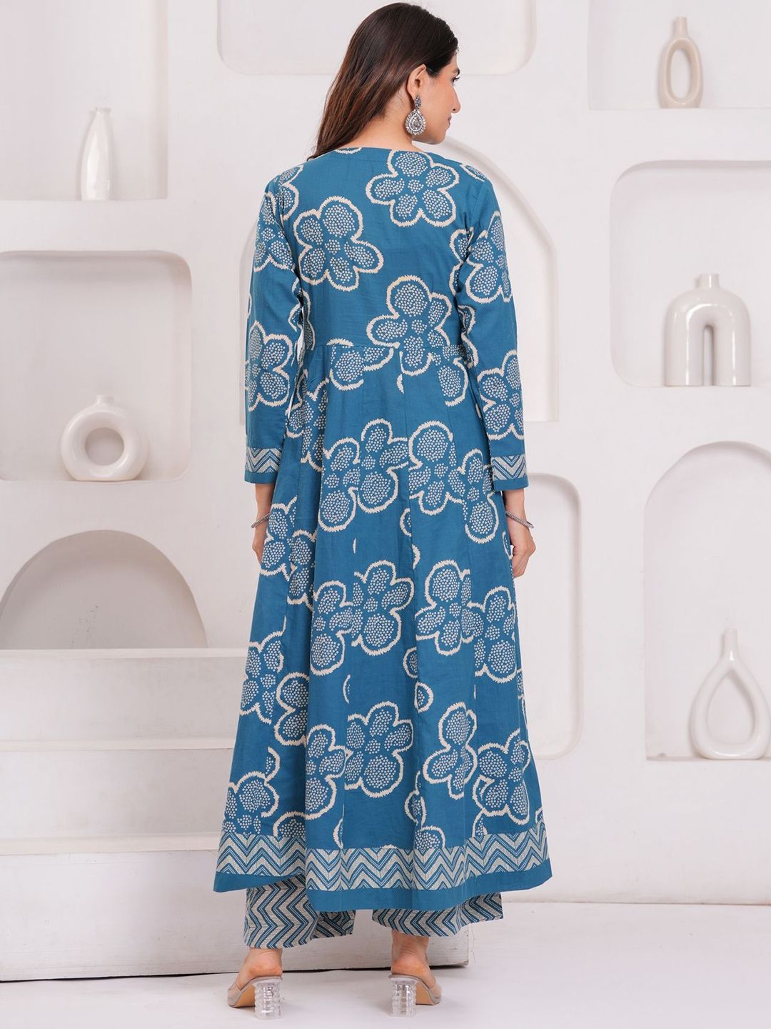 Kanahari Women Floral Printed Regular Kantha Work Pure Cotton Kurta with Trousers