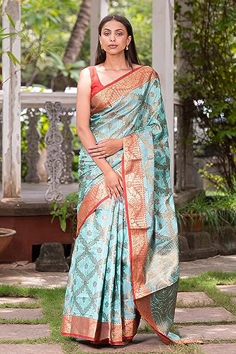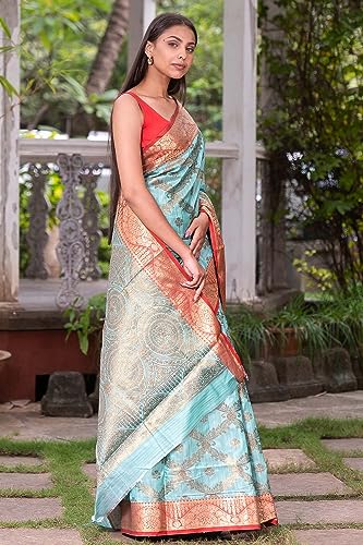 KARAGIRI Maya Blue Slub Cotton Sarees