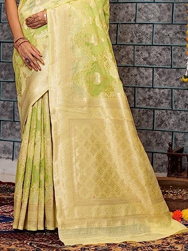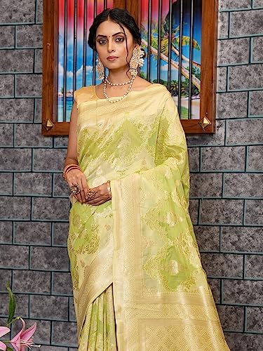 KARAGIRI Womens Cotton Green Saree With Blouse Piece