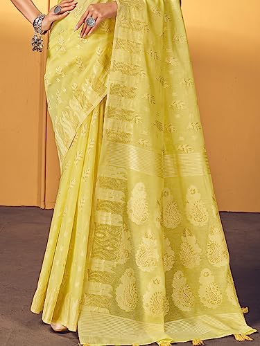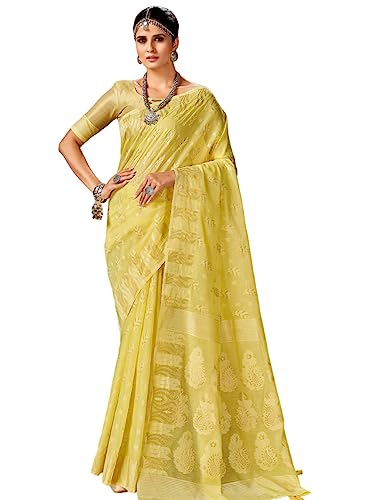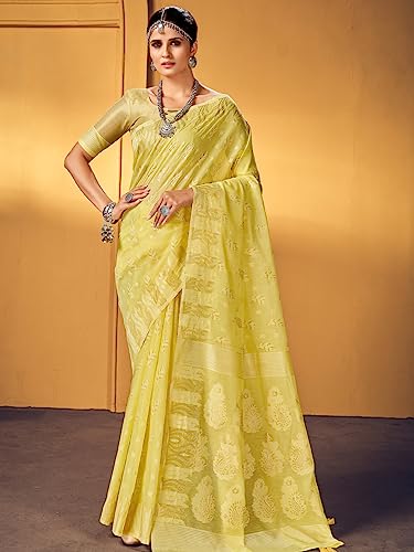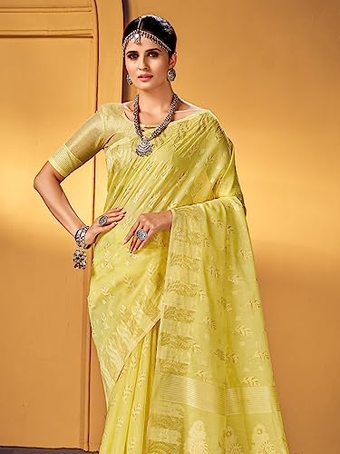 KARAGIRI Womens Cotton Yellow Saree With Blouse Piece