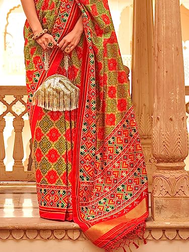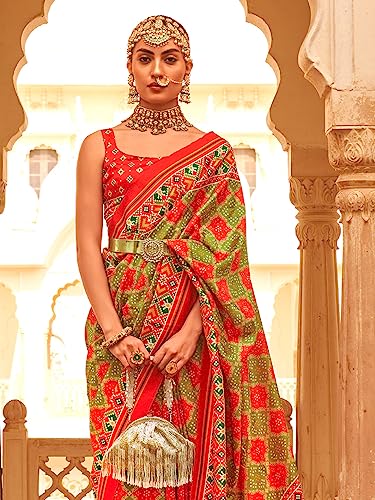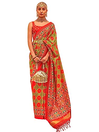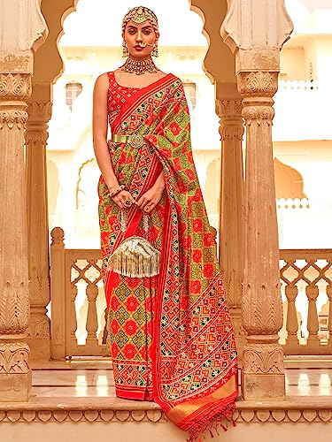 KARAGIRI Womens Patola Silk Green Saree With Blouse Piece