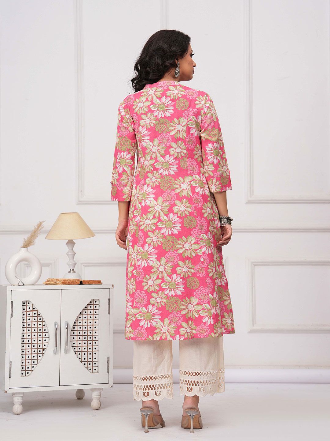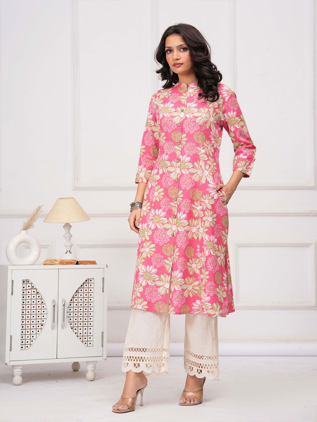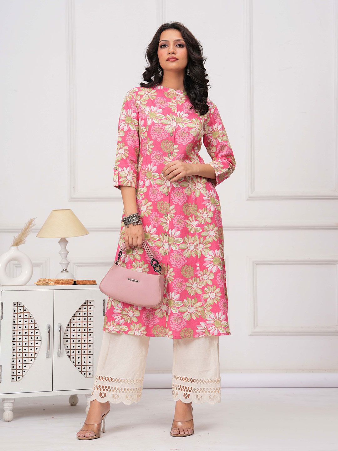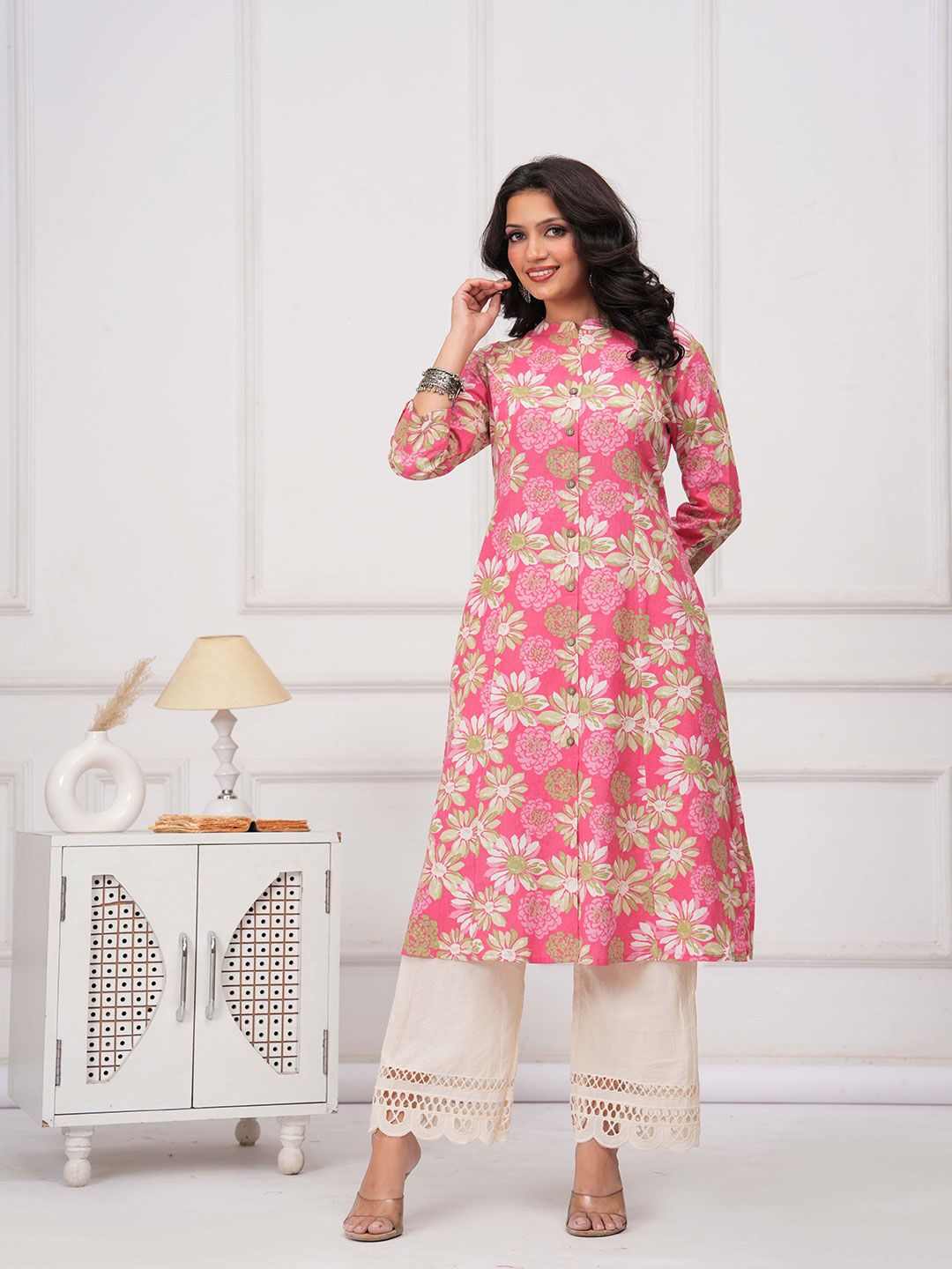 Karaveera Women Floral Printed A-Line Cotton Flax Kurta Set