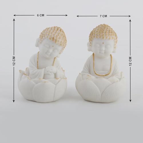 Dimensions : 6 cm L x 5.5 cm W x 11 cm H This Buddha monk showpiece, crafted from high-quality resin, features top-notch craftsmanship with vibrant, long-lasting colors. The superior quality materials ensure durability, while the premium finish enhances the aesthetic appeal, making it a beautiful and serene addition to any space Keeping a Buddha monk showpiece in your space promotes inner peace, mindfulness, and a calming atmosphere. It enhances positive energy and spiritual balance, creating a serene environment for meditation and relaxation. This Buddha monk statues can be placed in various areas of your home, office, or garden to enhance the energy and create a serene environment. Here are some ideal locations for placing Buddha monk statues: IDEAL FOR : Decoration items for home, home decor items for living room, decorative items for home, decorative items for home, artificial flowers for decoration, table decor, office, bedroom, home decoration, kitchen decor, shelf, showpiece for home decor, decorative items for home living room, figurine for house warming ceremony, sculptures home decor, decorative items for home living room, showpiece for table decoration