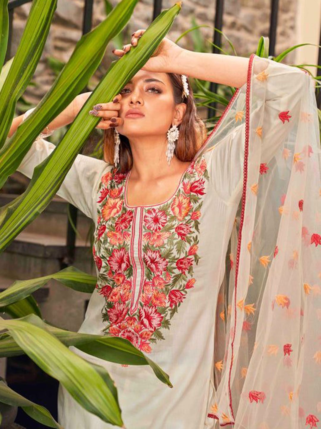 Buy this stylish KAUTIK FABRICS Floral Embroidered Round Thread Work Kurta With Trousers & Dupatta at Marincart Nepal. This product offers great quality and value. Perfect for those looking for the latest trends in fashion. Get yours now at unbeatable prices.