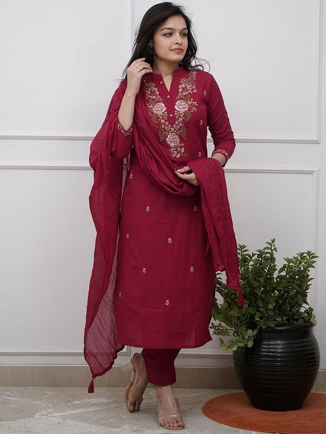 KAUTIK FABRICS Floral Embroidered Thread Work Kurta With Trousers & Dupatta