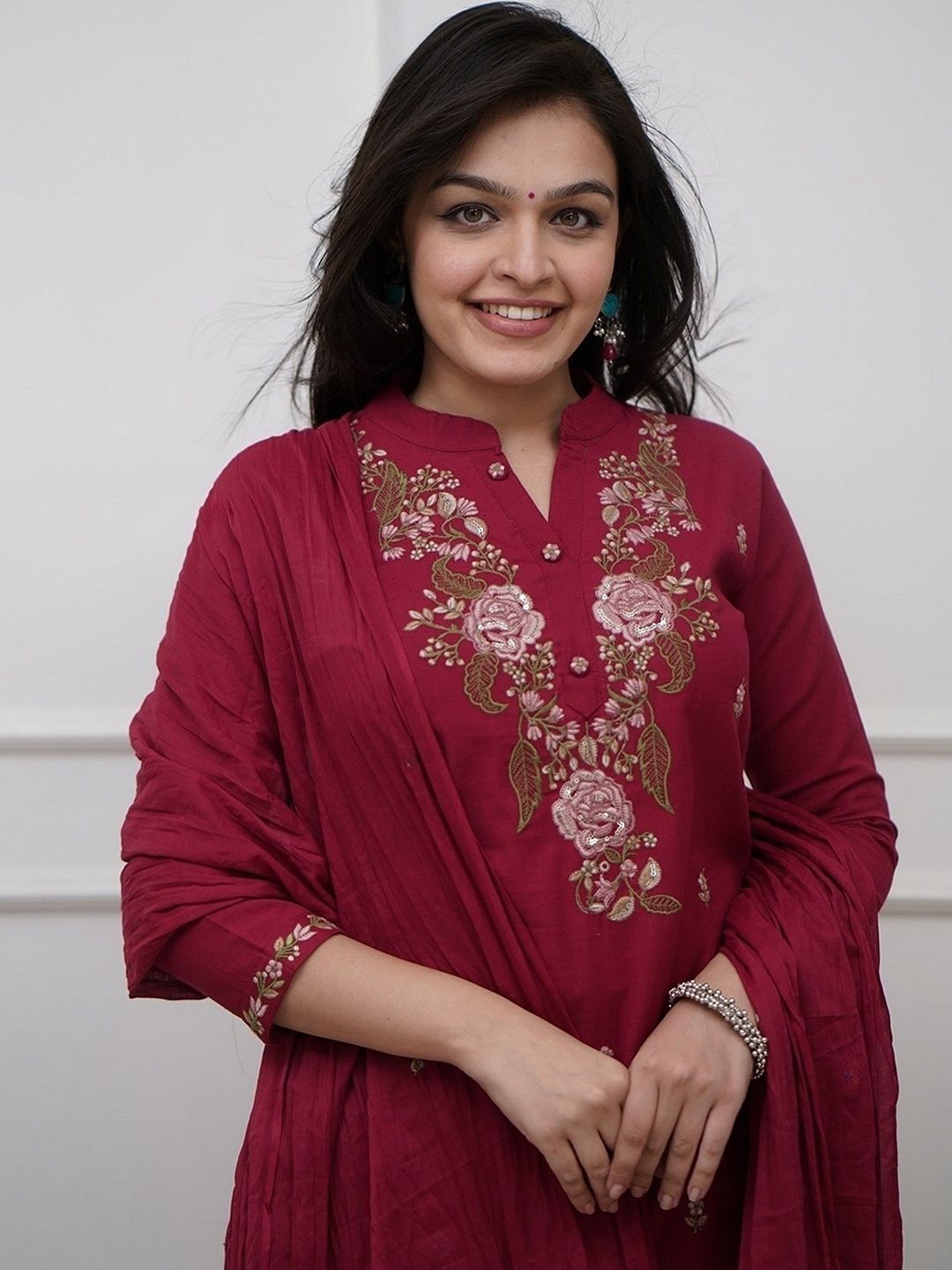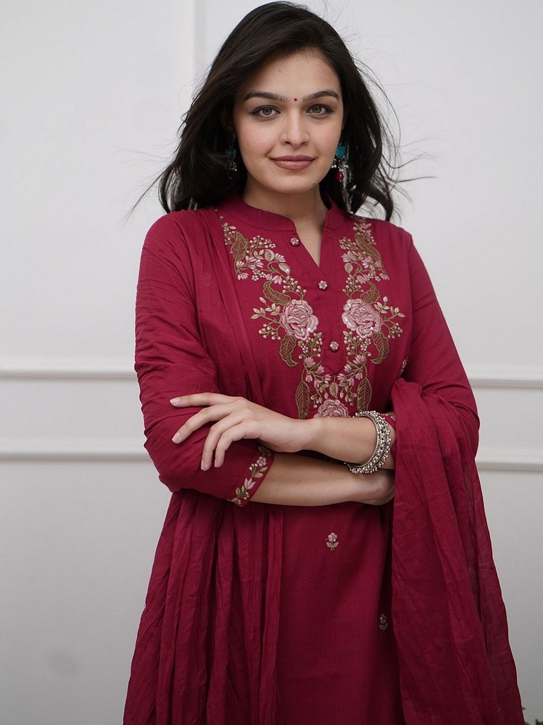 Buy this stylish KAUTIK FABRICS Floral Embroidered Thread Work Kurta With Trousers & Dupatta at Marincart Nepal. This product offers great quality and value. Perfect for those looking for the latest trends in fashion. Get yours now at unbeatable prices.