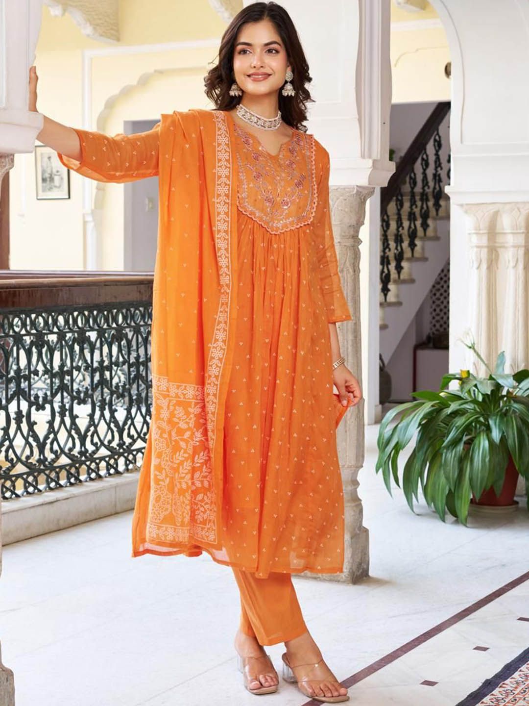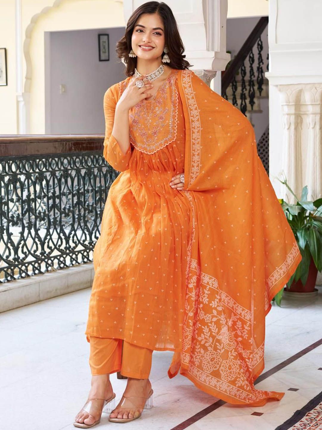 Buy this stylish KAUTIK FABRICS Floral Embroidered V-Neck Thread Work Kurta With Trousers & Dupatta at Marincart Nepal. This product offers great quality and value. Perfect for those looking for the latest trends in fashion. Get yours now at unbeatable prices.