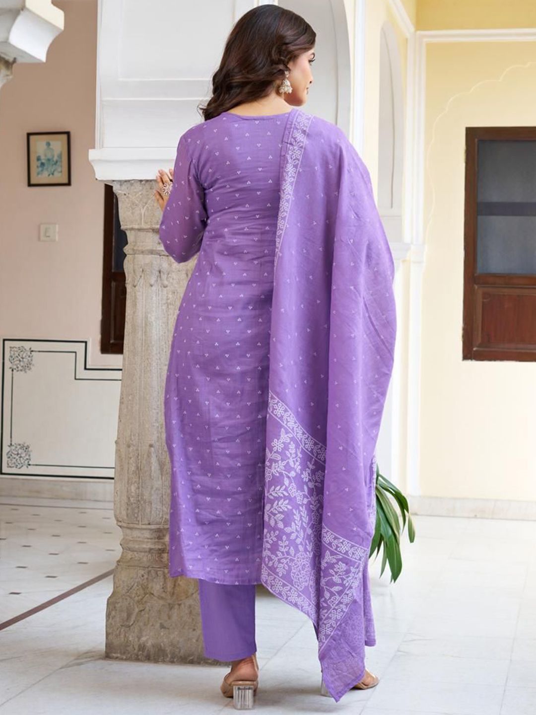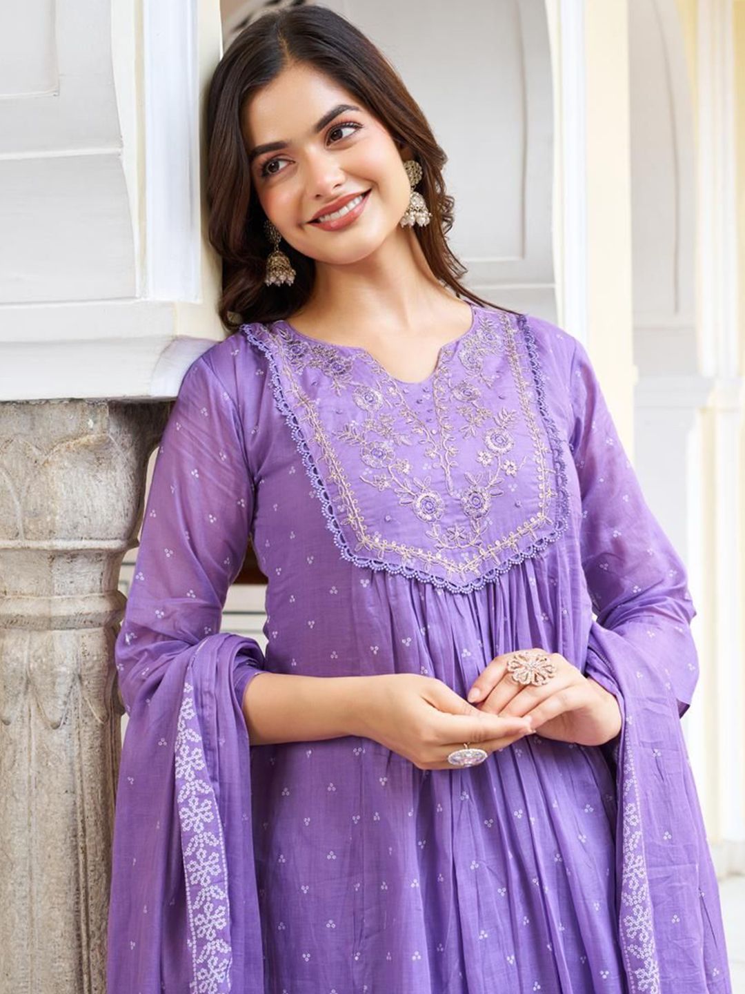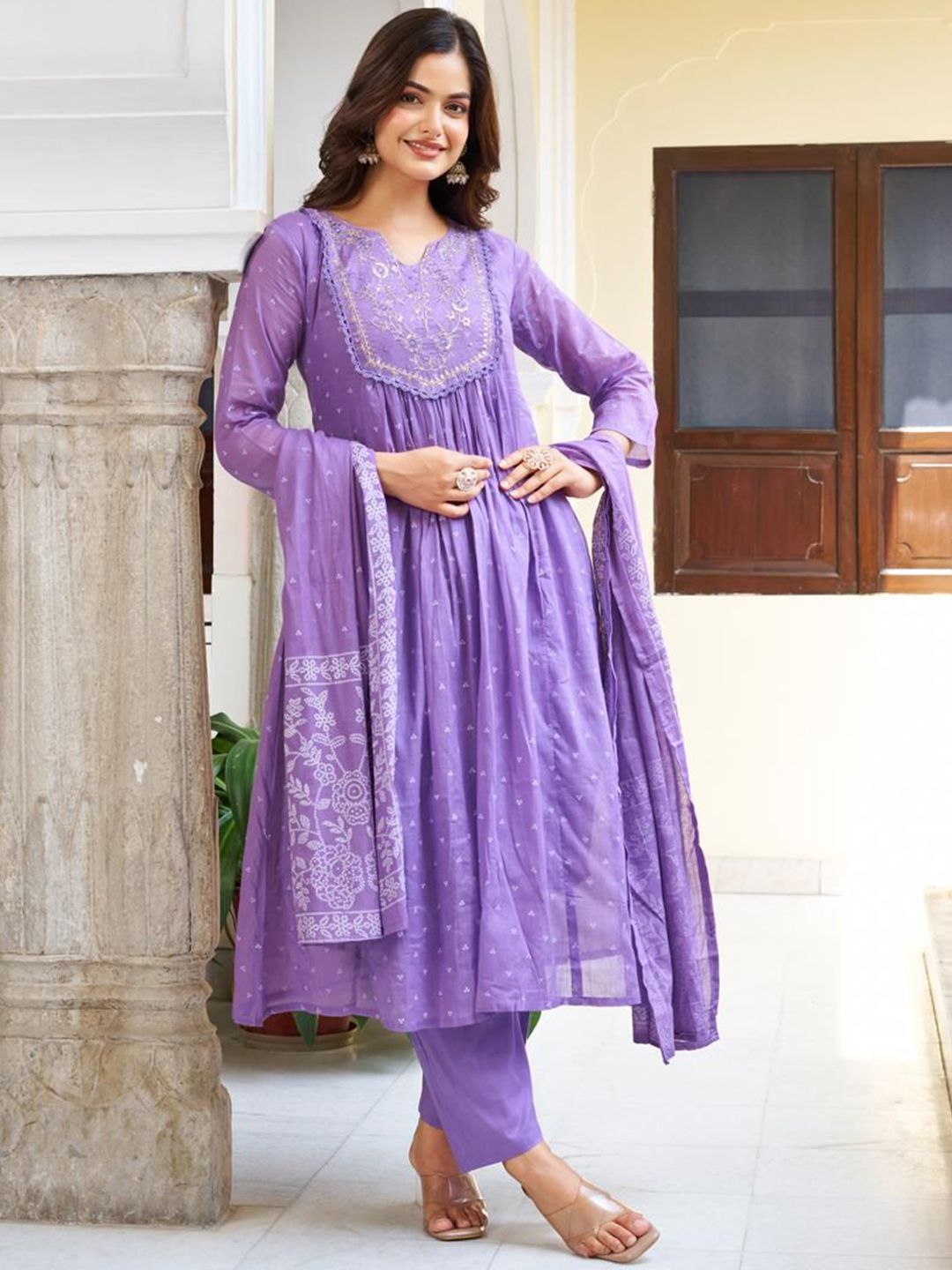 KAUTIK FABRICS Floral Printed Pleated Kurta With Trousers & Dupatta
