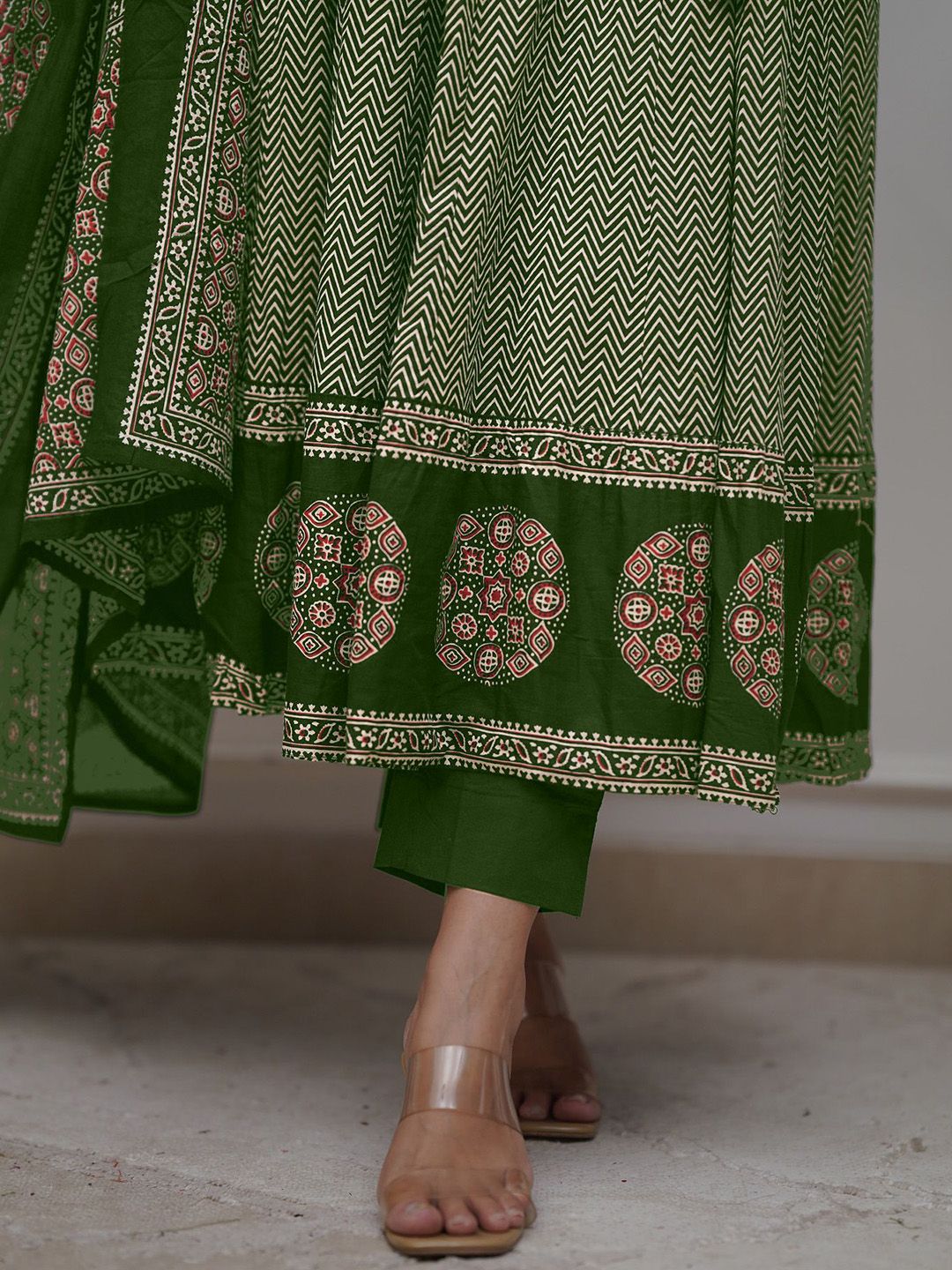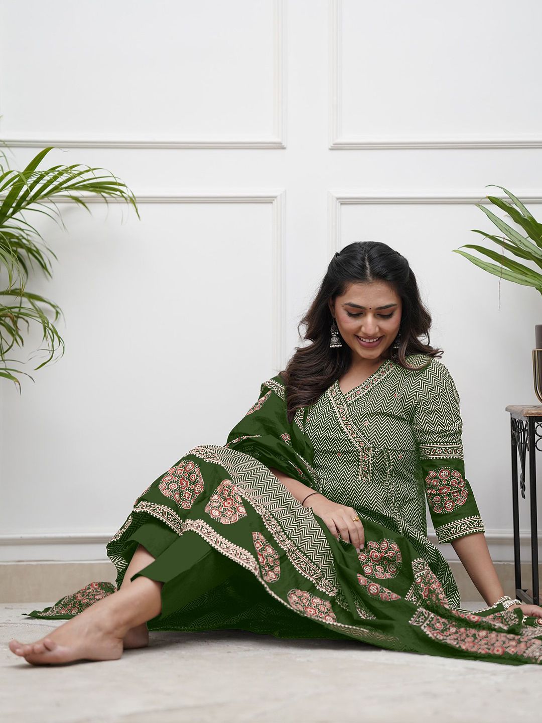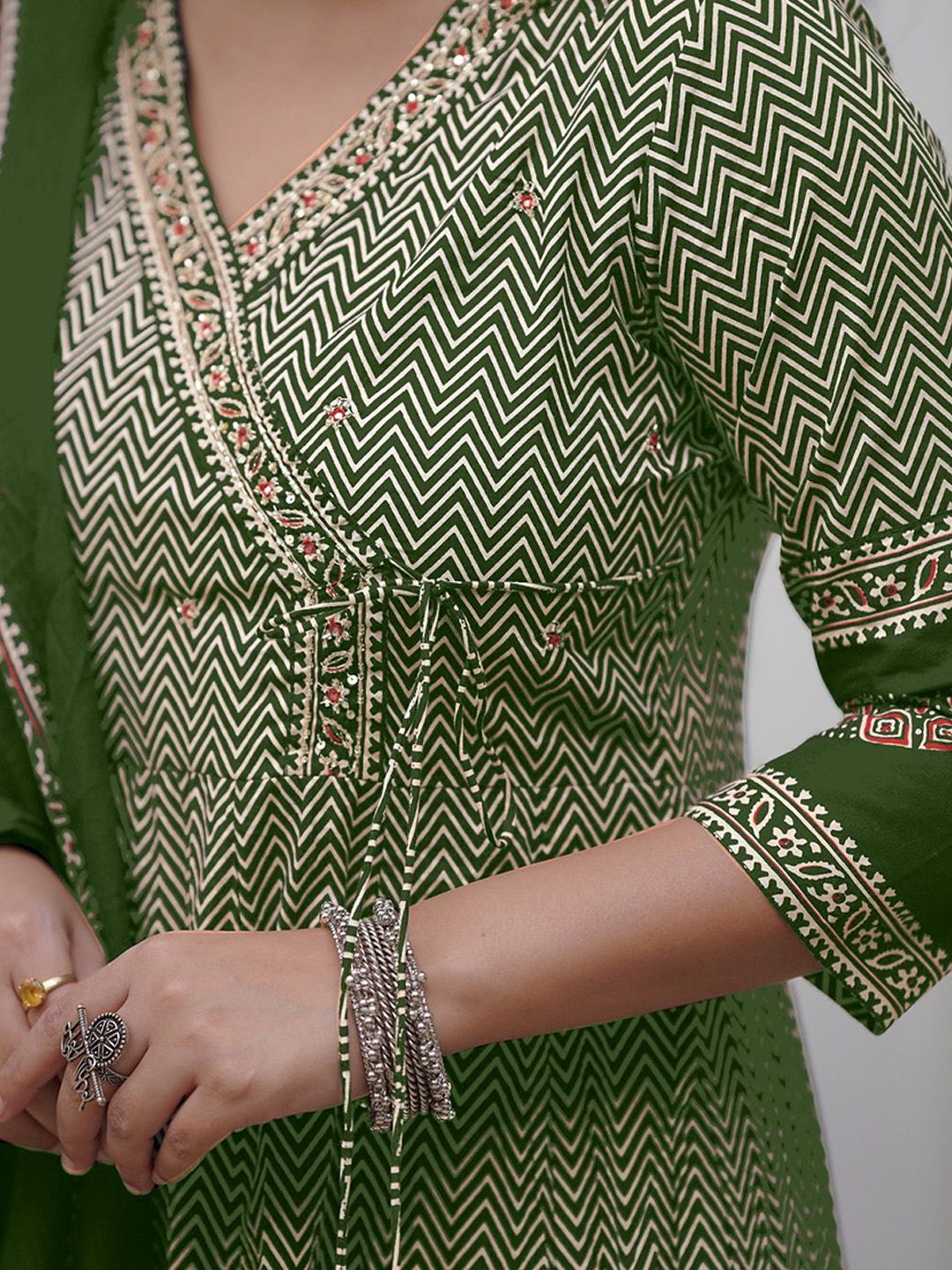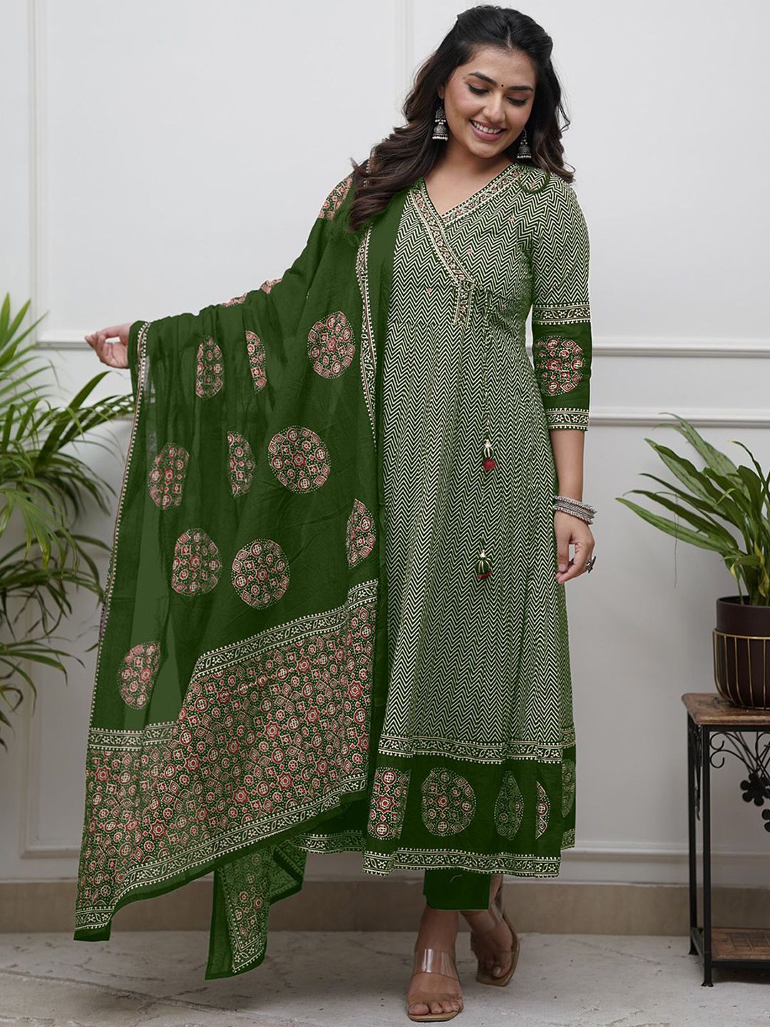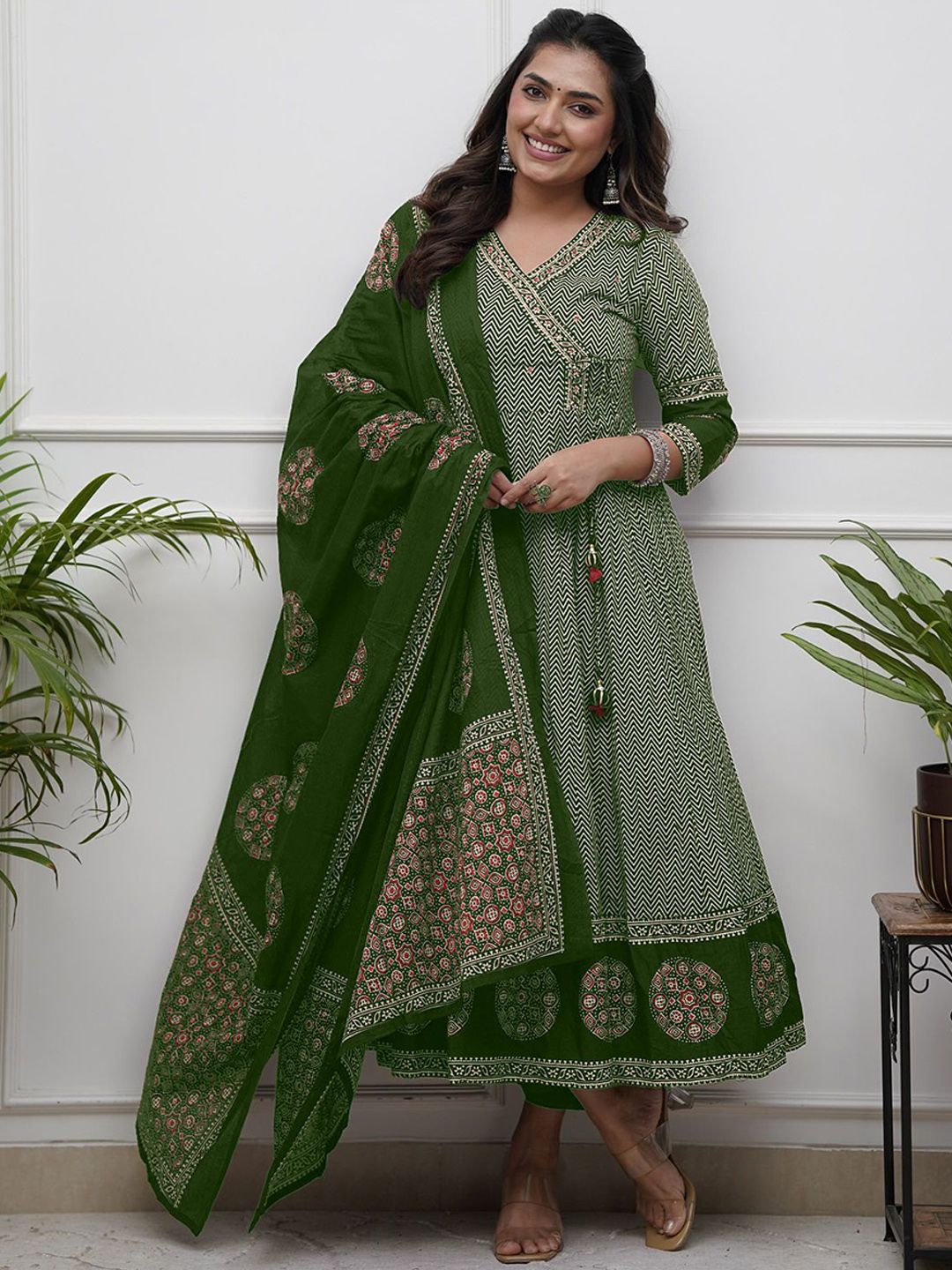 KAUTIK FABRICS Women Chevron Printed Kurta with Trousers & Dupatta