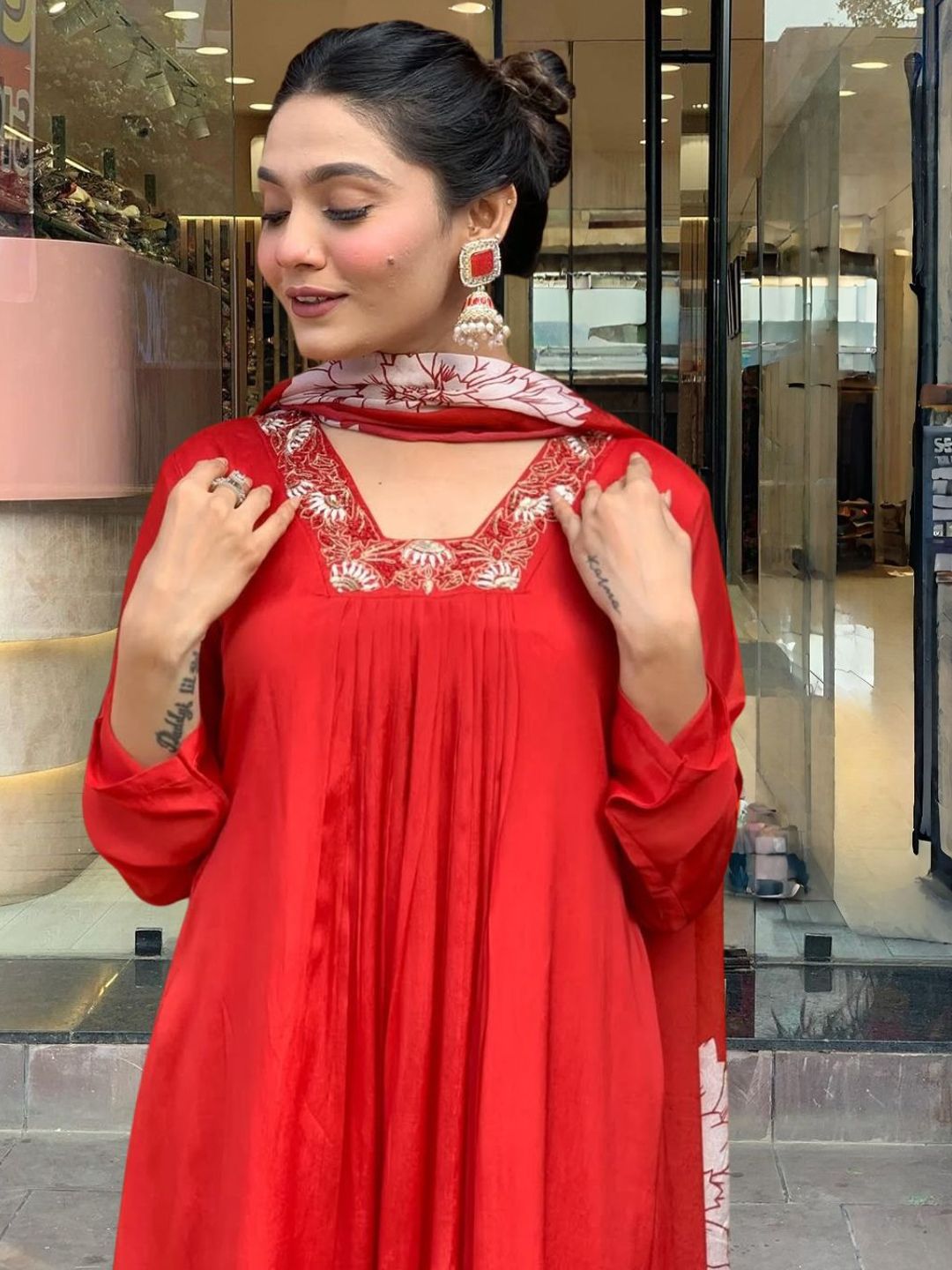 KAUTIK FABRICS Women Embroidered Kurta with Trousers & Dupatta