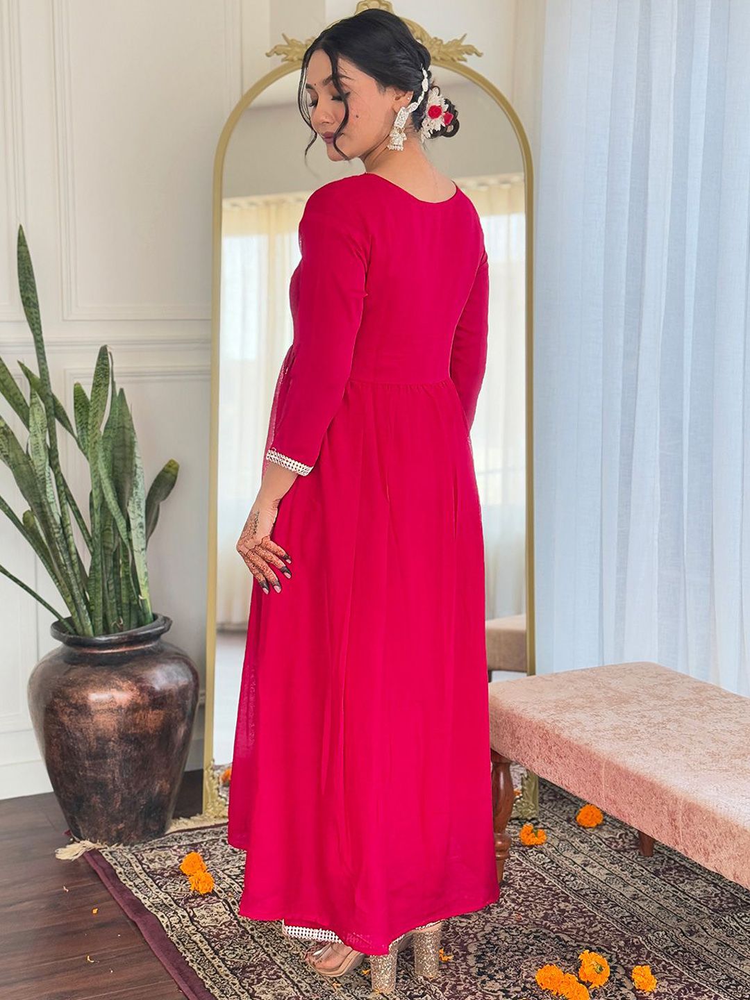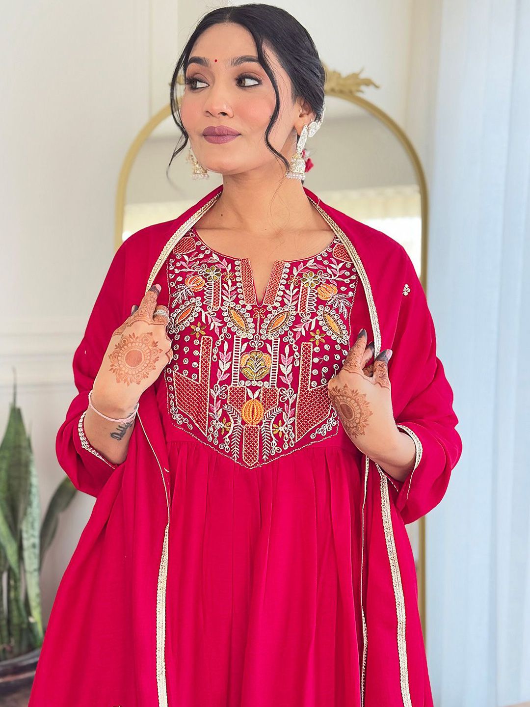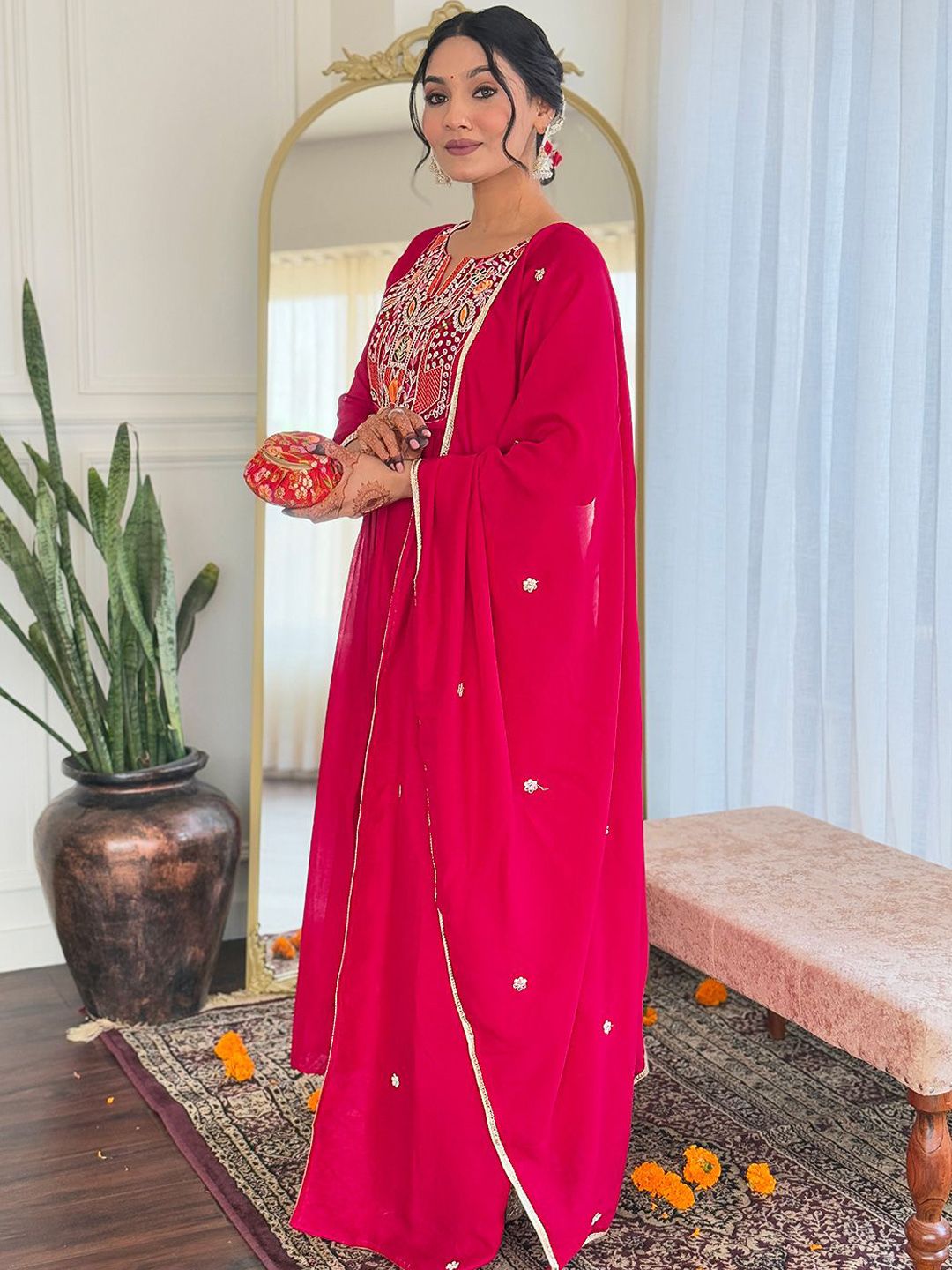 KAUTIK FABRICS Women Embroidered Regular Kurta with Trousers & Dupatta
