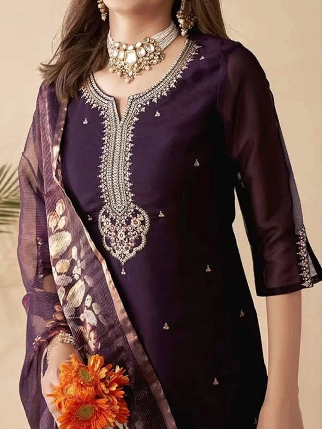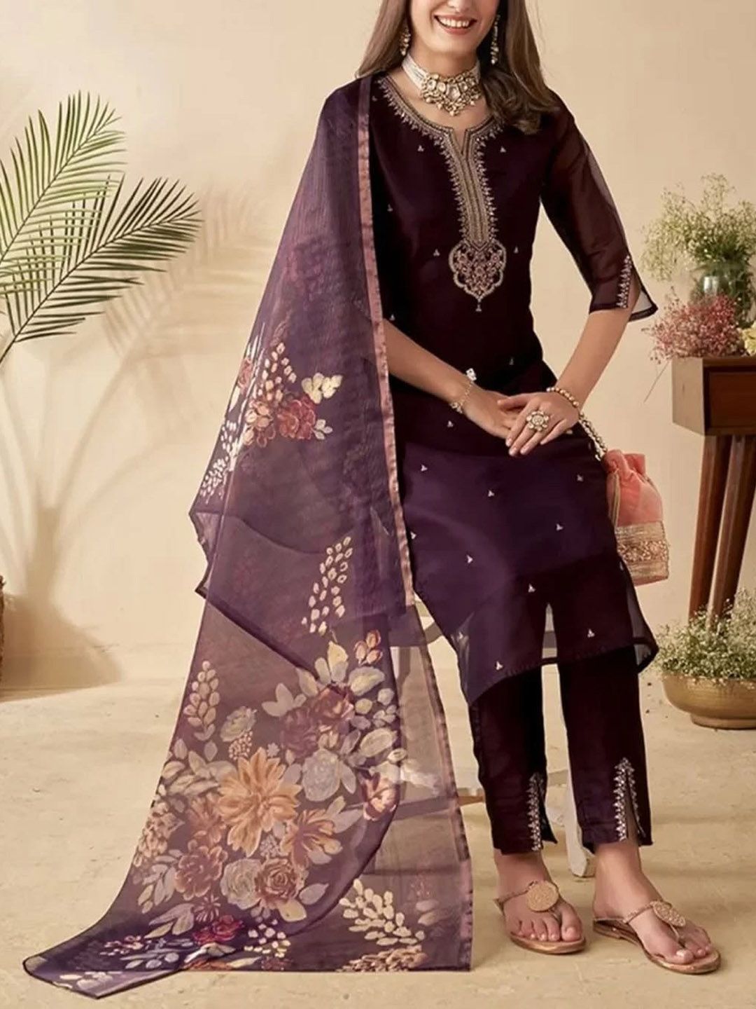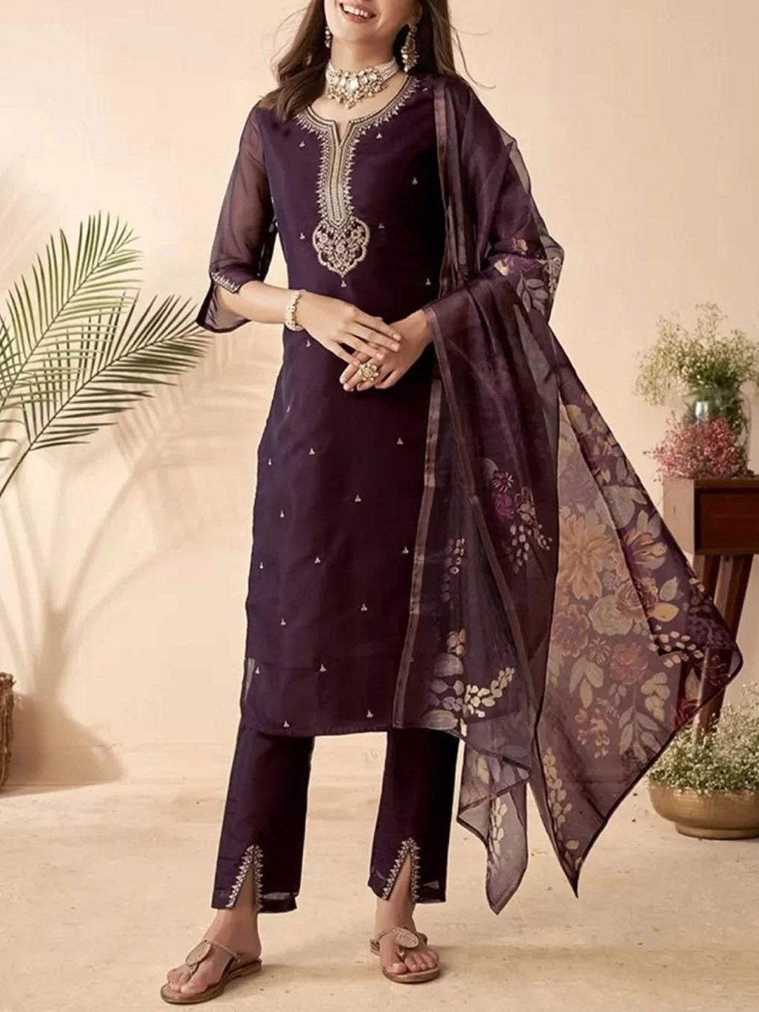 KAUTIK FABRICS Women Ethnic Motifs Embroidered Kurta with Trousers & Dupatta