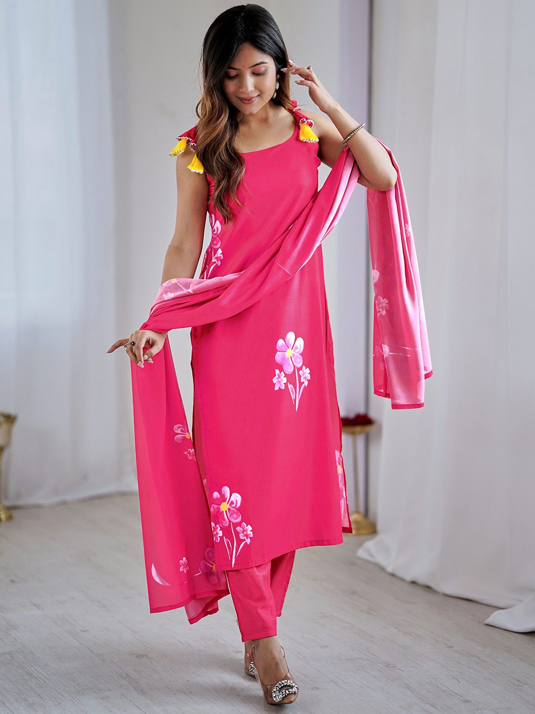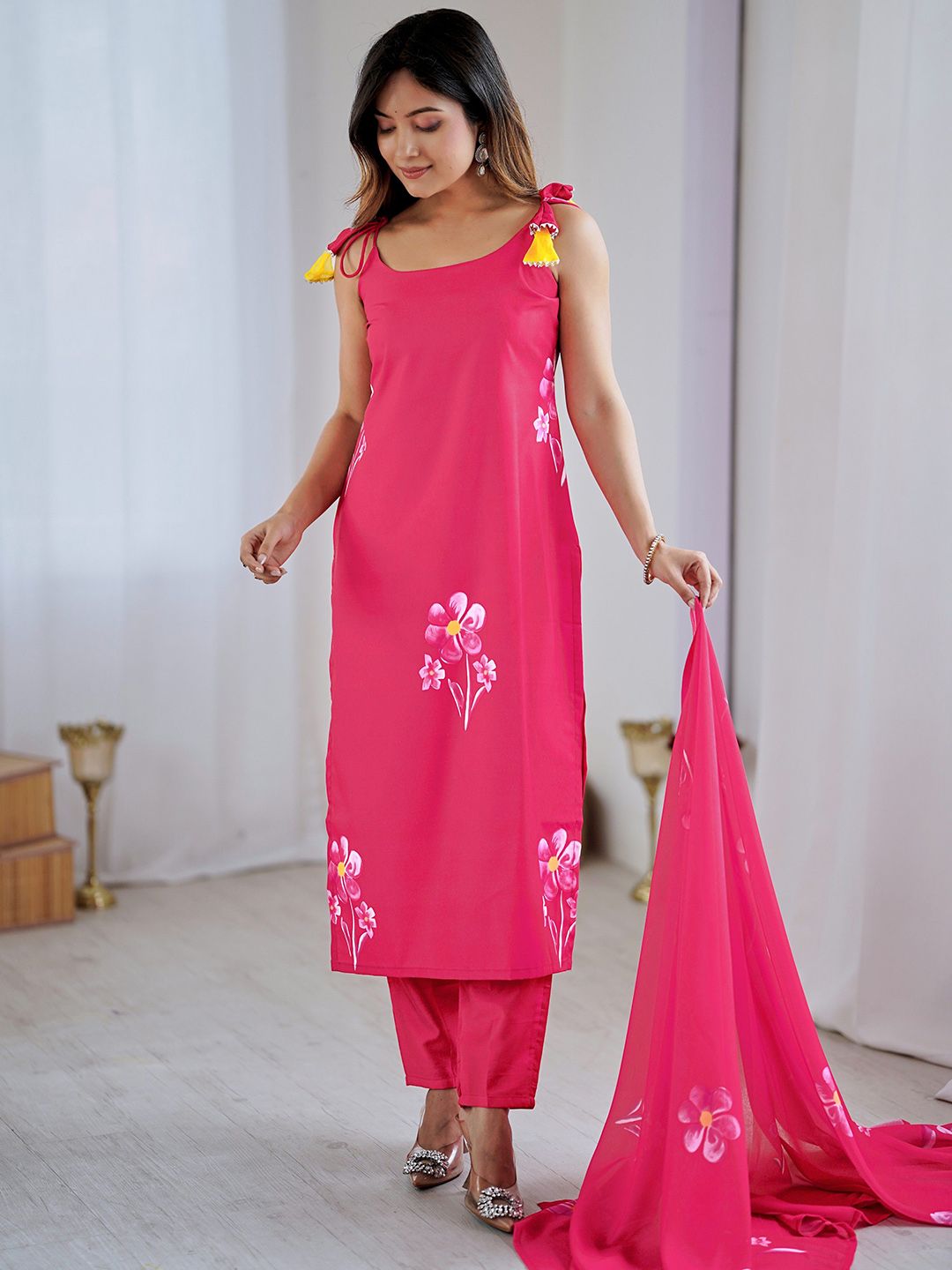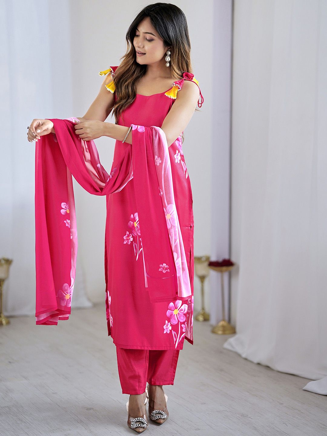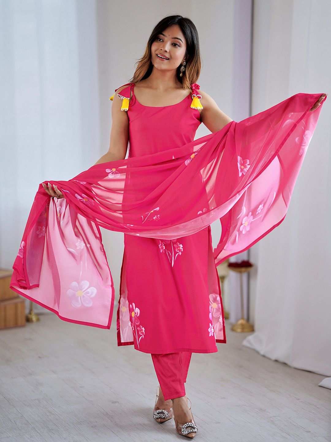 KAUTIK FABRICS Women Floral Print Regular Kurta with Trousers & Dupatta