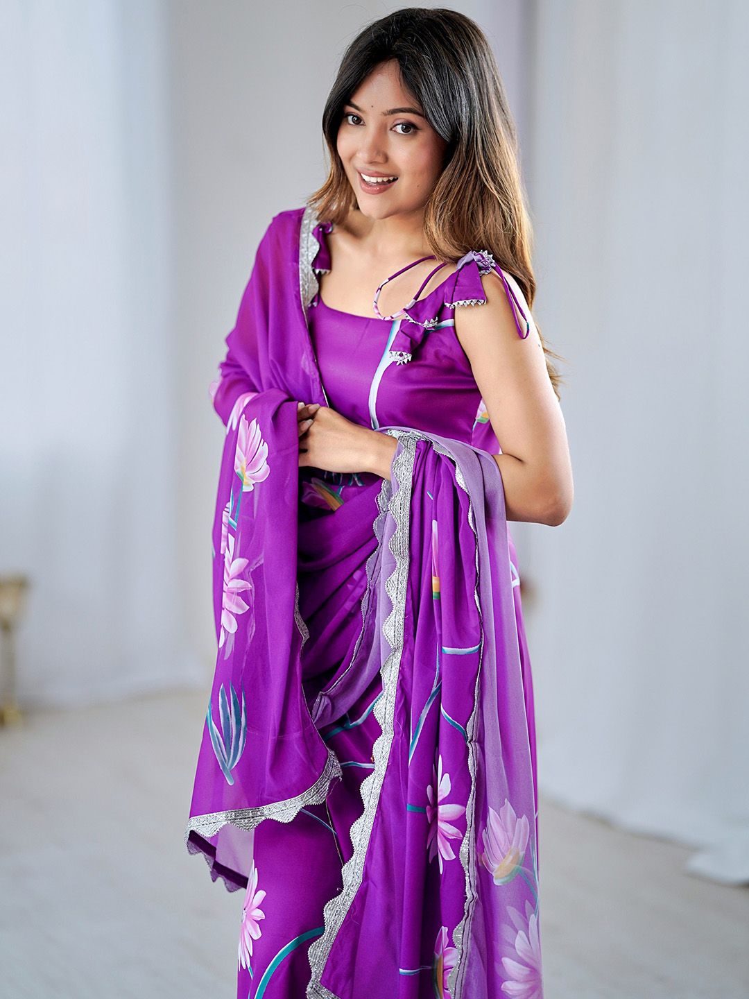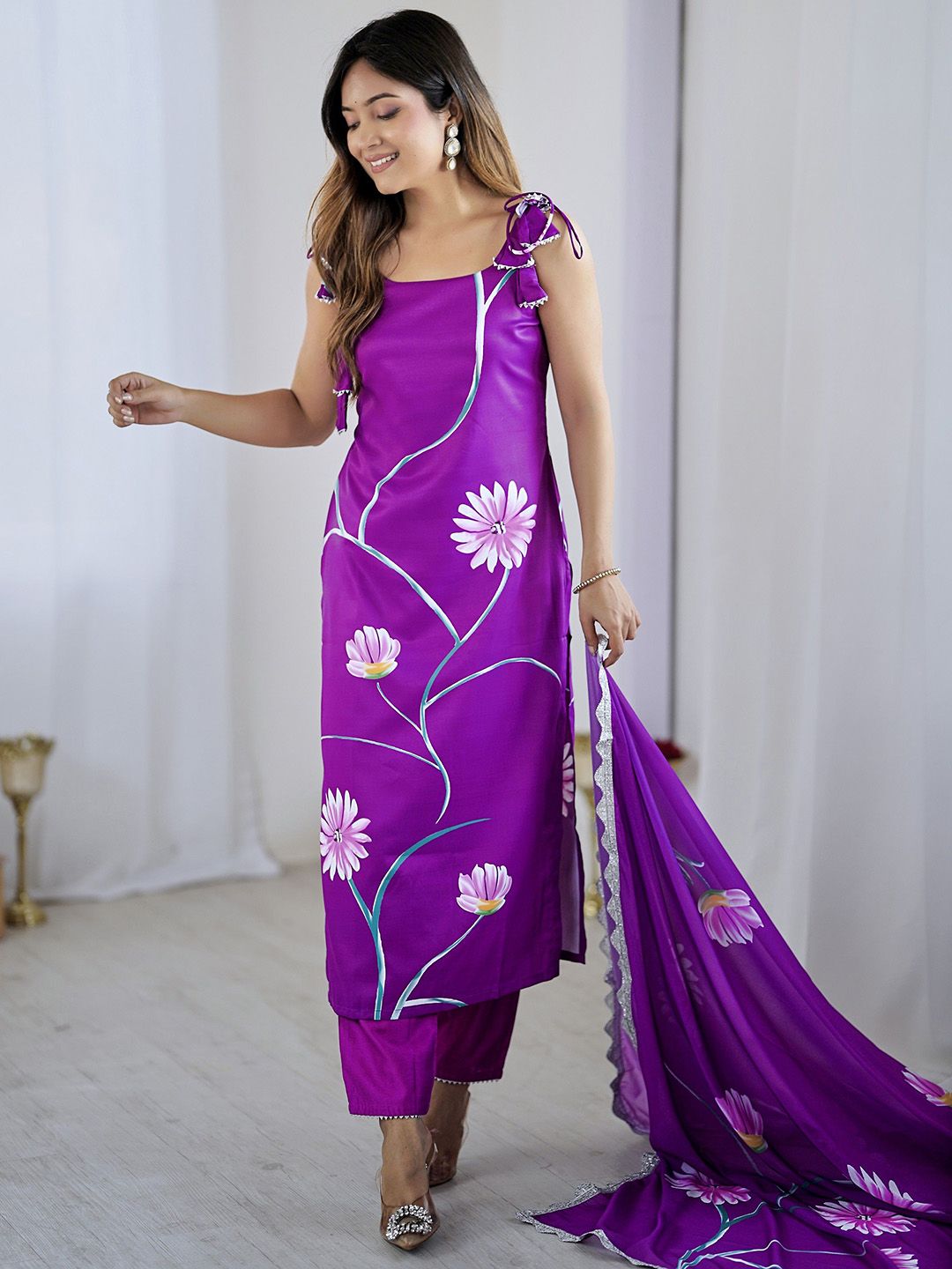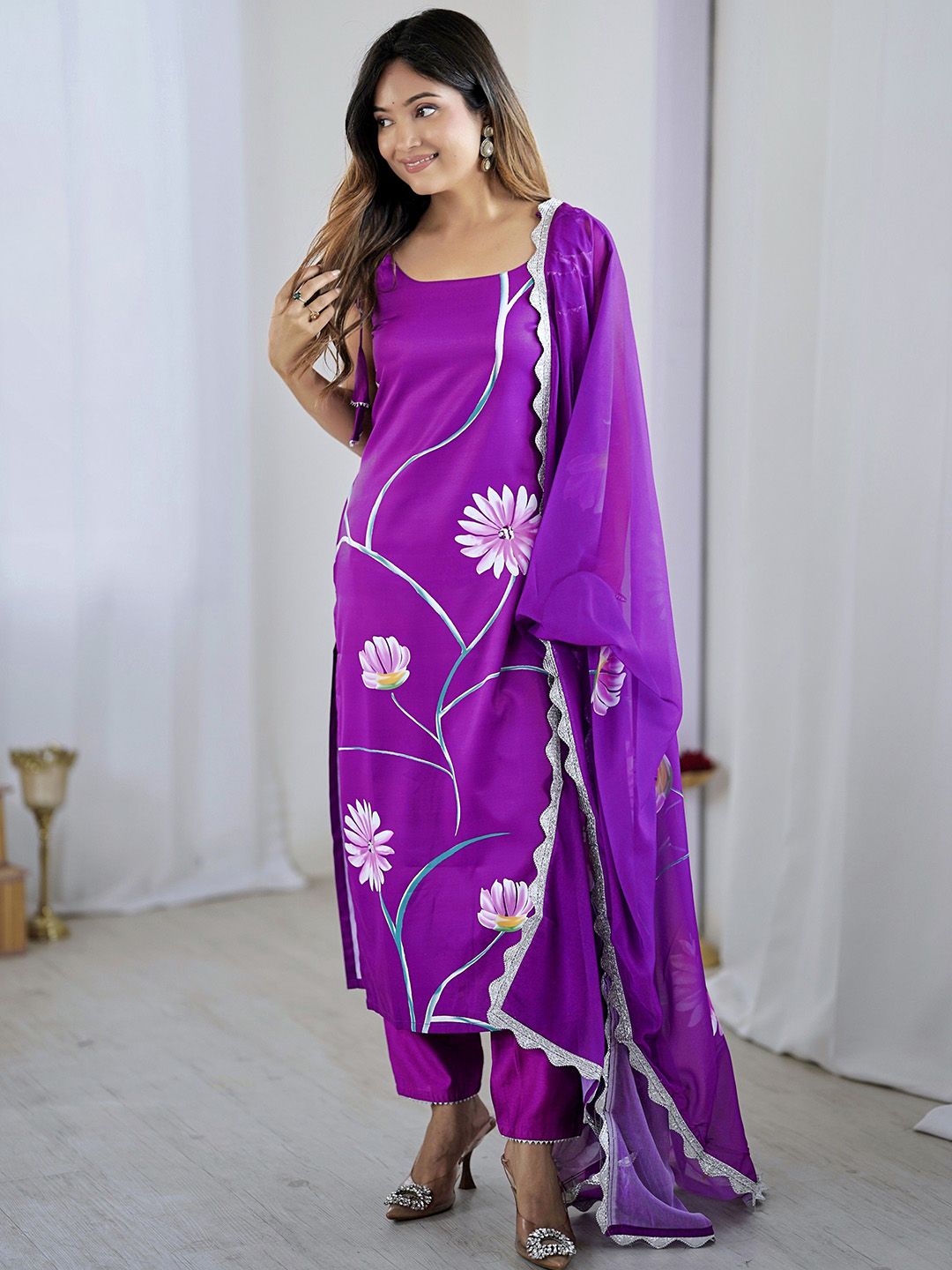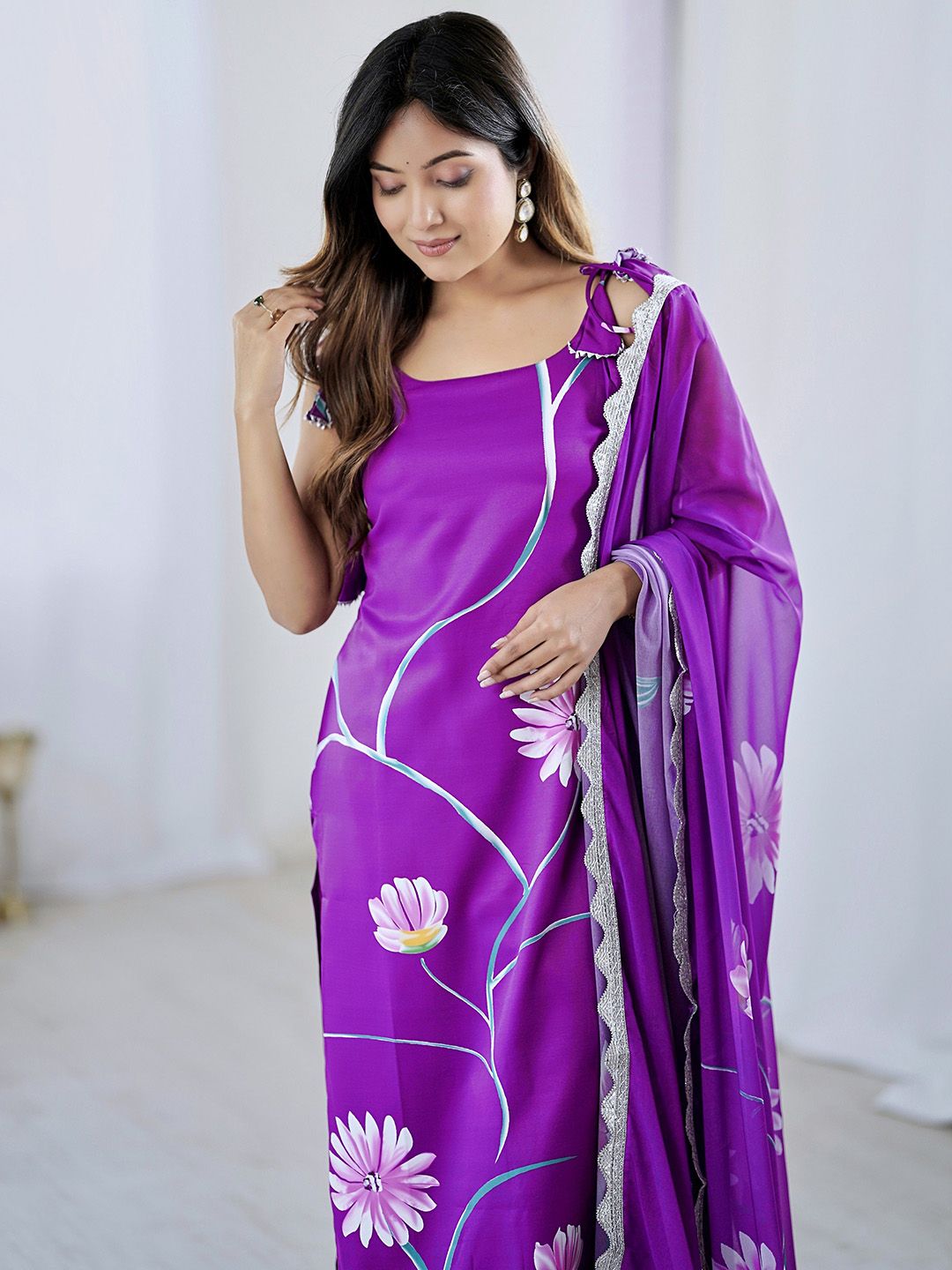 KAUTIK FABRICS Women Floral Printed Kurta with Churidar & Dupatta