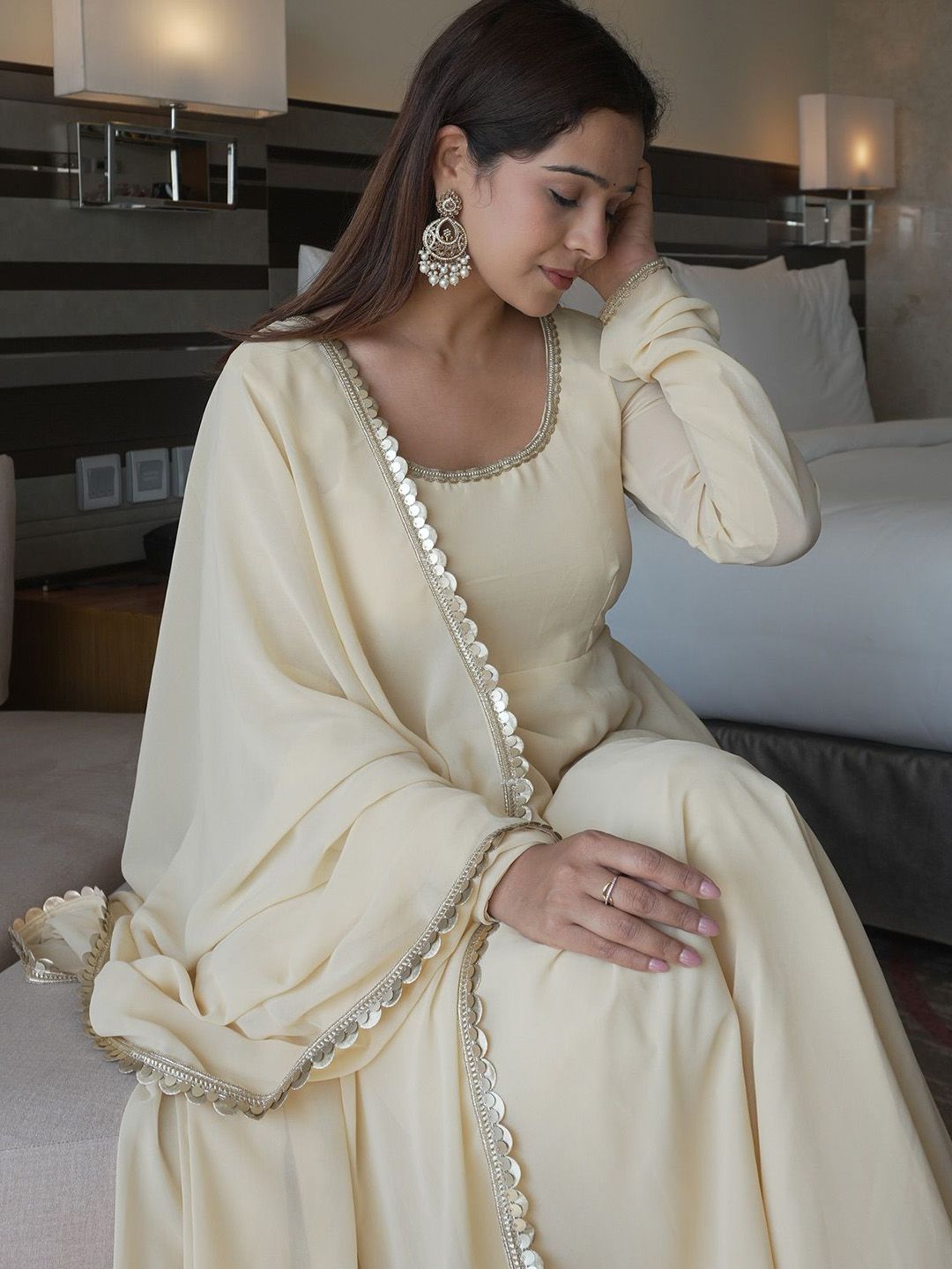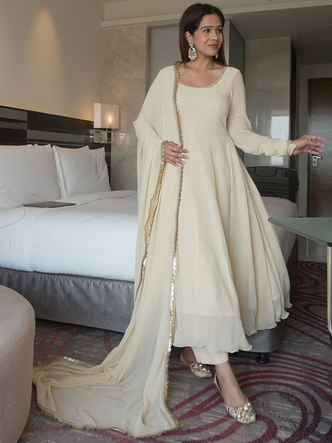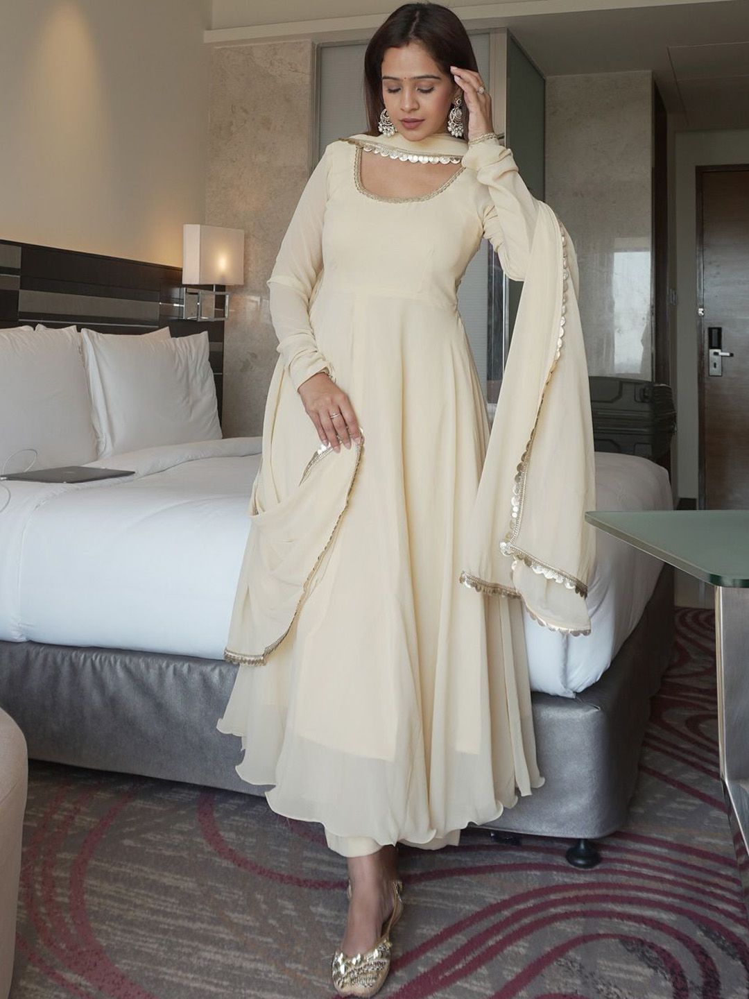 KAUTIK FABRICS Women Solid Anarkali Kurta with Palazzo & Dupatta