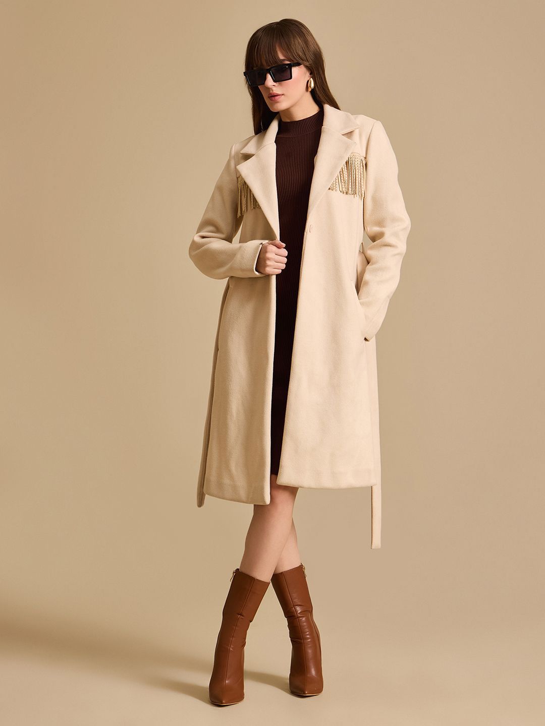 Kazo Women Notched Lapel Collar Single-Breasted Overcoat