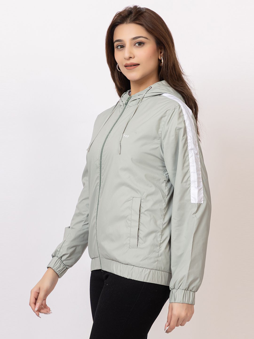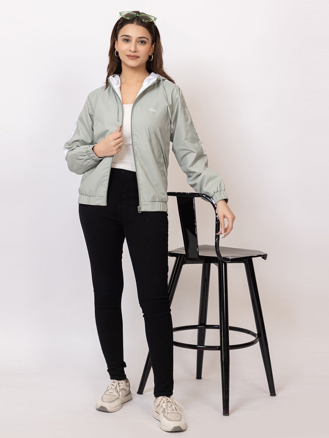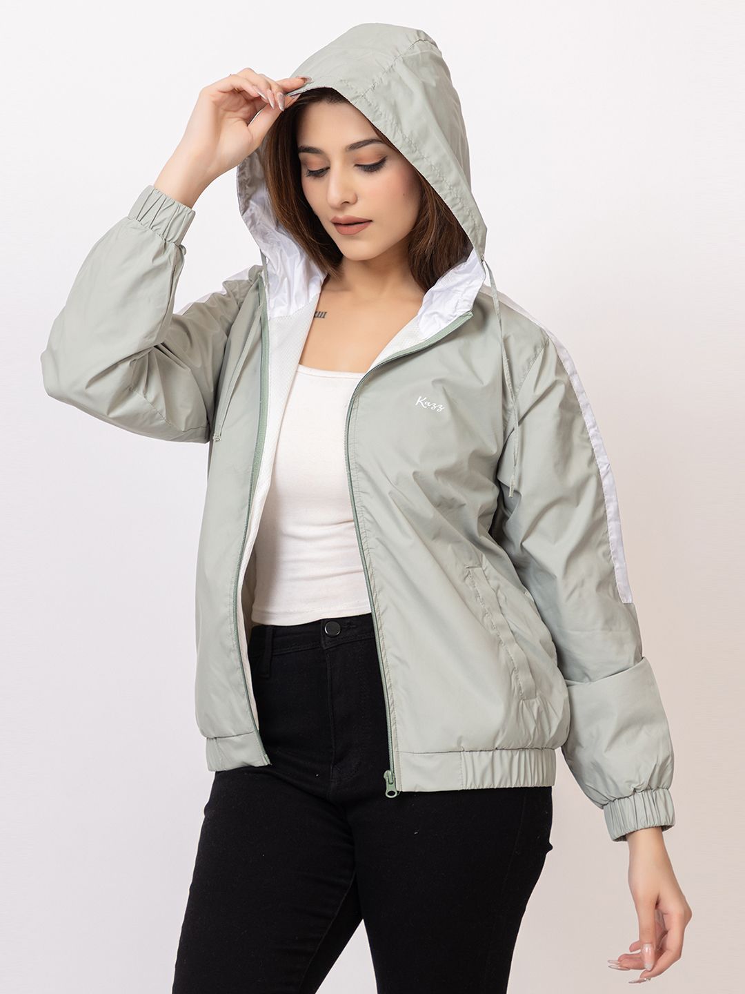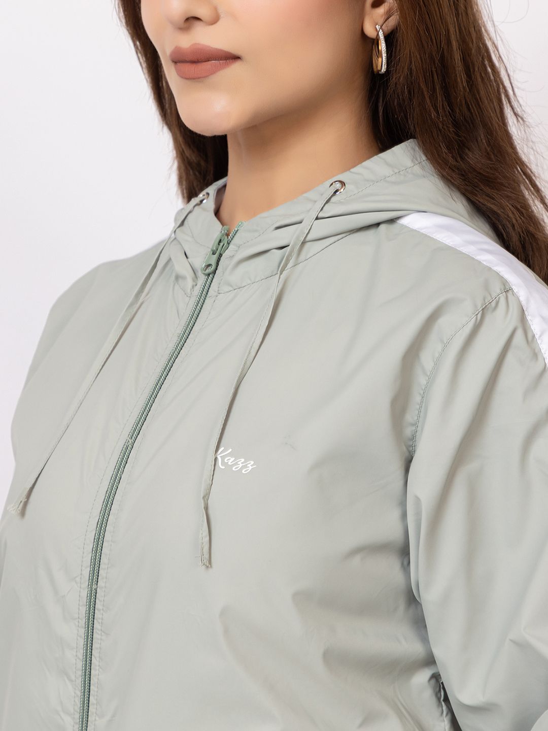 KAZZ Women Hooded Solid Windcheater Bomber Jacket