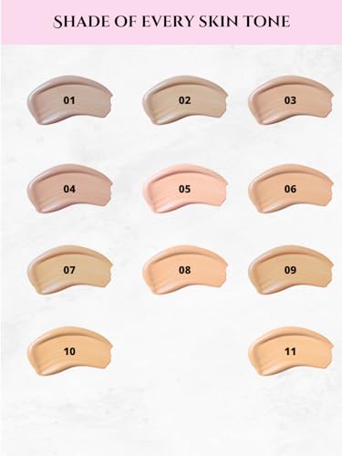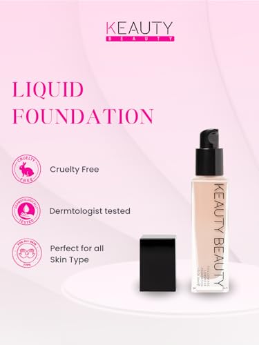 LIGHTWEIGHT FOUNDATION: Keauty Beauty Lightweight Matte Liquid Foundation is a featherlight formula that full coverage to melts into the skin for a poreless matte finish. LONG WEAR: Get a flawless base that stays full day with Long Wear Foundation. This Foundation is Water Proof & Sweat Proof, so no need for touch ups! ULTRA-BLENDABLE: The Weightless Matte Finish Foundation is easily blendable, providing matte finish that lasts all day with No heavy or cakey look. SUITABLE FOR ALL SKIN TYPES: Keauty Beauty Long Wear Full Coverage Liquid Foundation is Vegan & dermatologically tested, suitable for all skin types. AVAILABE IN 11 SHADES- With a diverse range of Eleven shades, to suit all Indian skin tones and undertones. you can find the perfect match for your complexion.